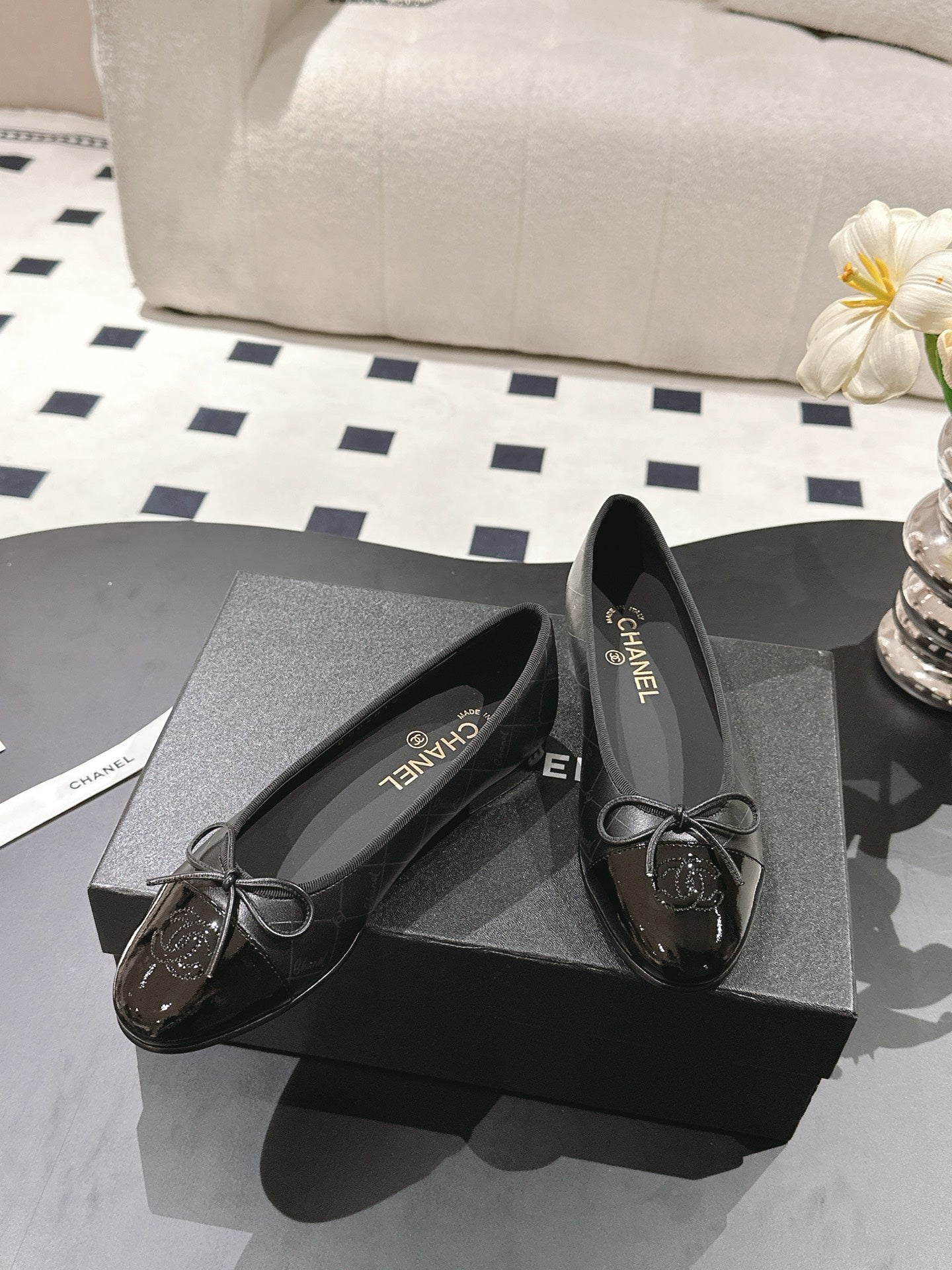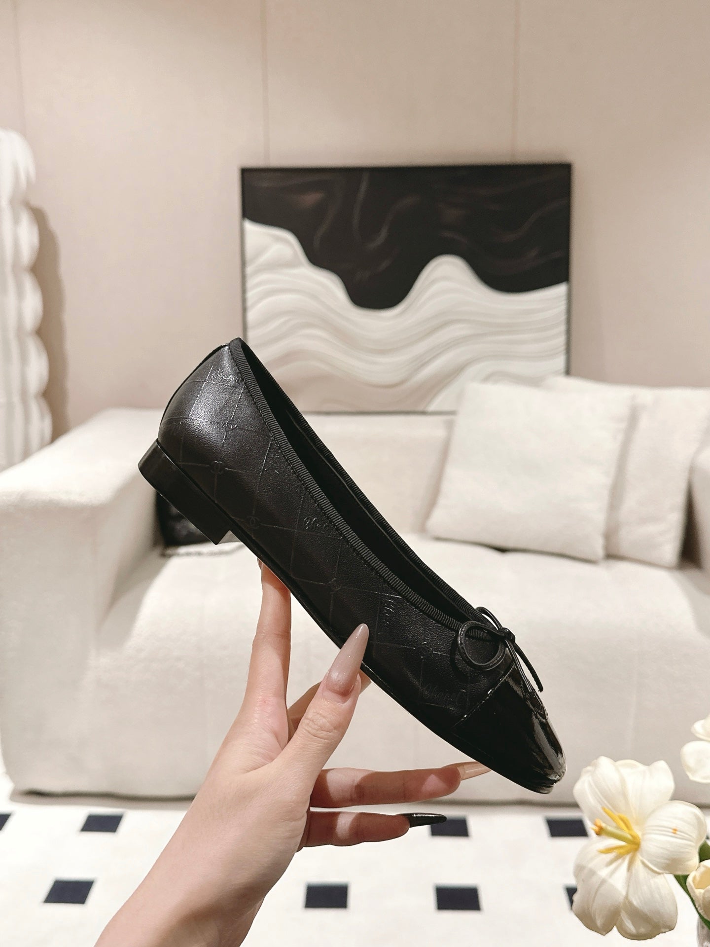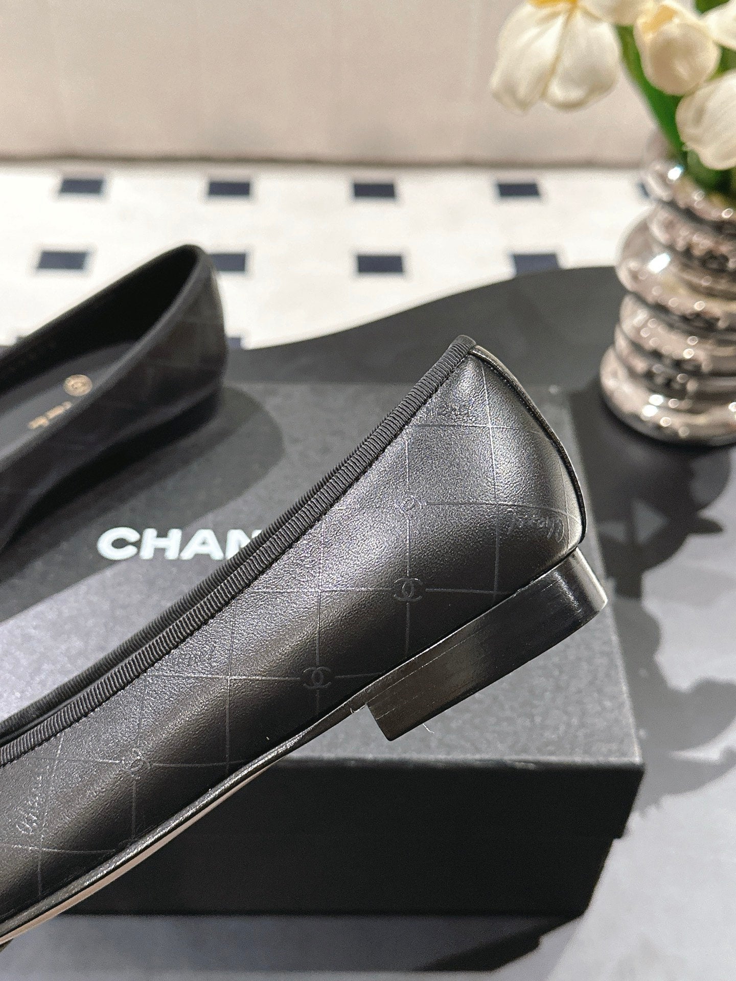 cc 25c ballet flat cross line pattern black lambskin 237482