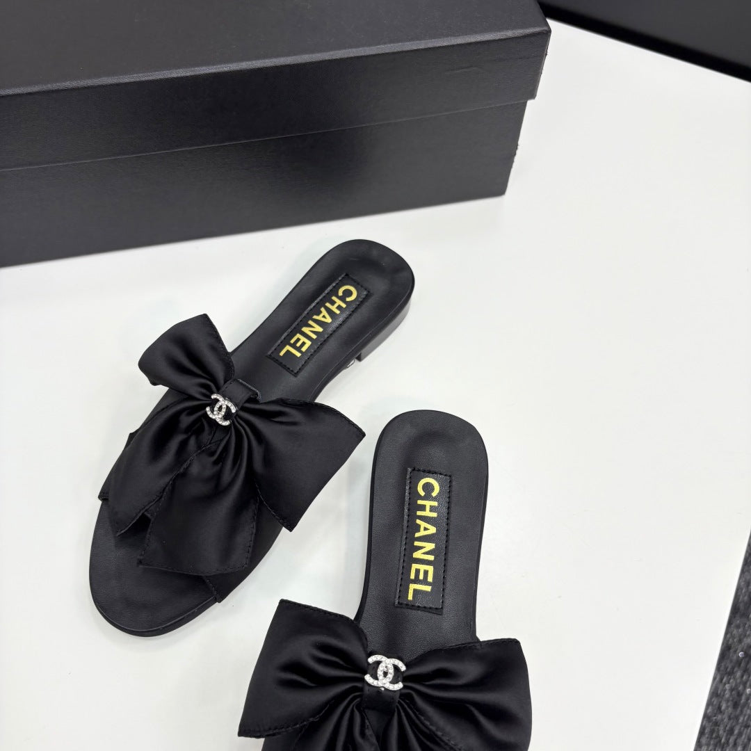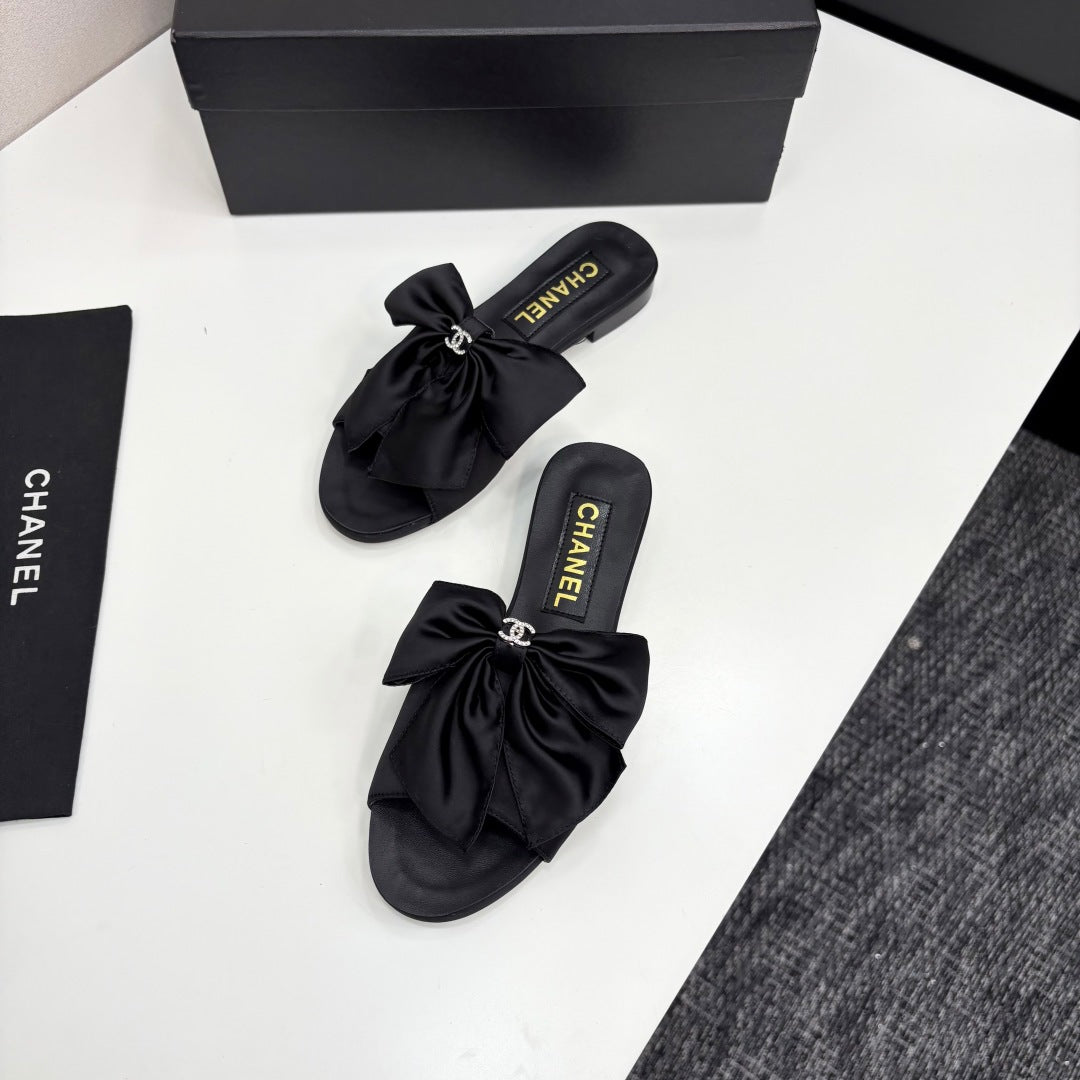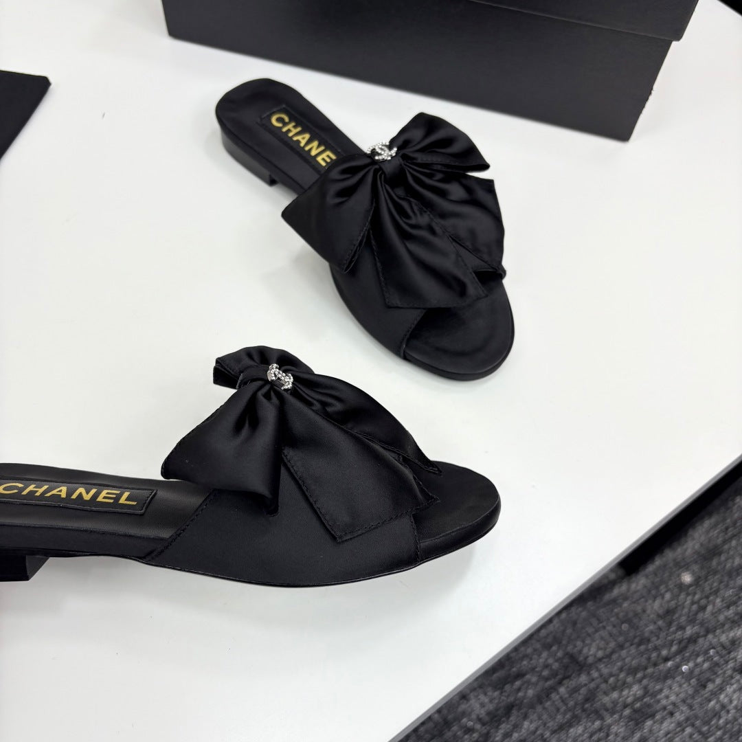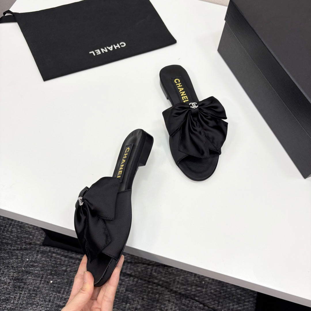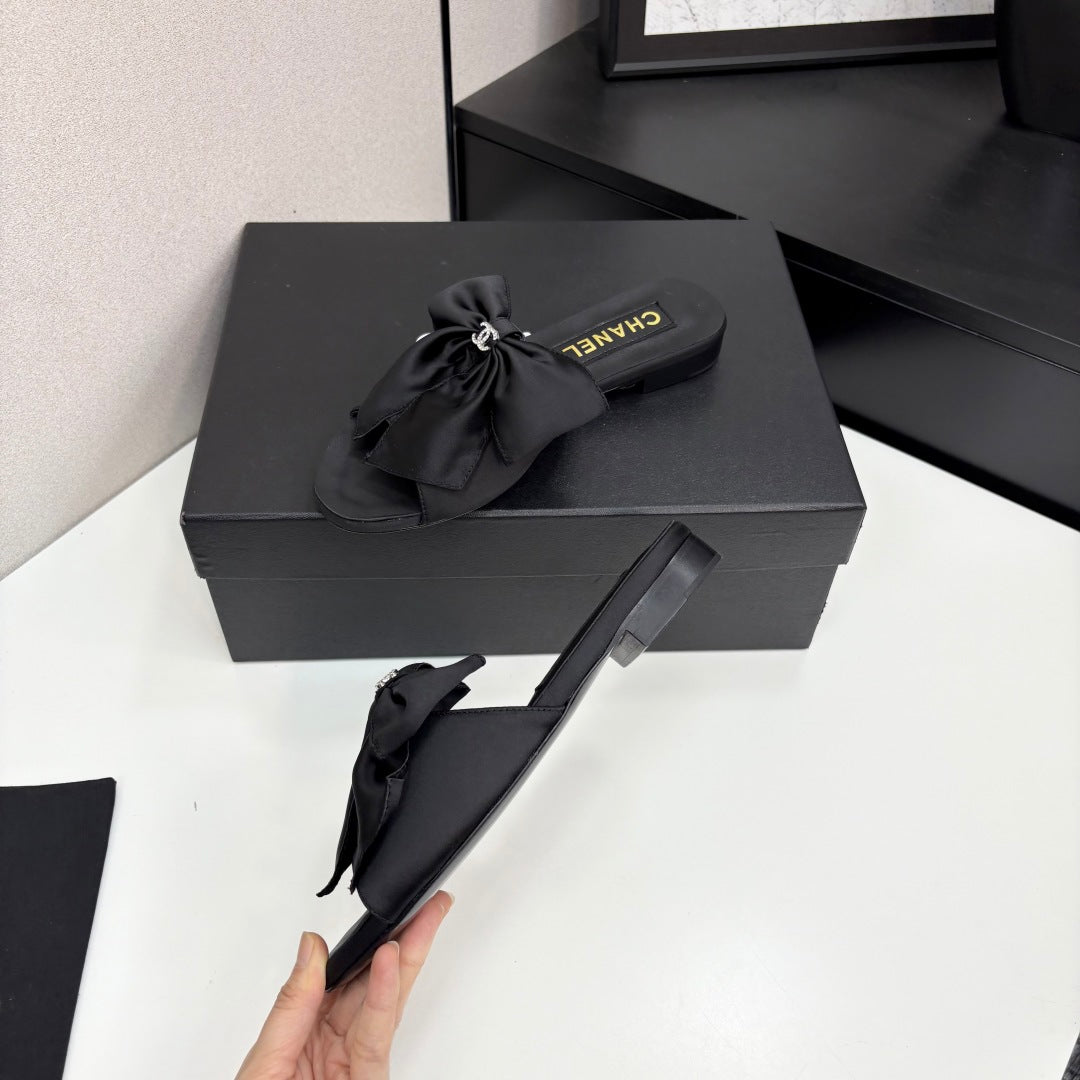 CC 25 Big Bow Mule Black Satin And Sheepskin 368866