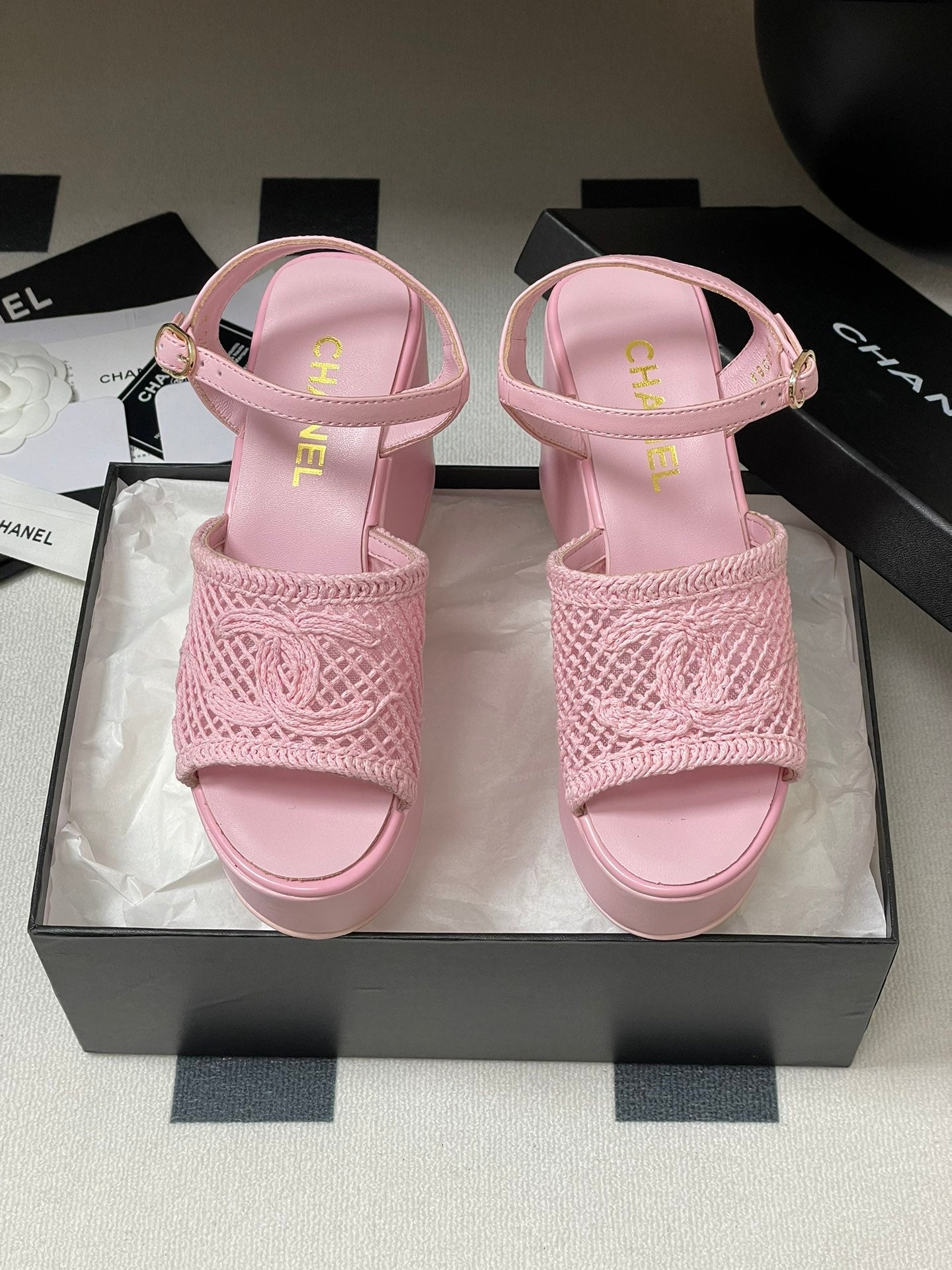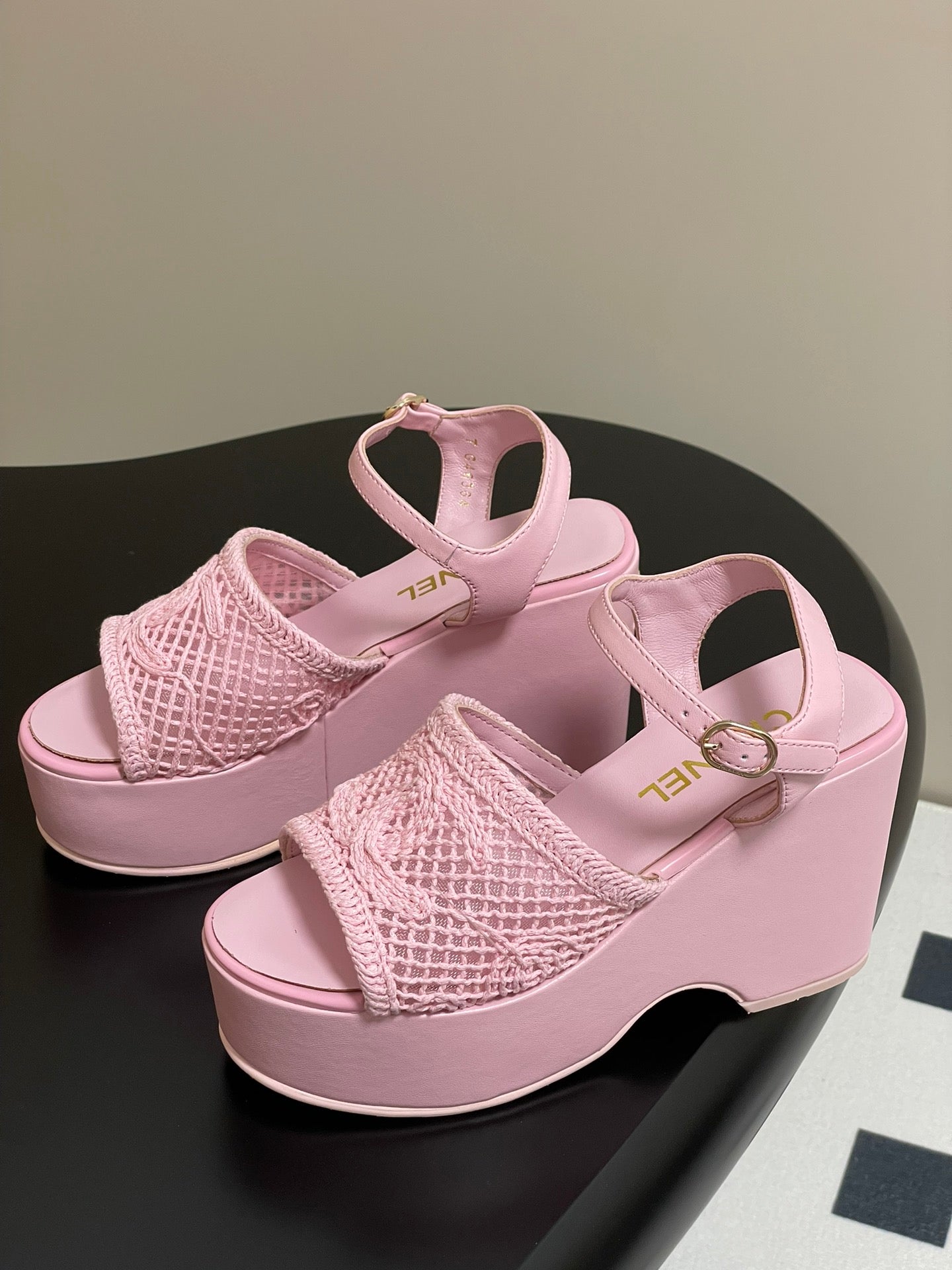 CC 25S Small Wedge Thick-Soled Sandal 10cm Pink Woven 247604