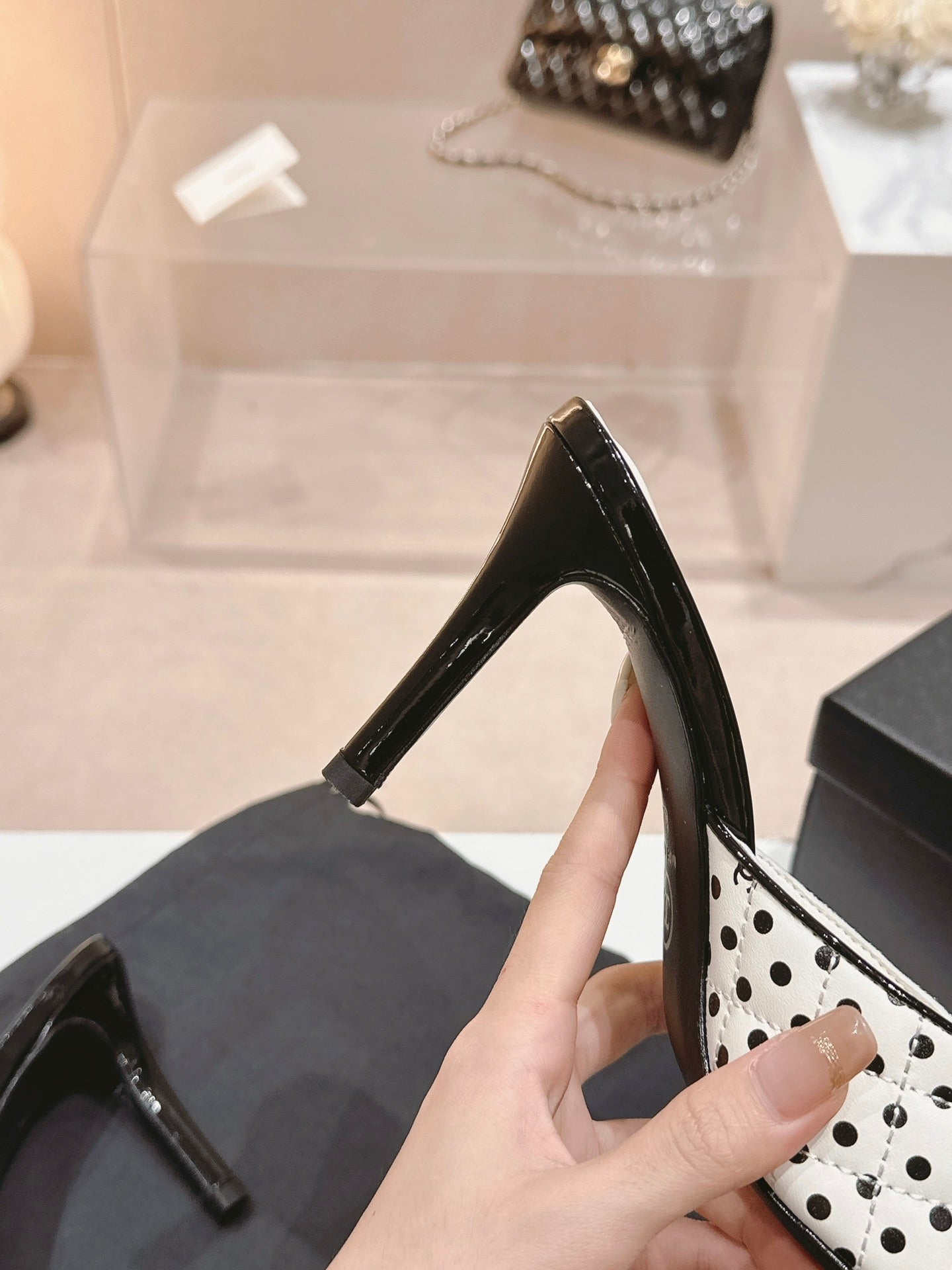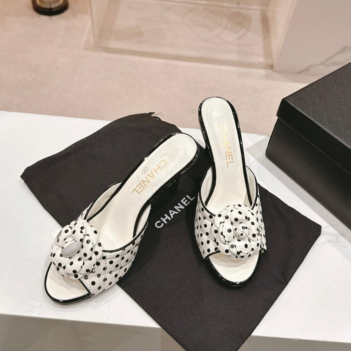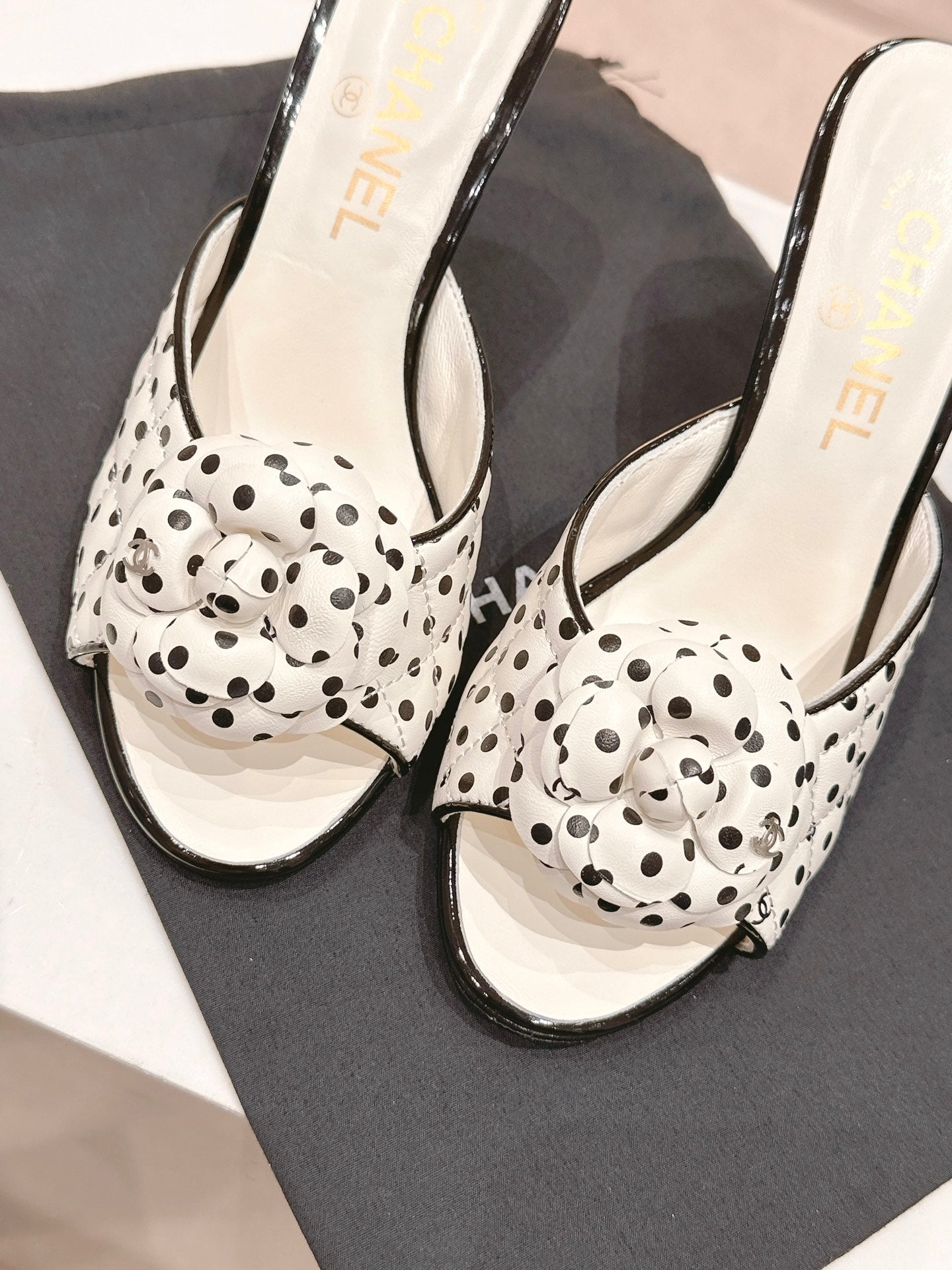 cc sandal flower 85 white black calfskin