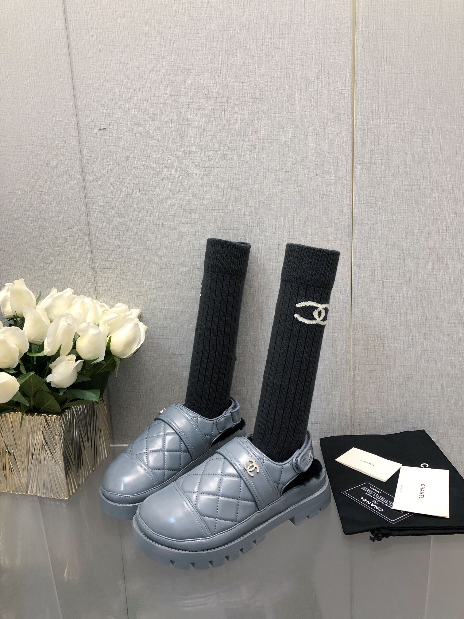CHUNKY PLATFORM SHEARLING SLIPPER SAPHIRE BLUE LAMBSKIN