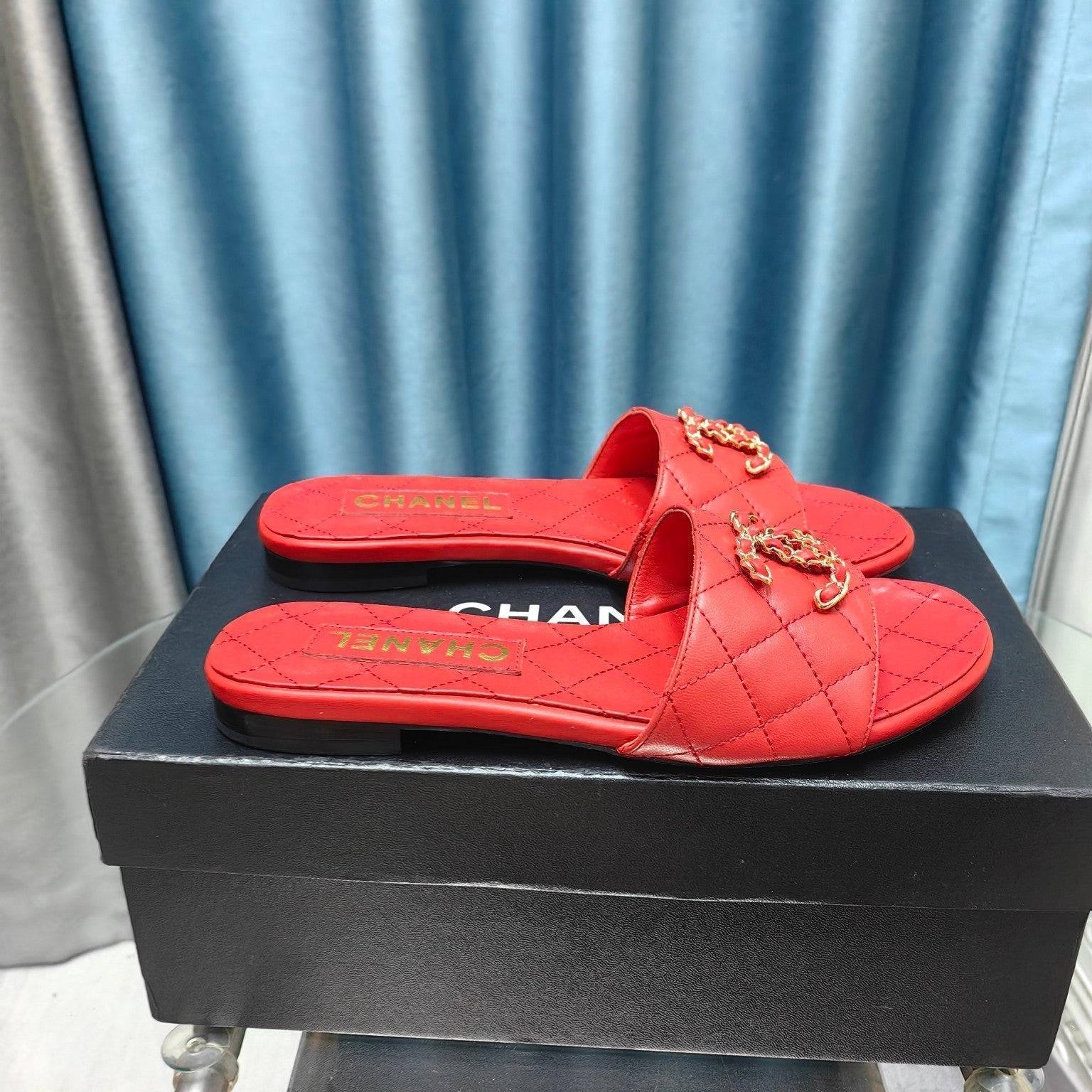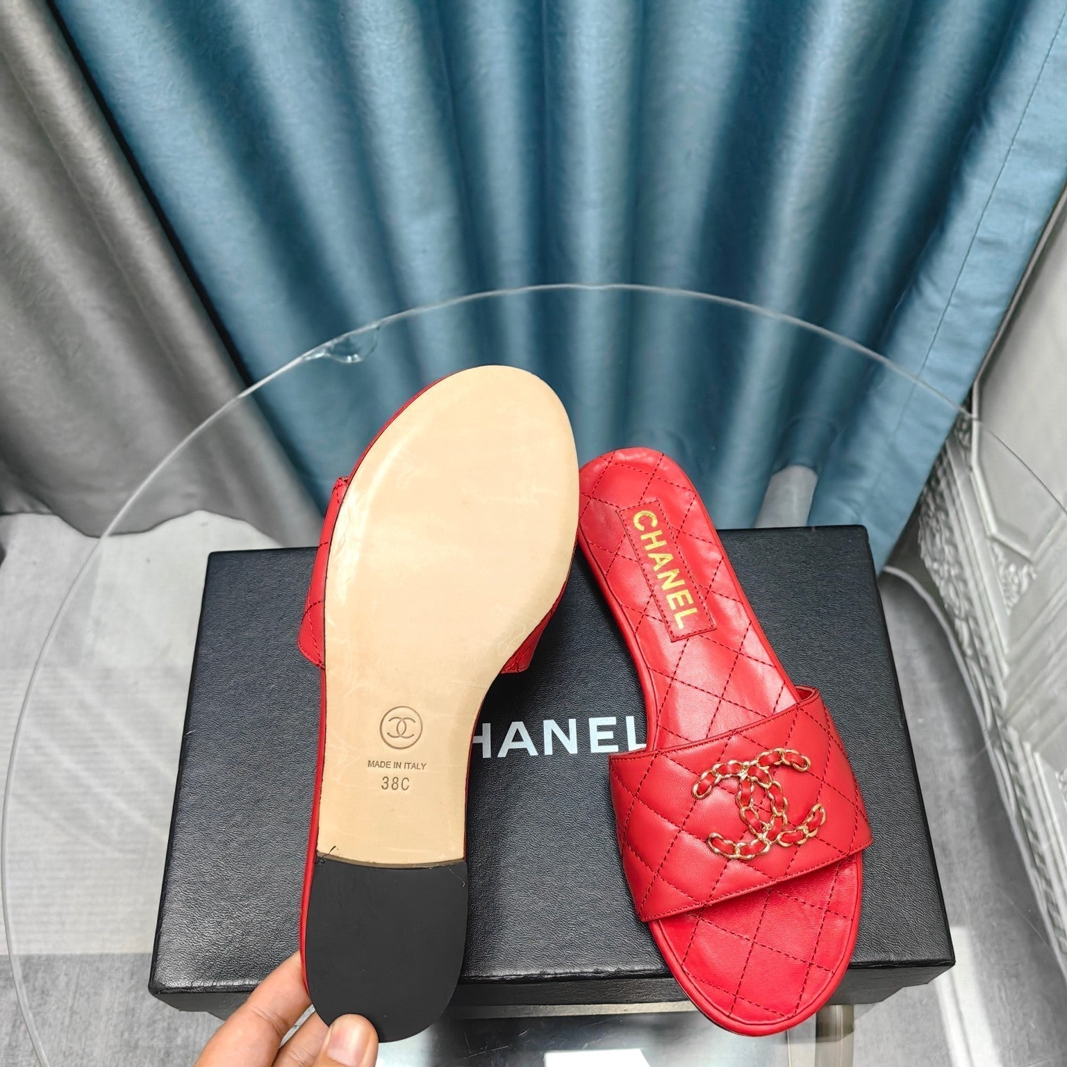 mule sandal quilted red calfskin