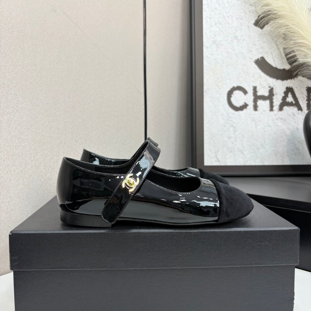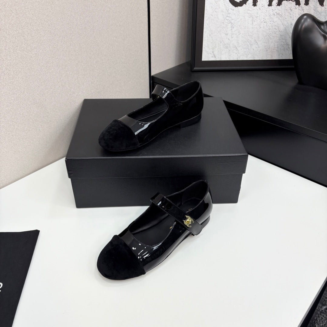CC 25 Mary Janes In Black Patent Sheepskin And Velvet 352465