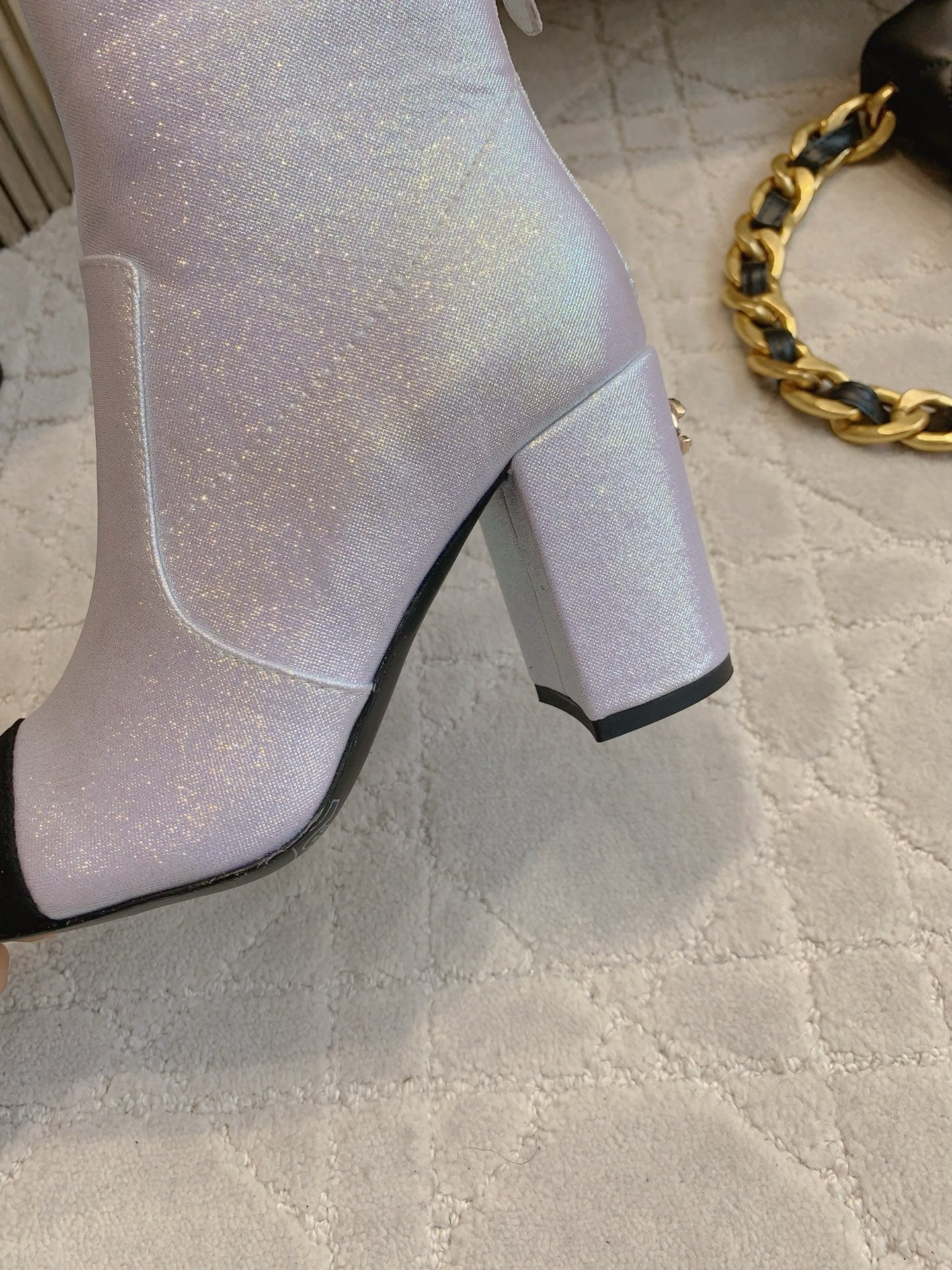 CC 25 Short Boot Light Pink Black Fabric Sheepskin 516638