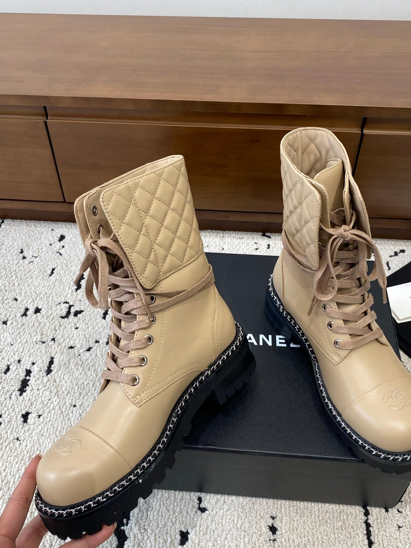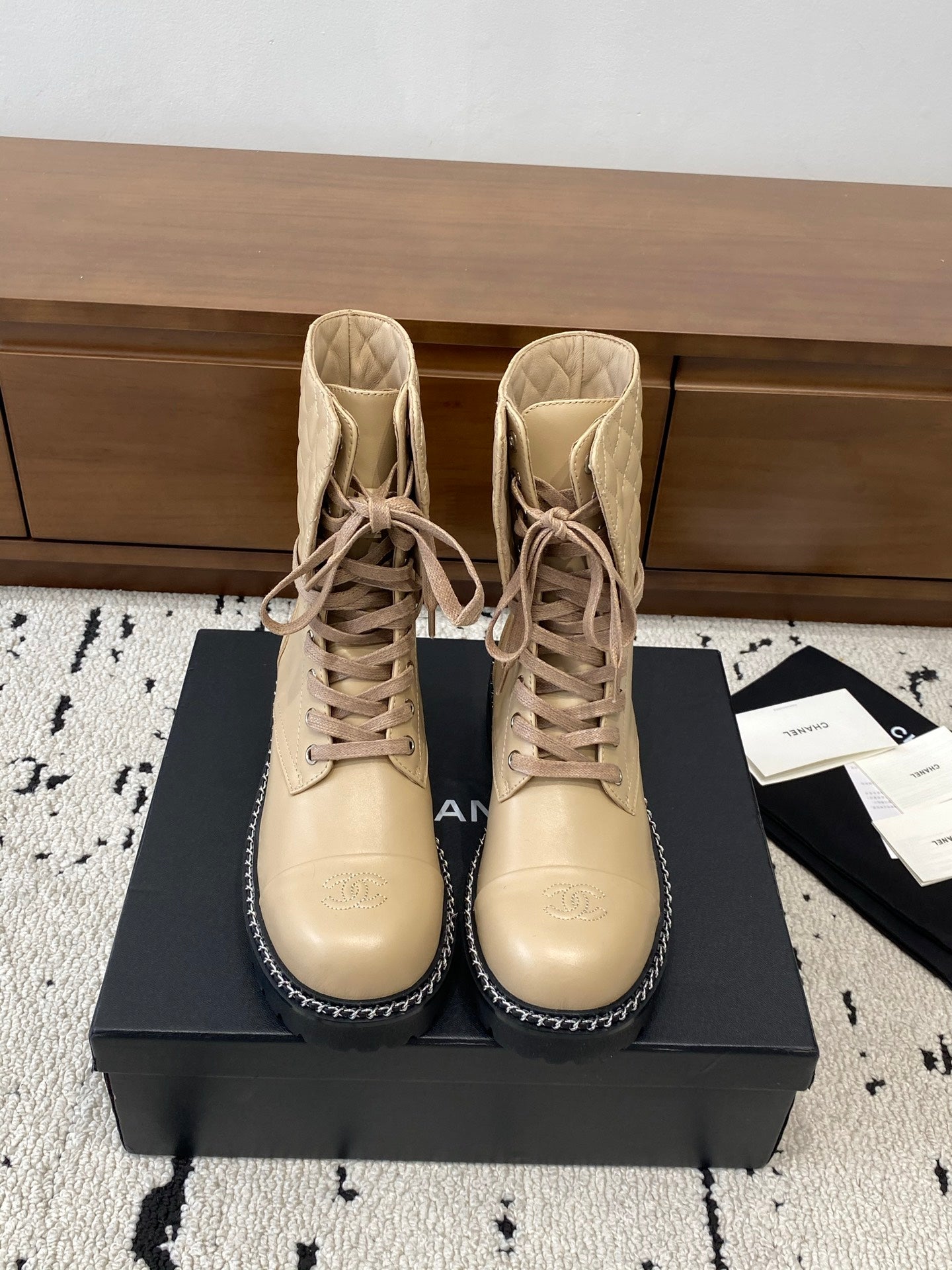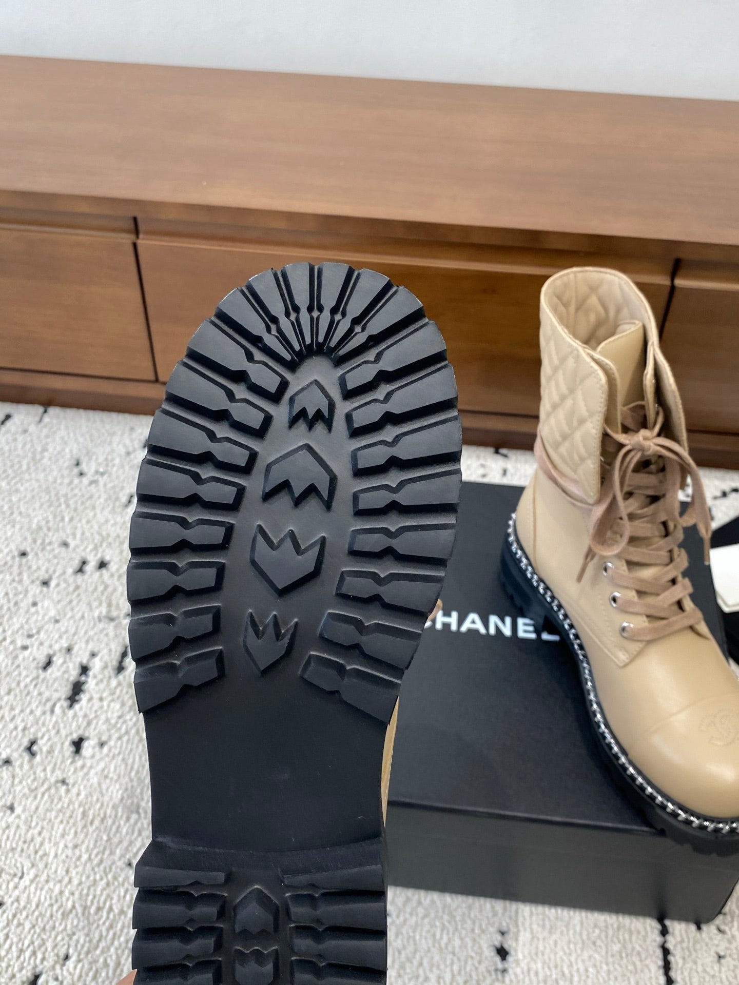 CC Ankle Boots Flat Quited Beige Calfskin 529288