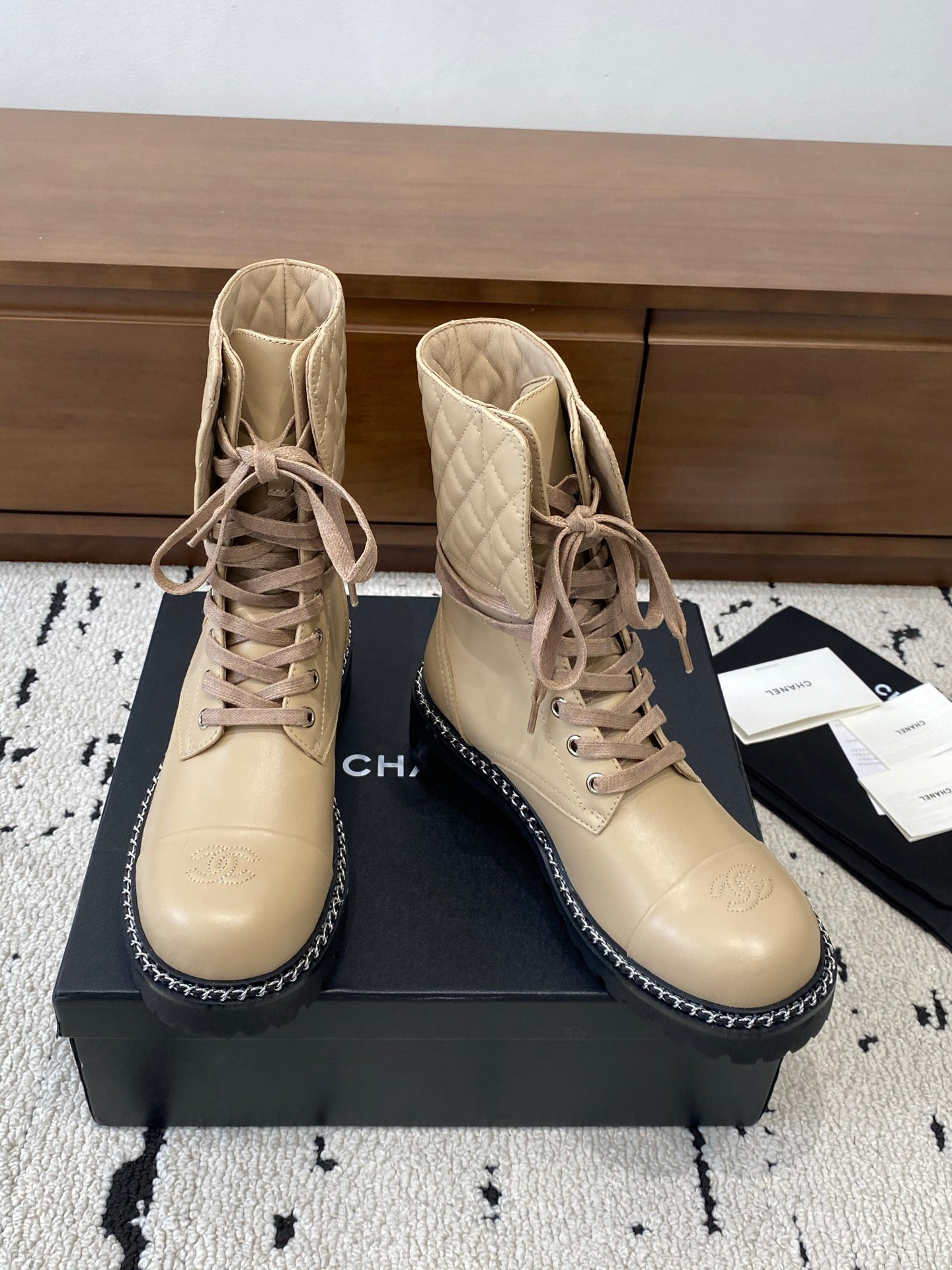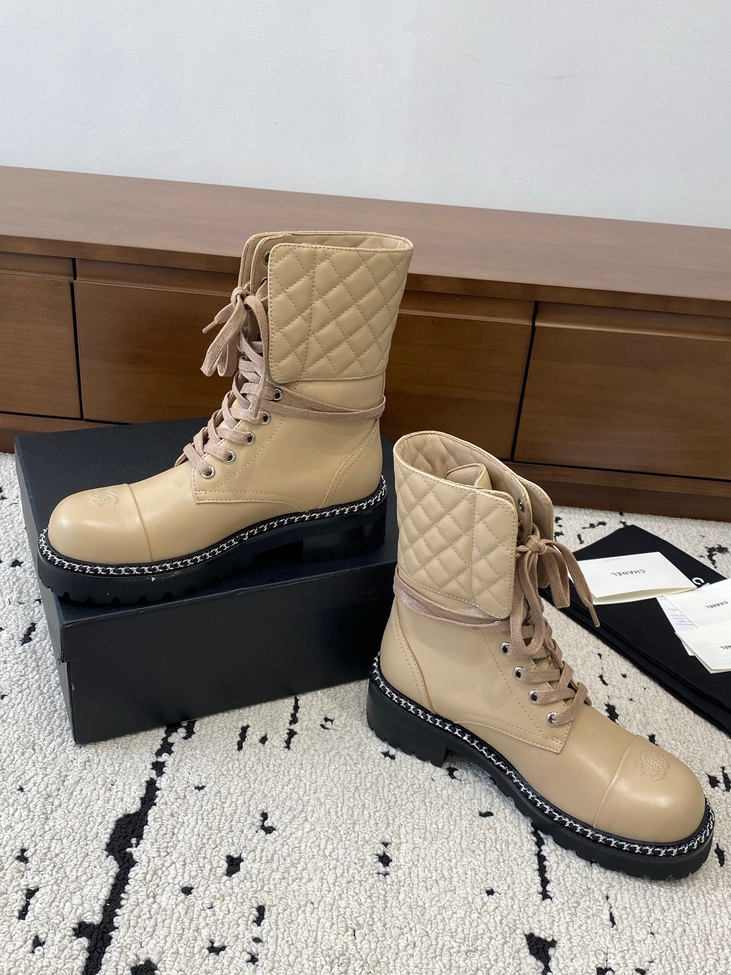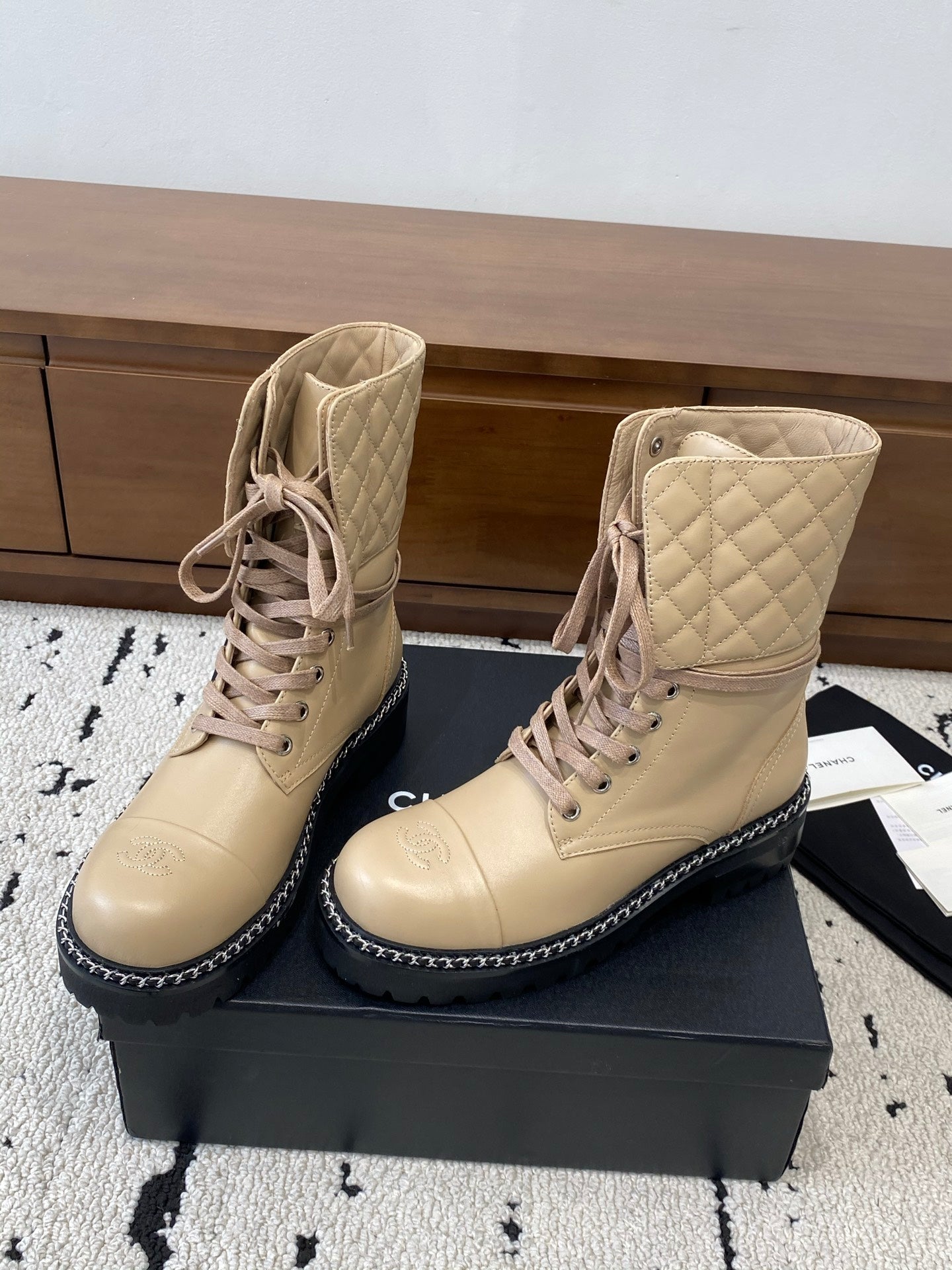 CC Ankle Boots Flat Quited Beige Calfskin 529288