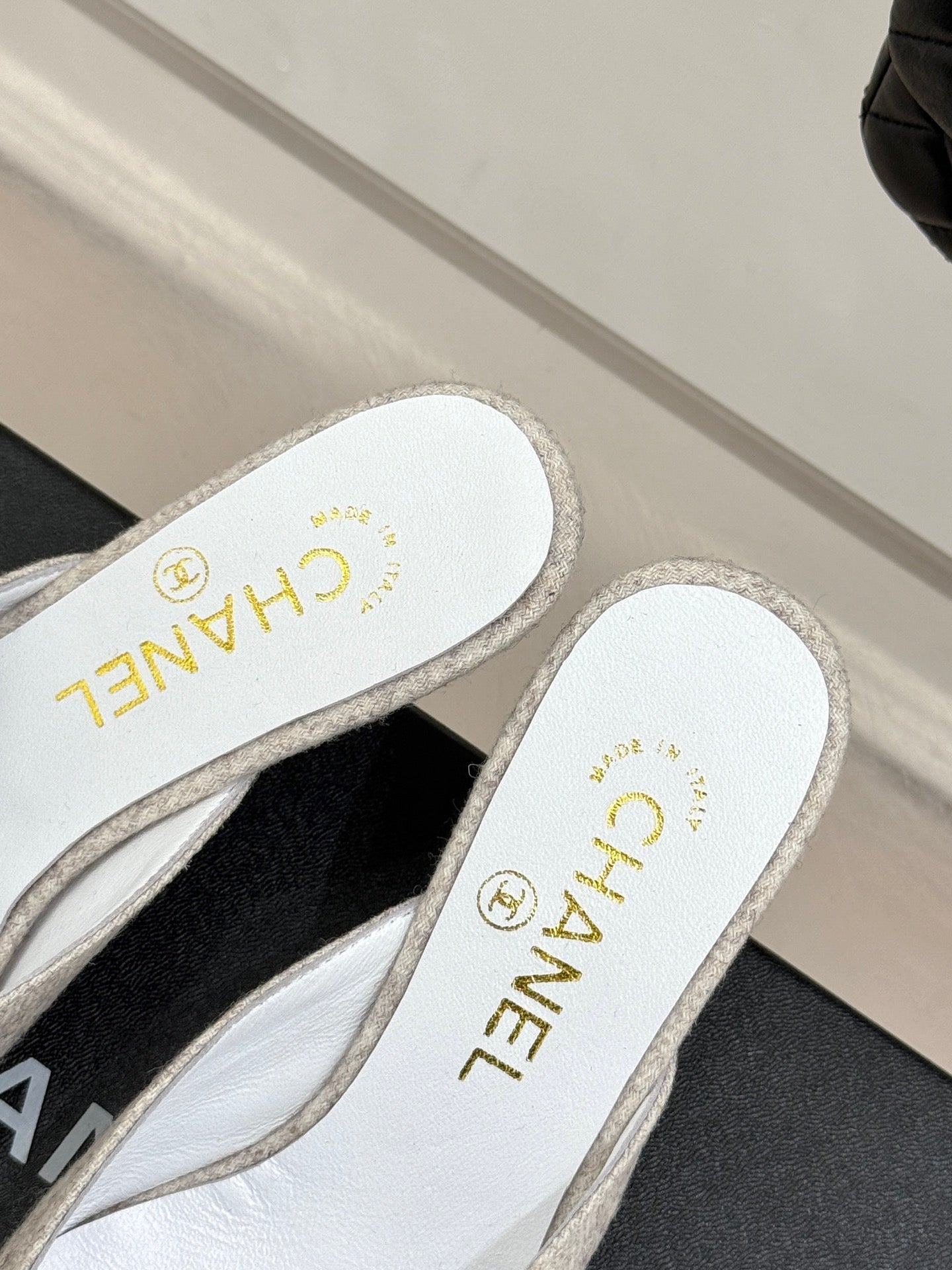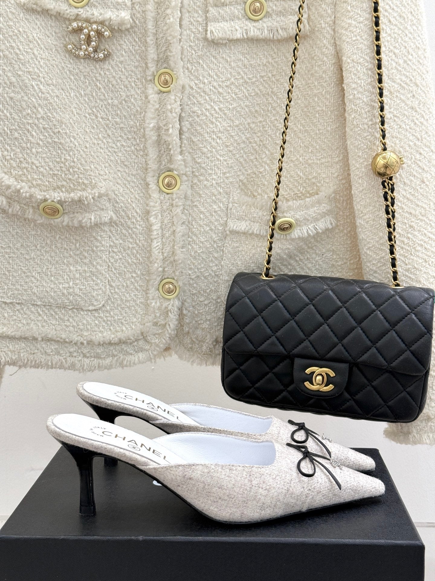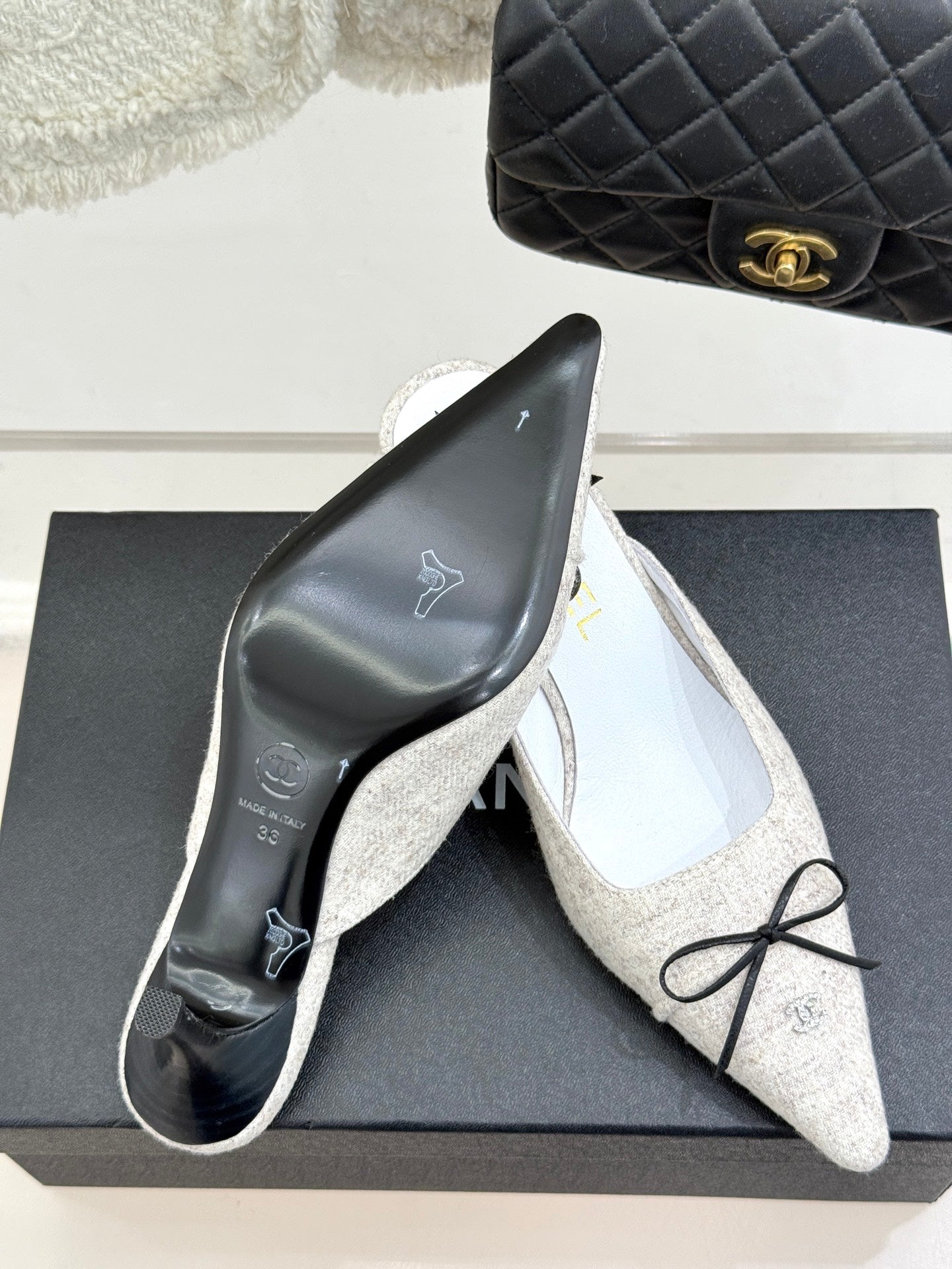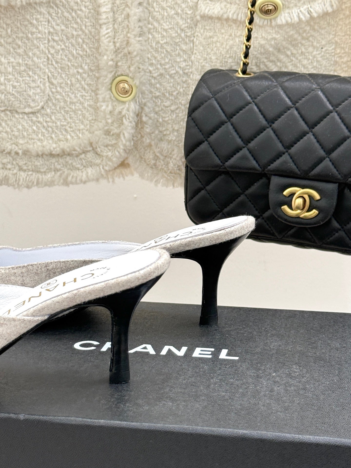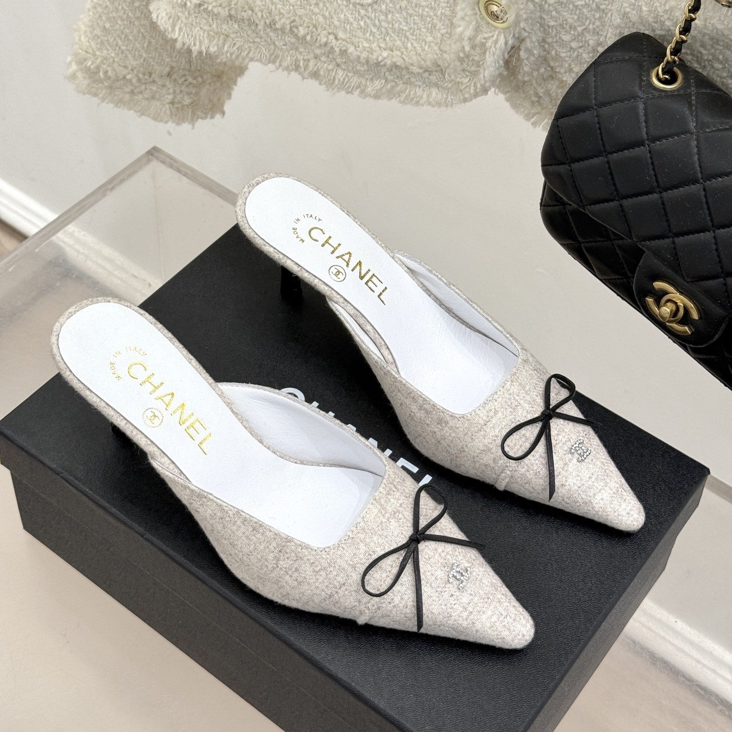 CC 25C Bowknot Pointed High Heel Half Slippers 60mm Beige Linen 265660