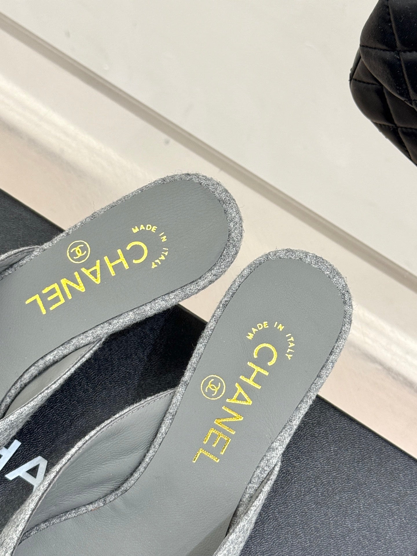 CC 25C Bowknot Pointed High Heel Half Slippers 60mm Grey Linen 265661