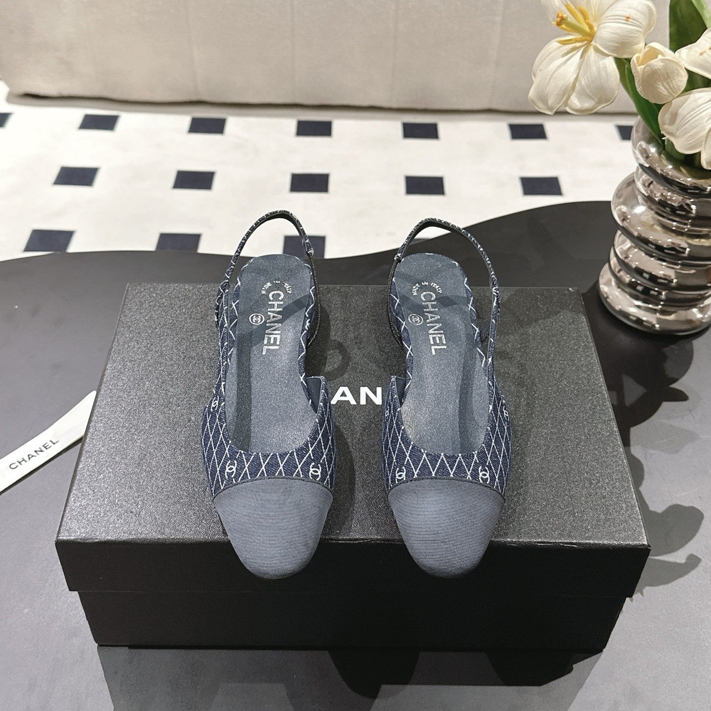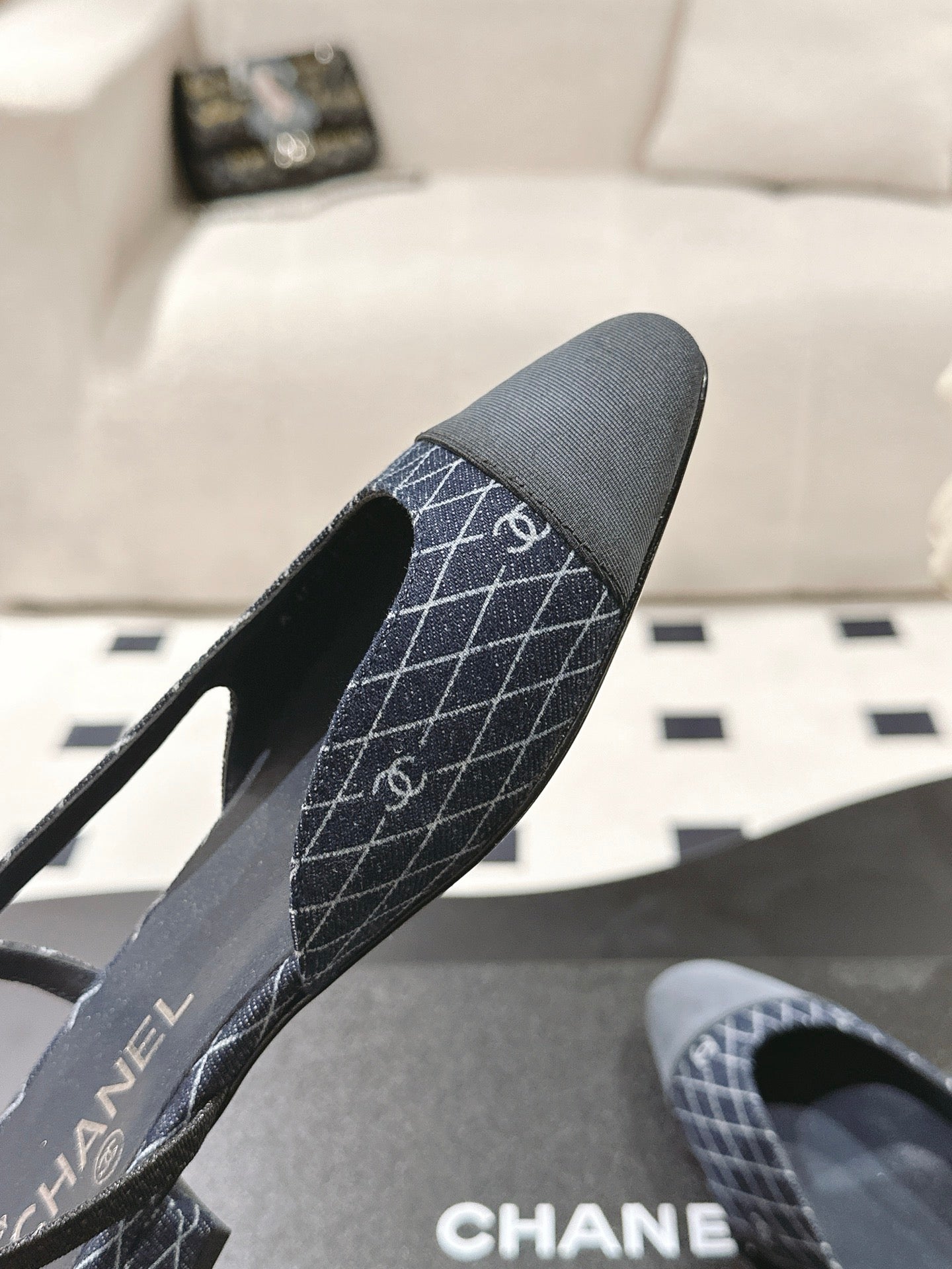 cc 25c slingback flat 15mm cross line pattern dark blue denim 237486