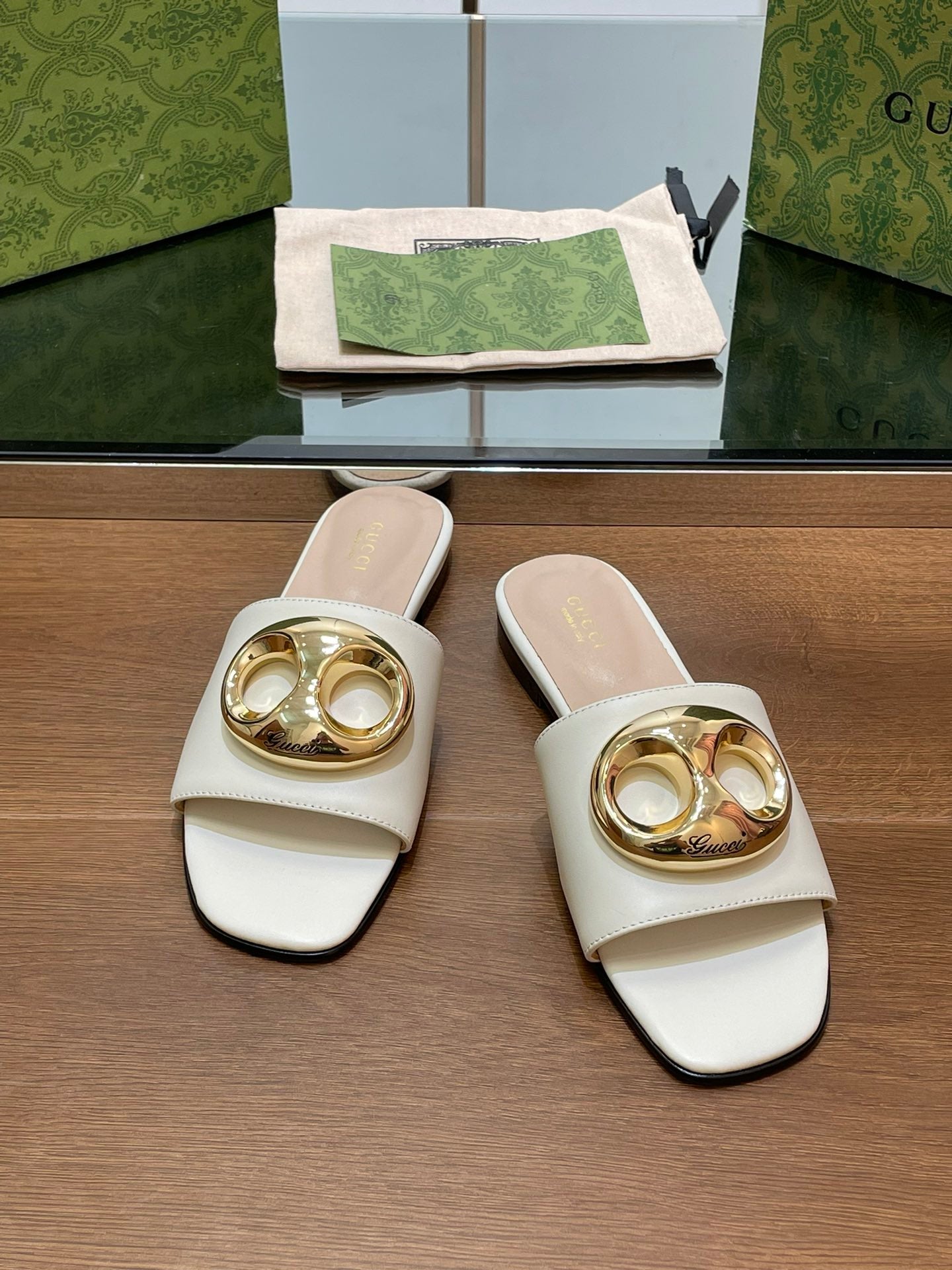 FLAT MULE IN WHITE CALFSKIN