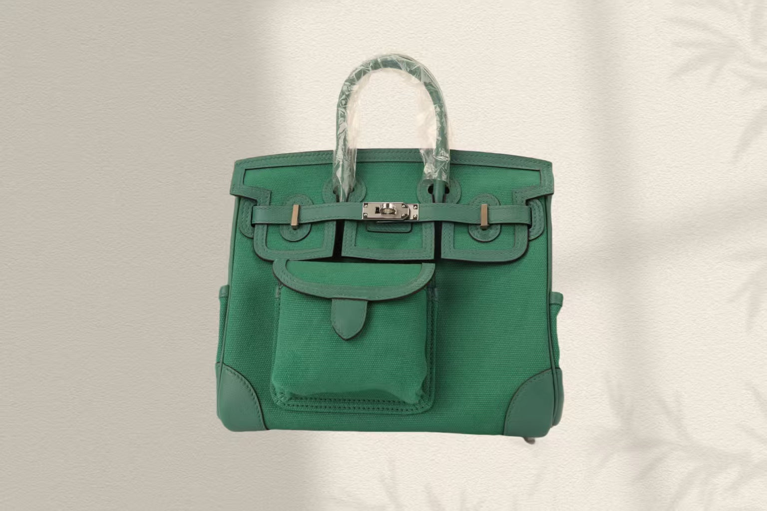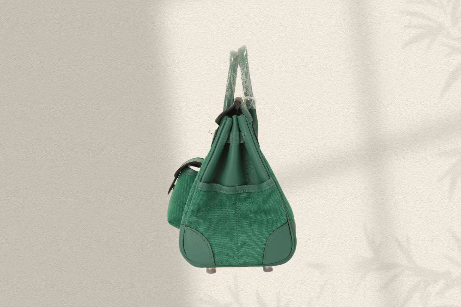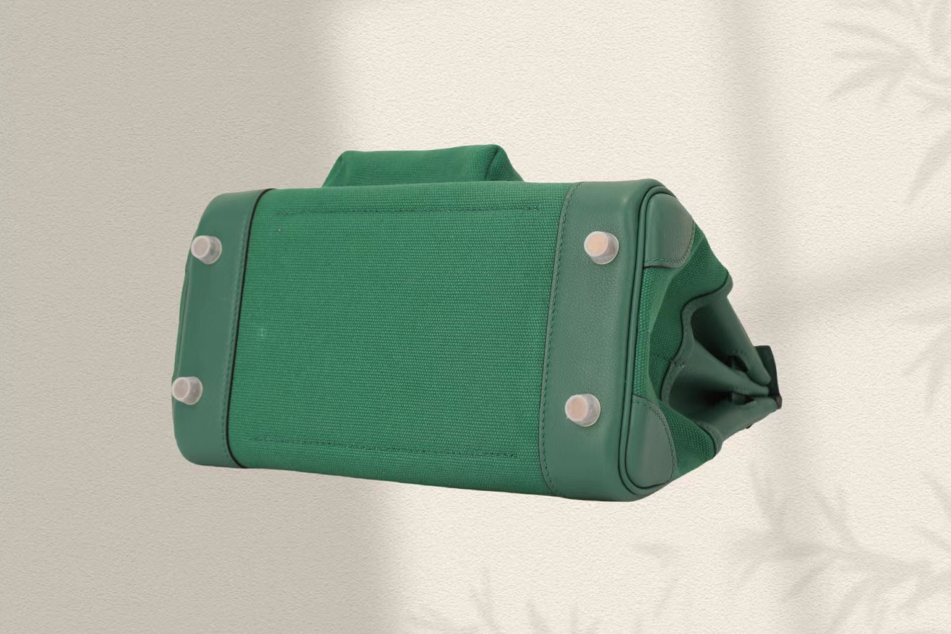 HM Birkin Cargo 25CM Velvet Green Silver Buckle Swift Leather and Canvas