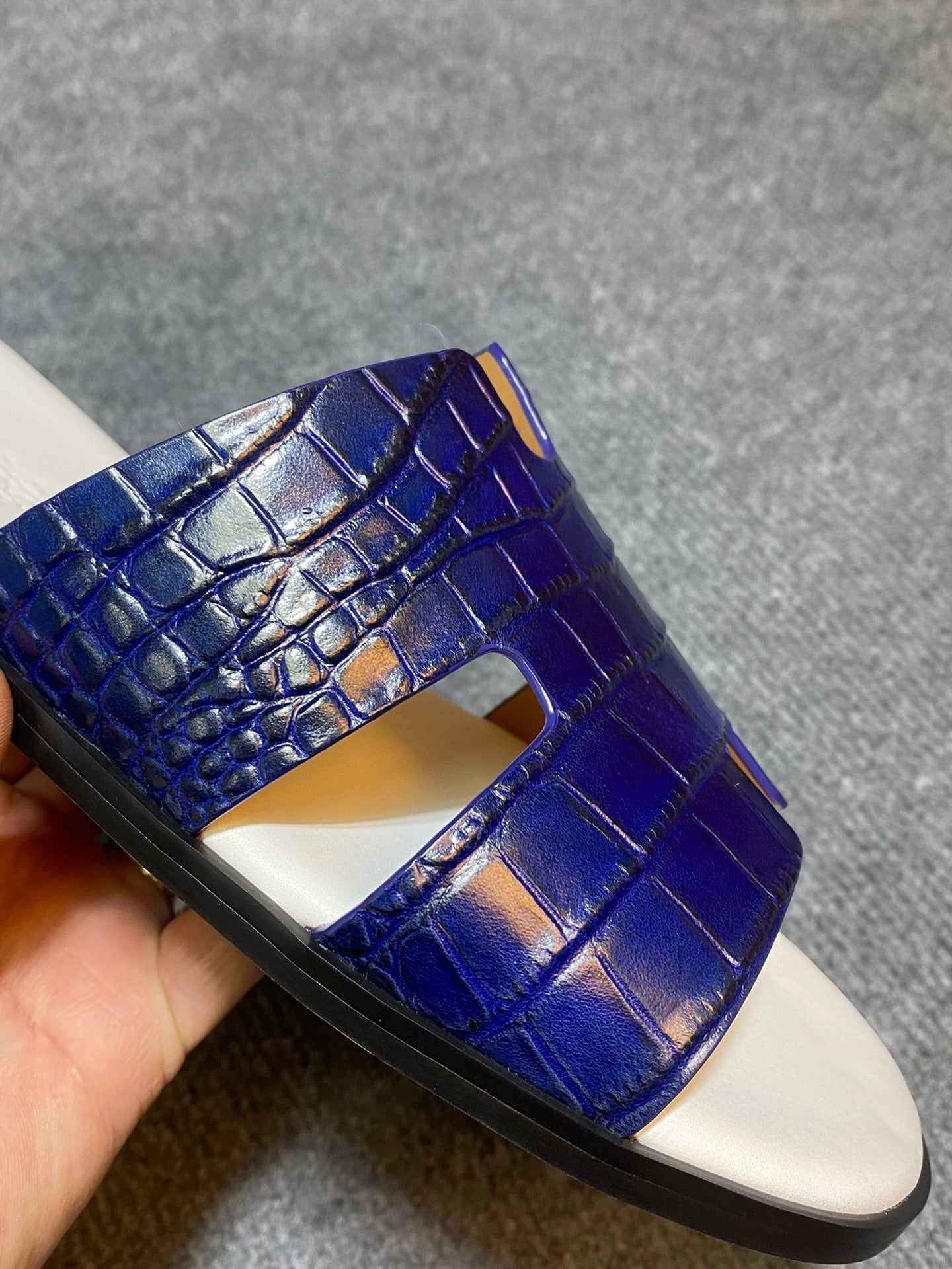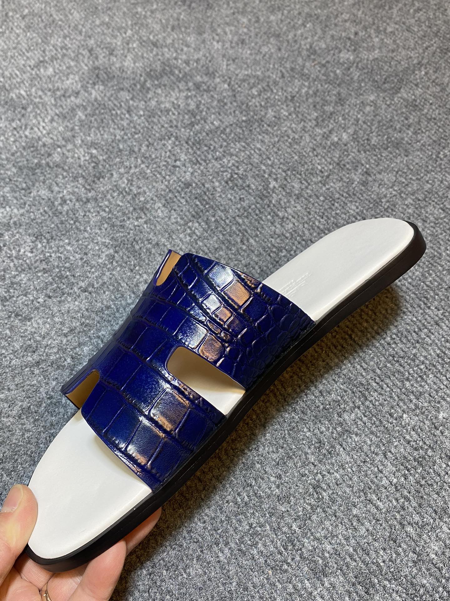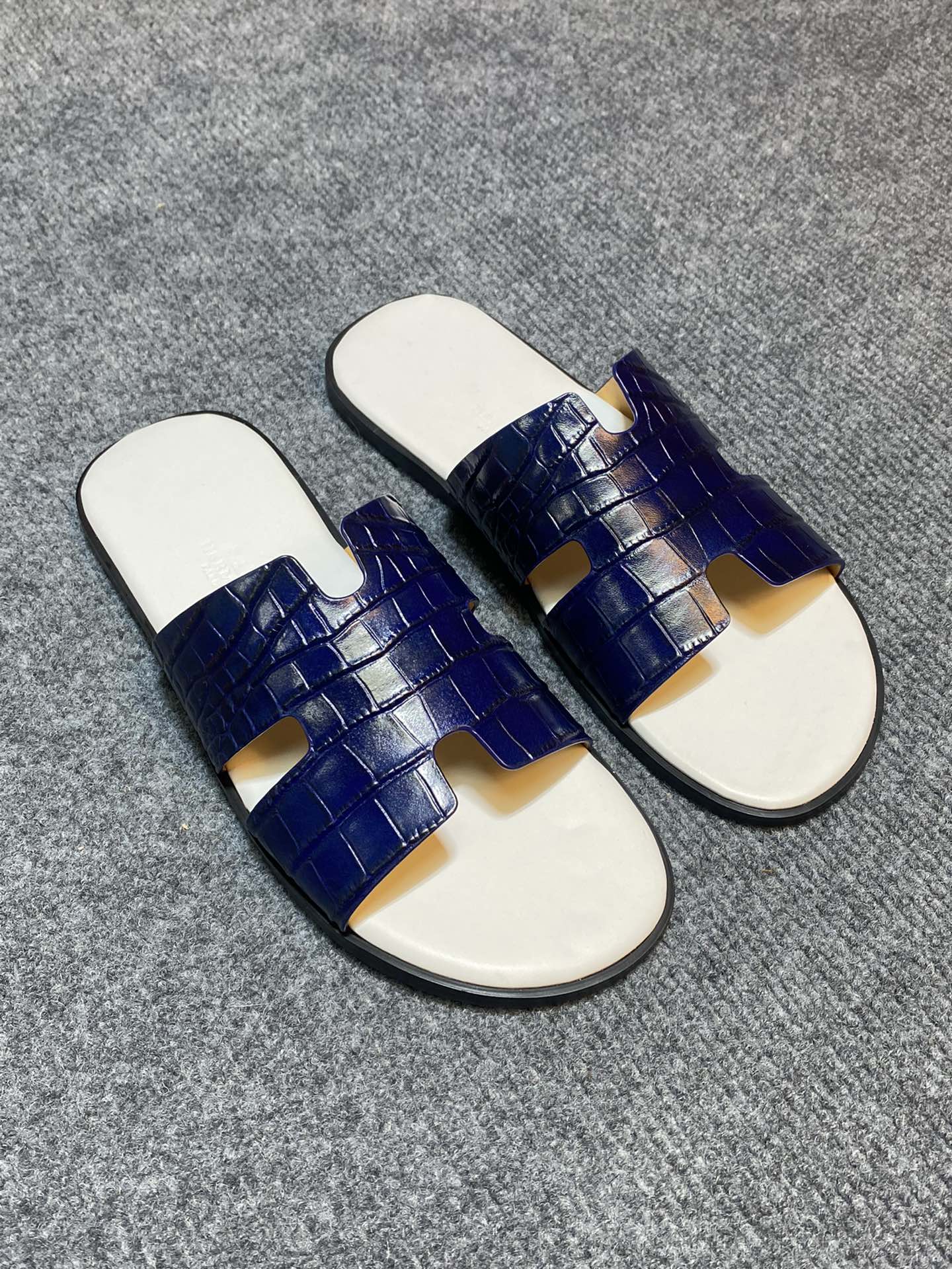 HM IZMIR CROCODILE MOTIF SANDAL NAVY AND WHITE CALFSKIN