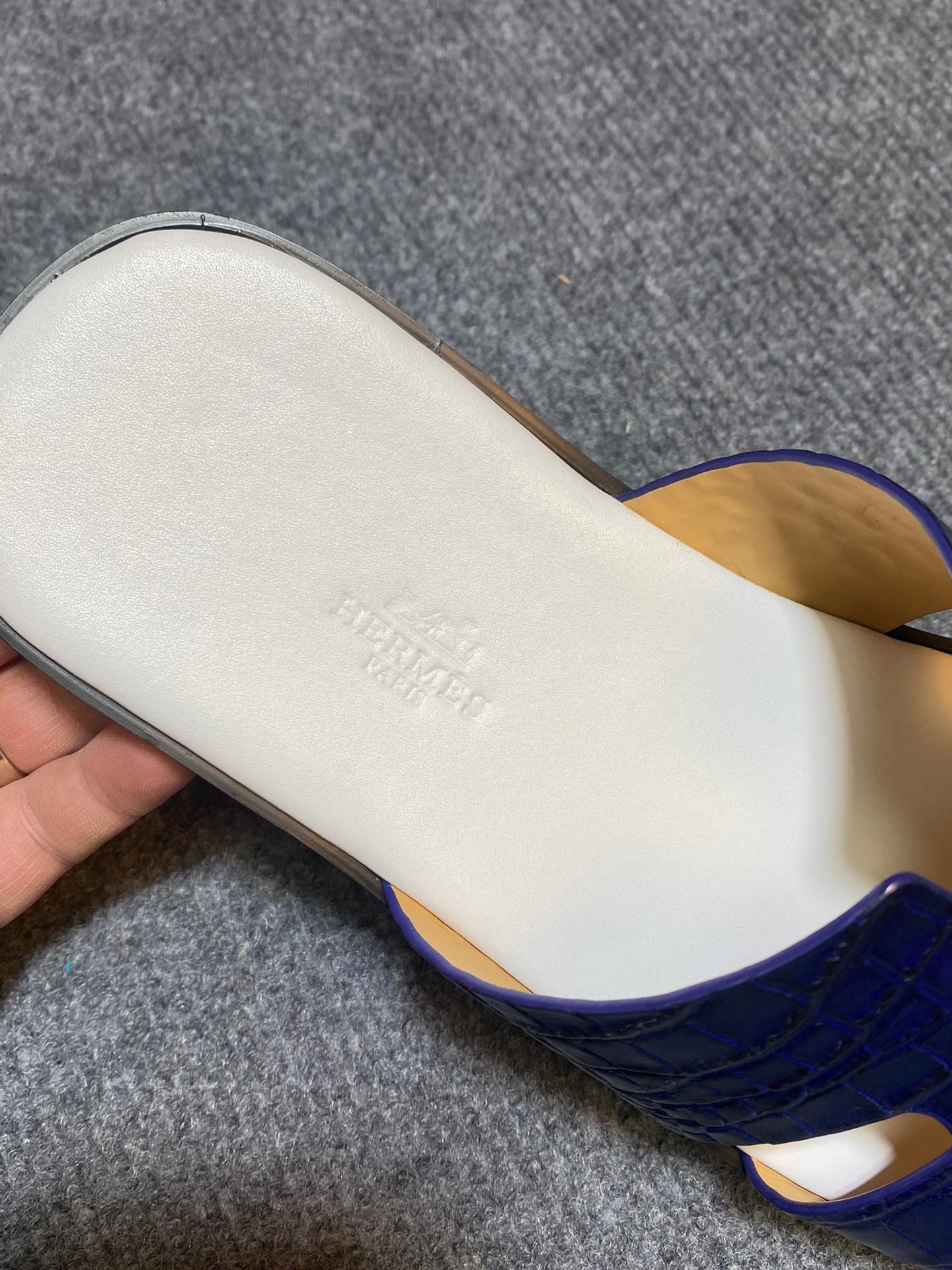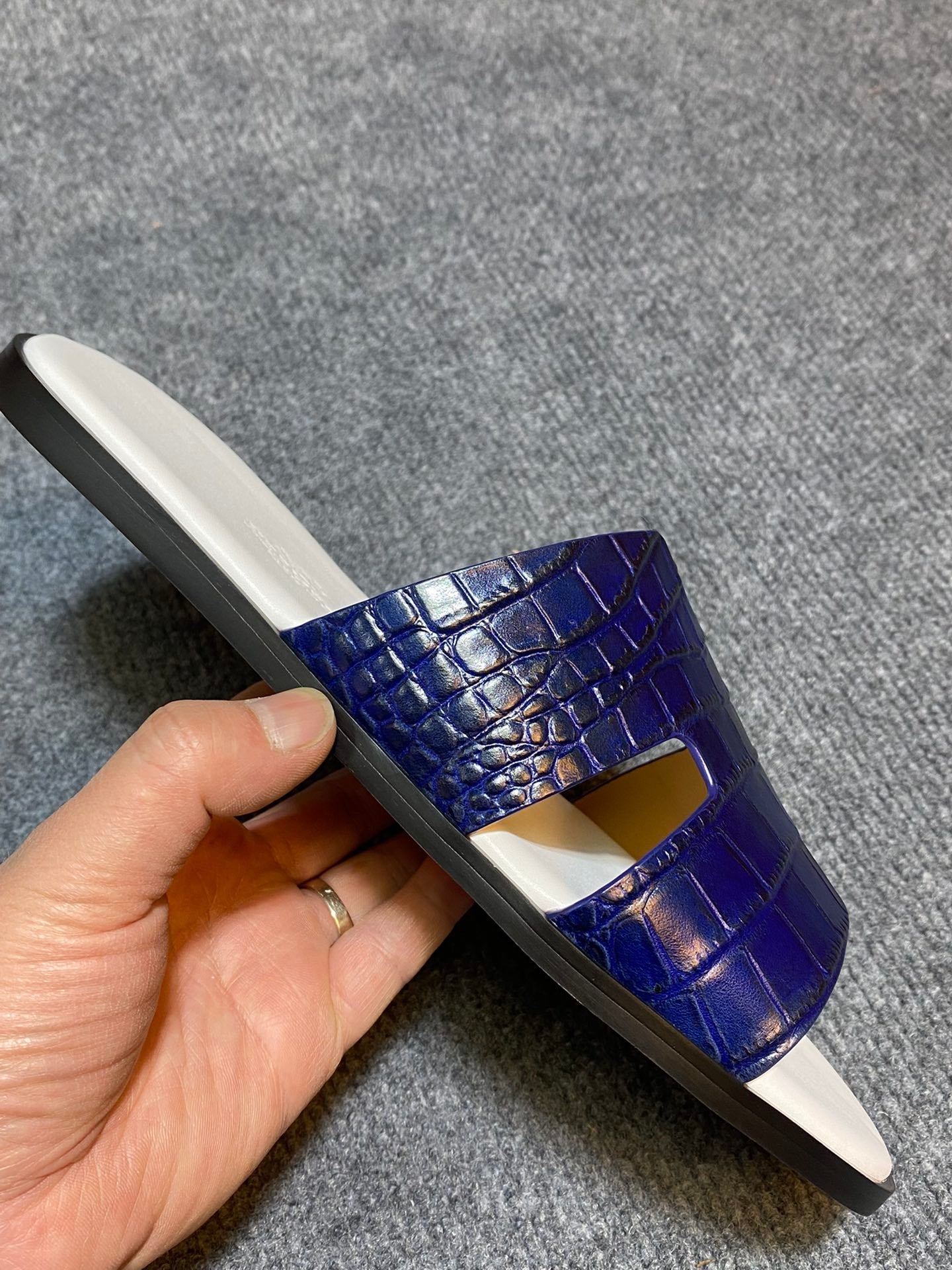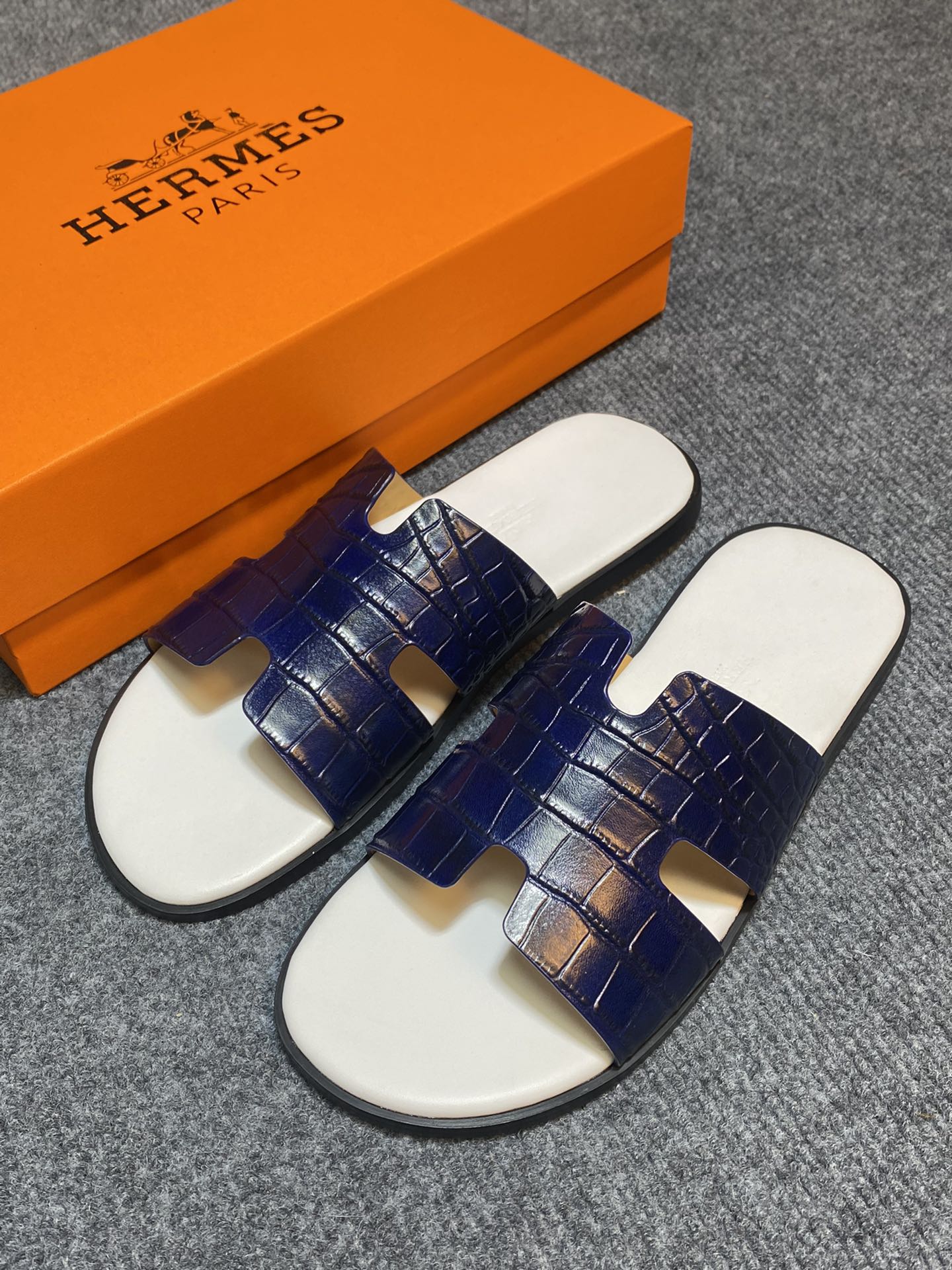 HM IZMIR CROCODILE MOTIF SANDAL NAVY AND WHITE CALFSKIN