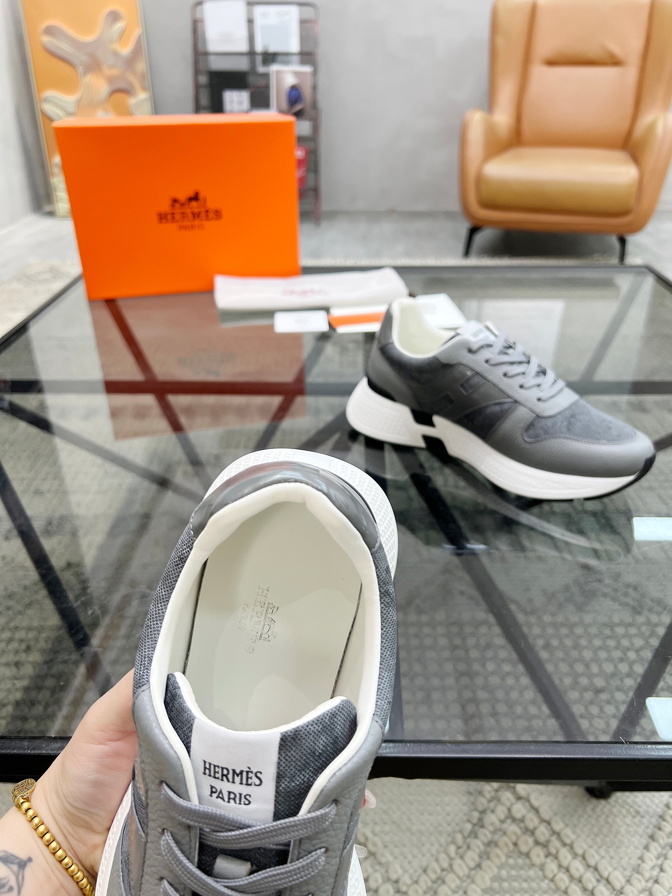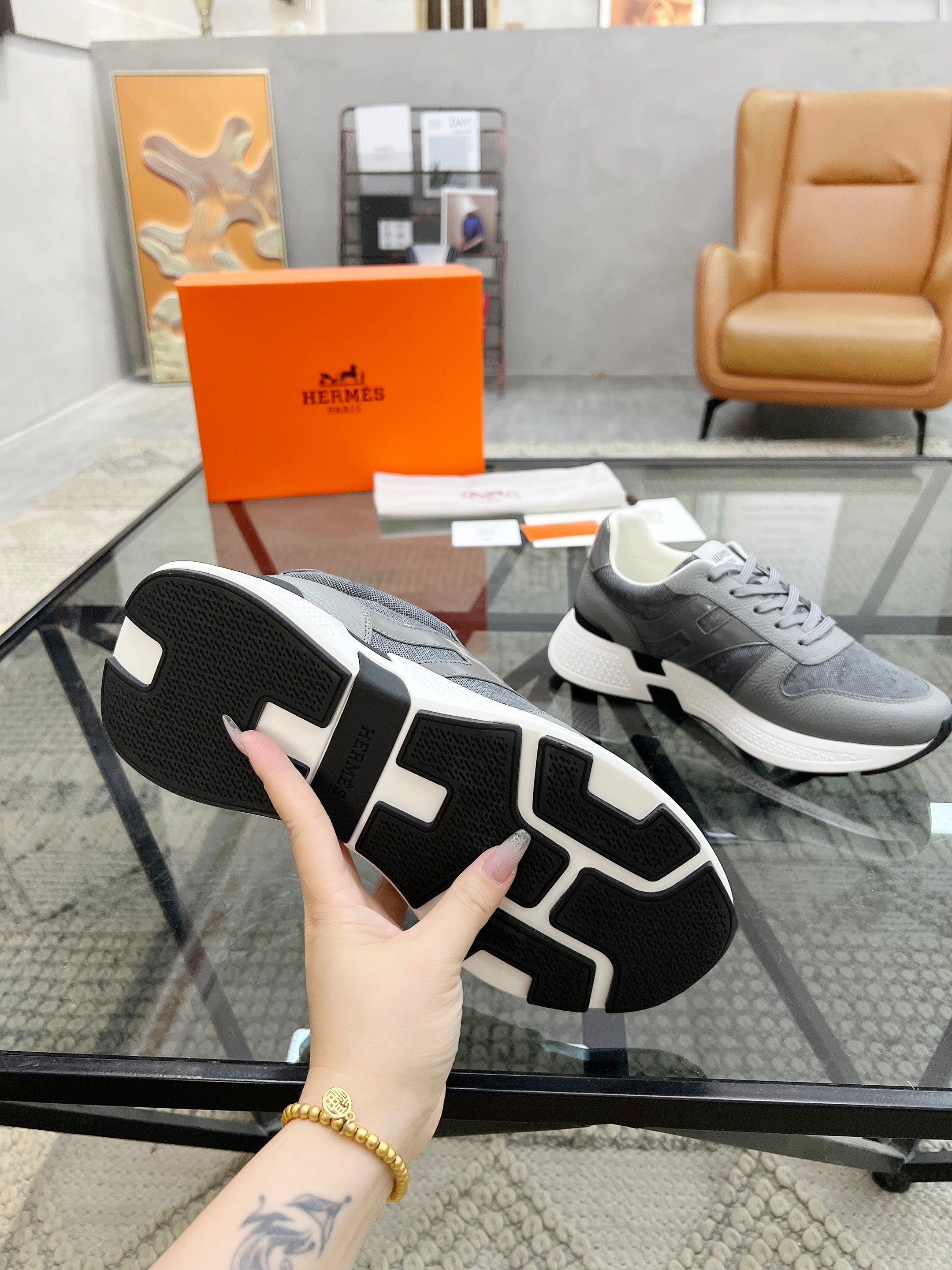 HM Men's Sneaker Grey Cowhide Fabric 603854