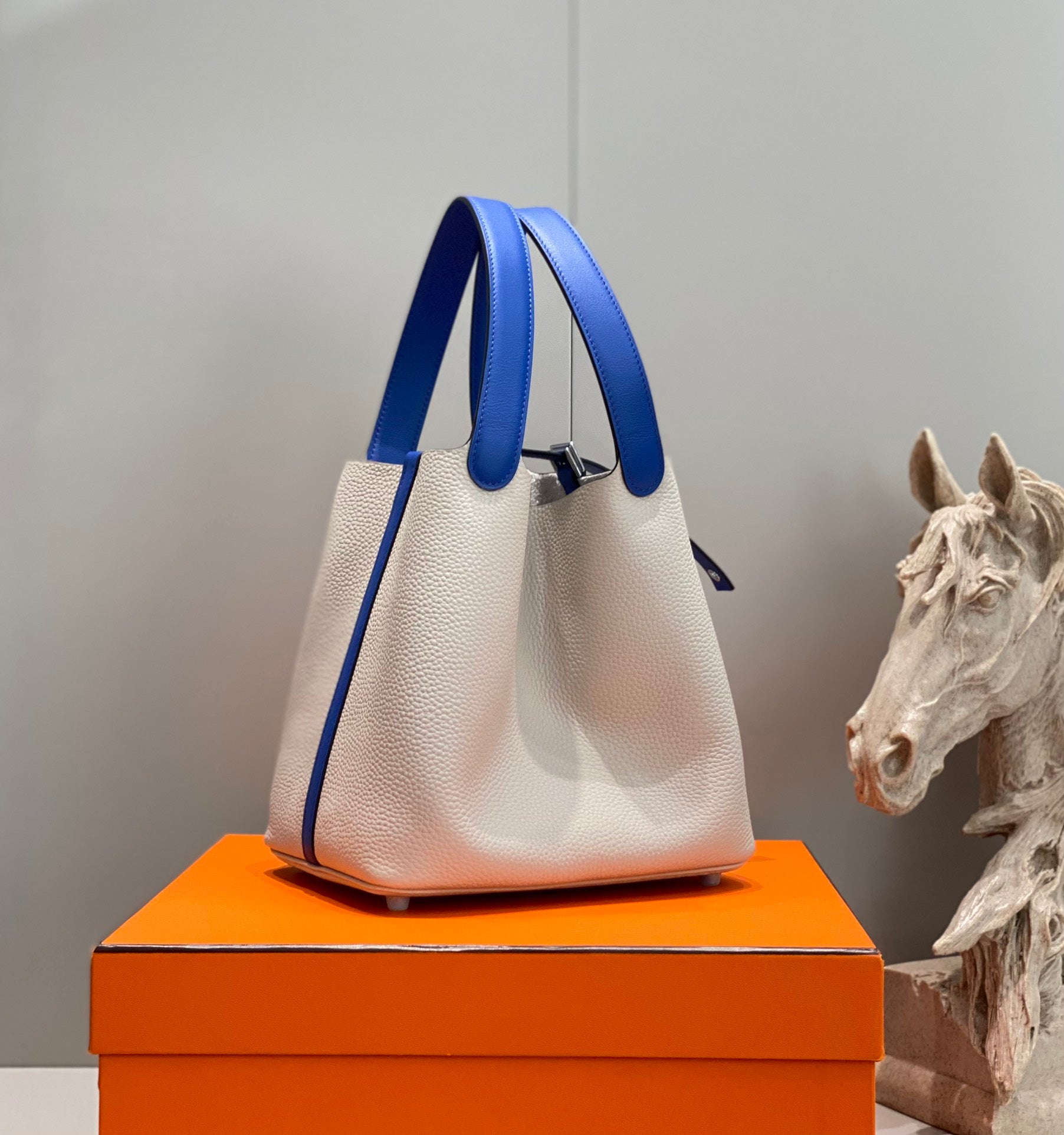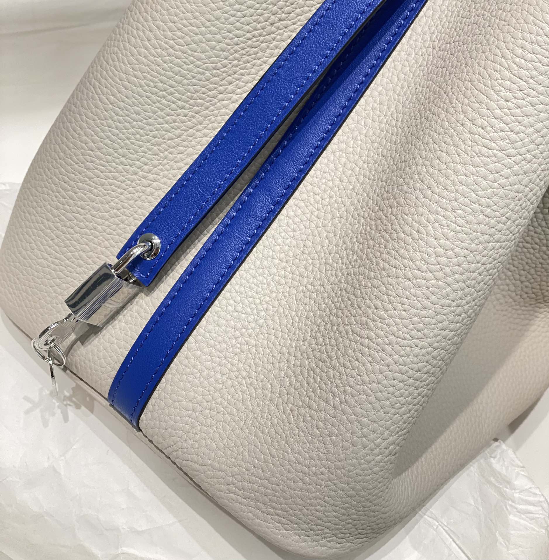 HM PICOTIN LOCK 22 WHITE AND COBALT TOGO LEATHER