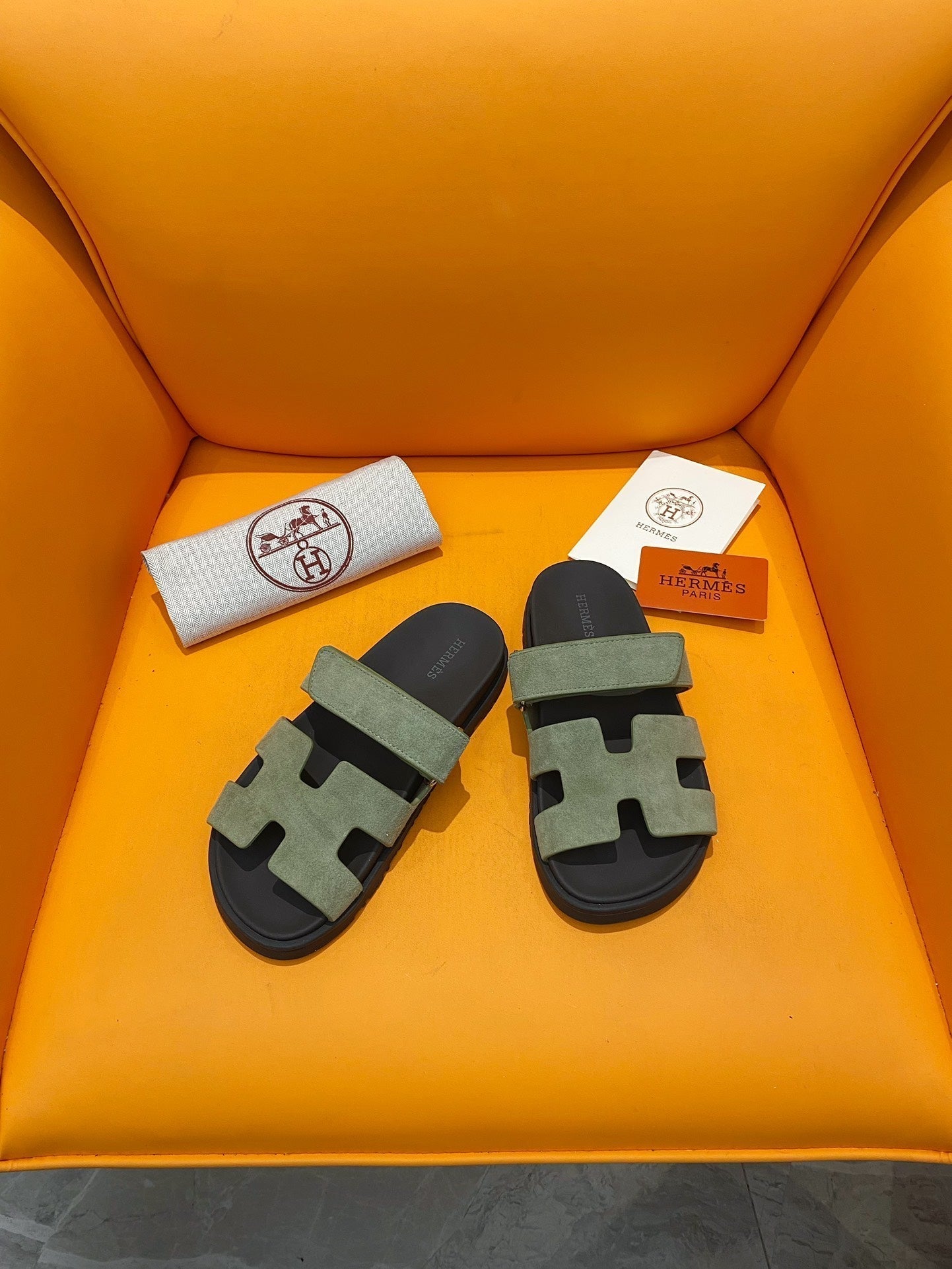 chypre sandal olive suede black calfskin