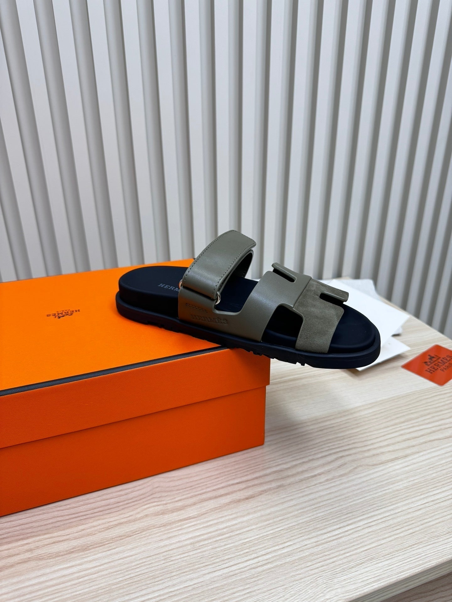 HM Chypre Sandal In Grey Green Cowhide And Suede 968868