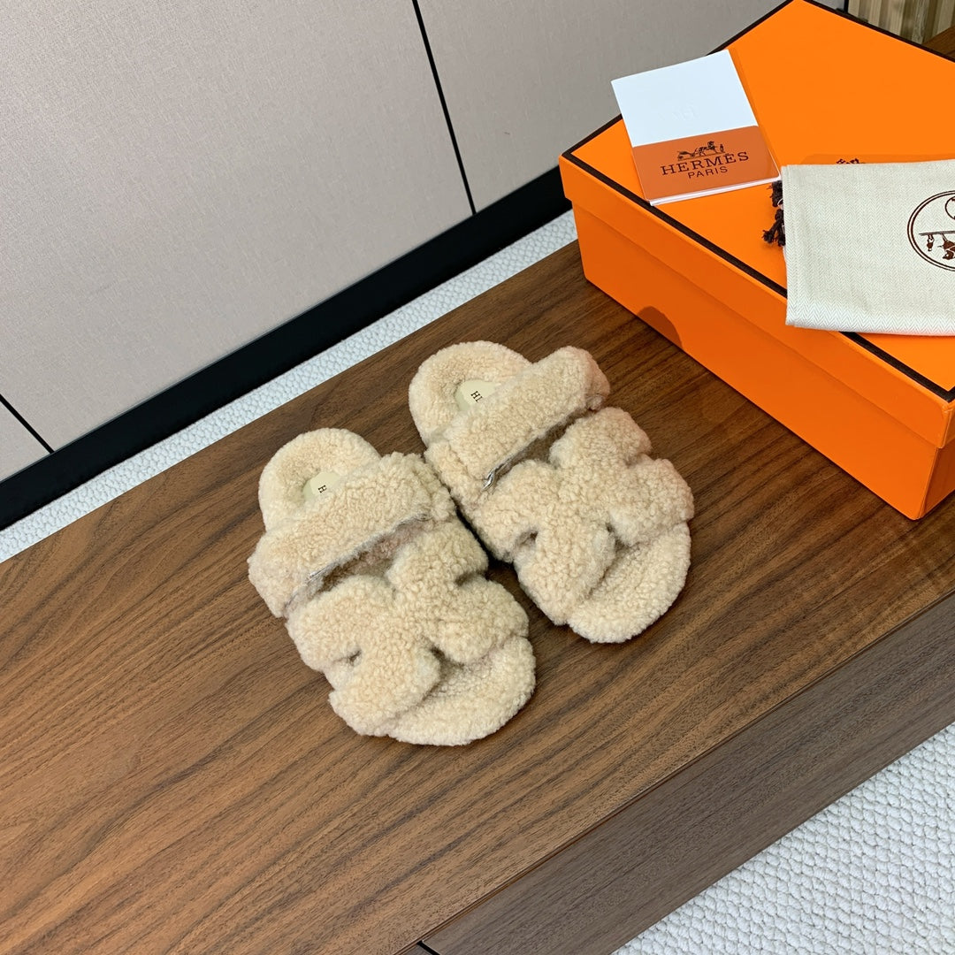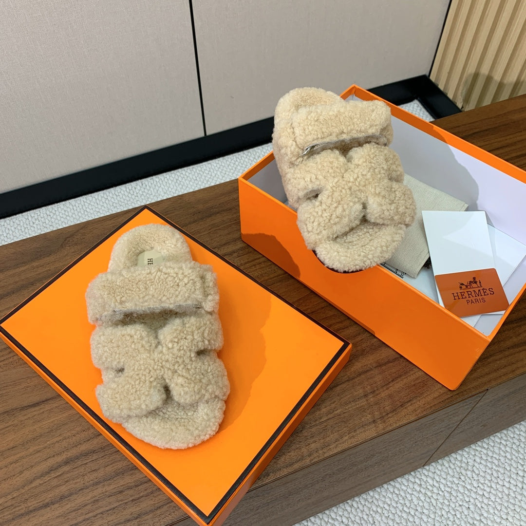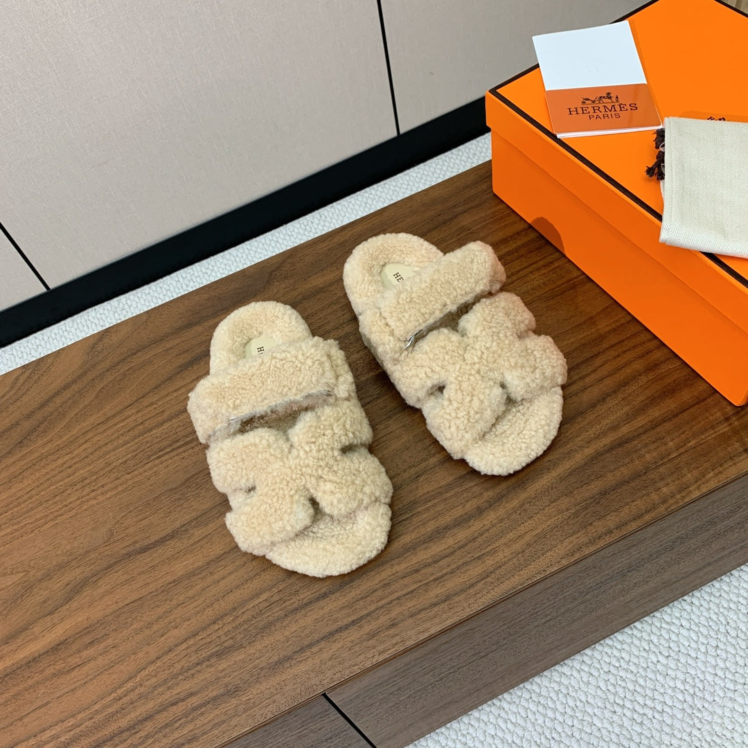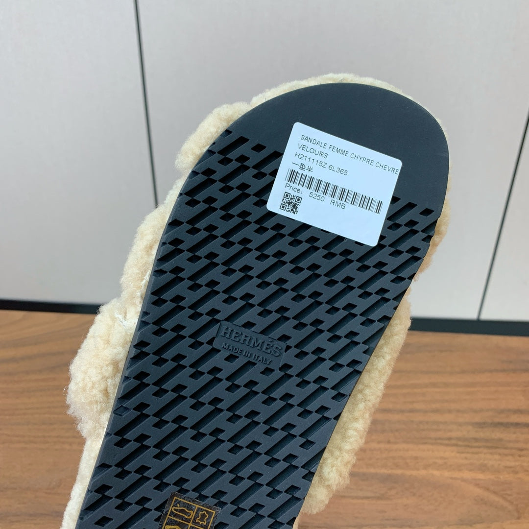 HM Chypre Sandal In Light Beige Lamb Wool 984185