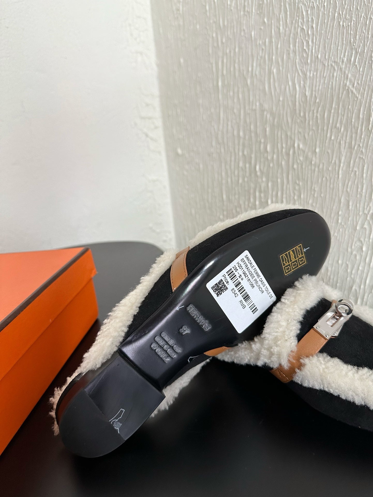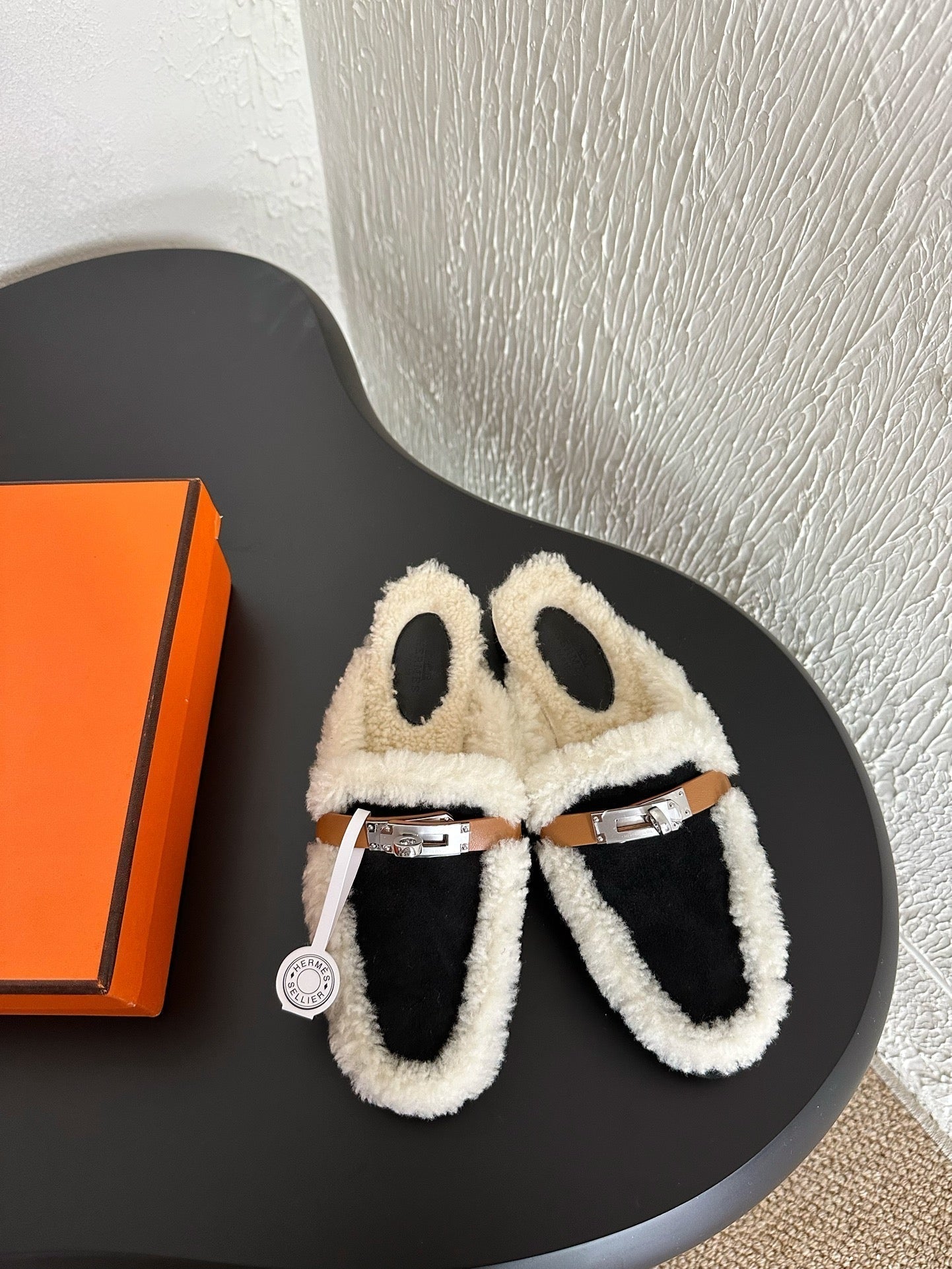 HM Oz Mule Black Mix White Suede Lined With Wool Fleece 961091