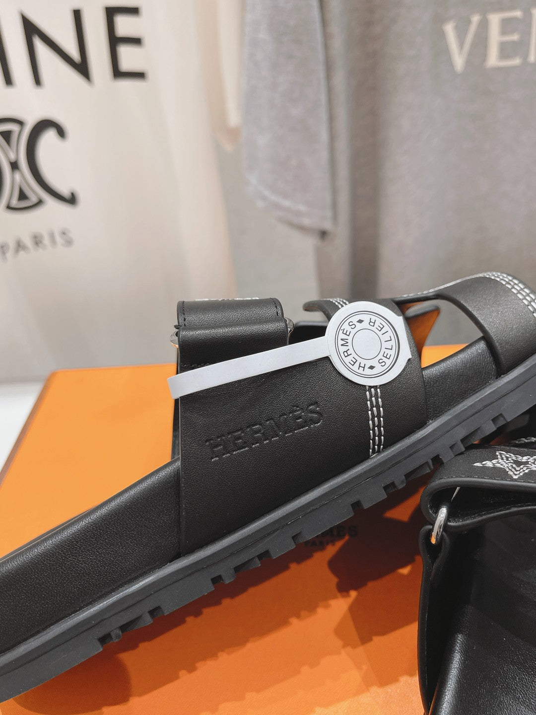 STAR-PATTERNED SANDAL BLACK CALFSKIN