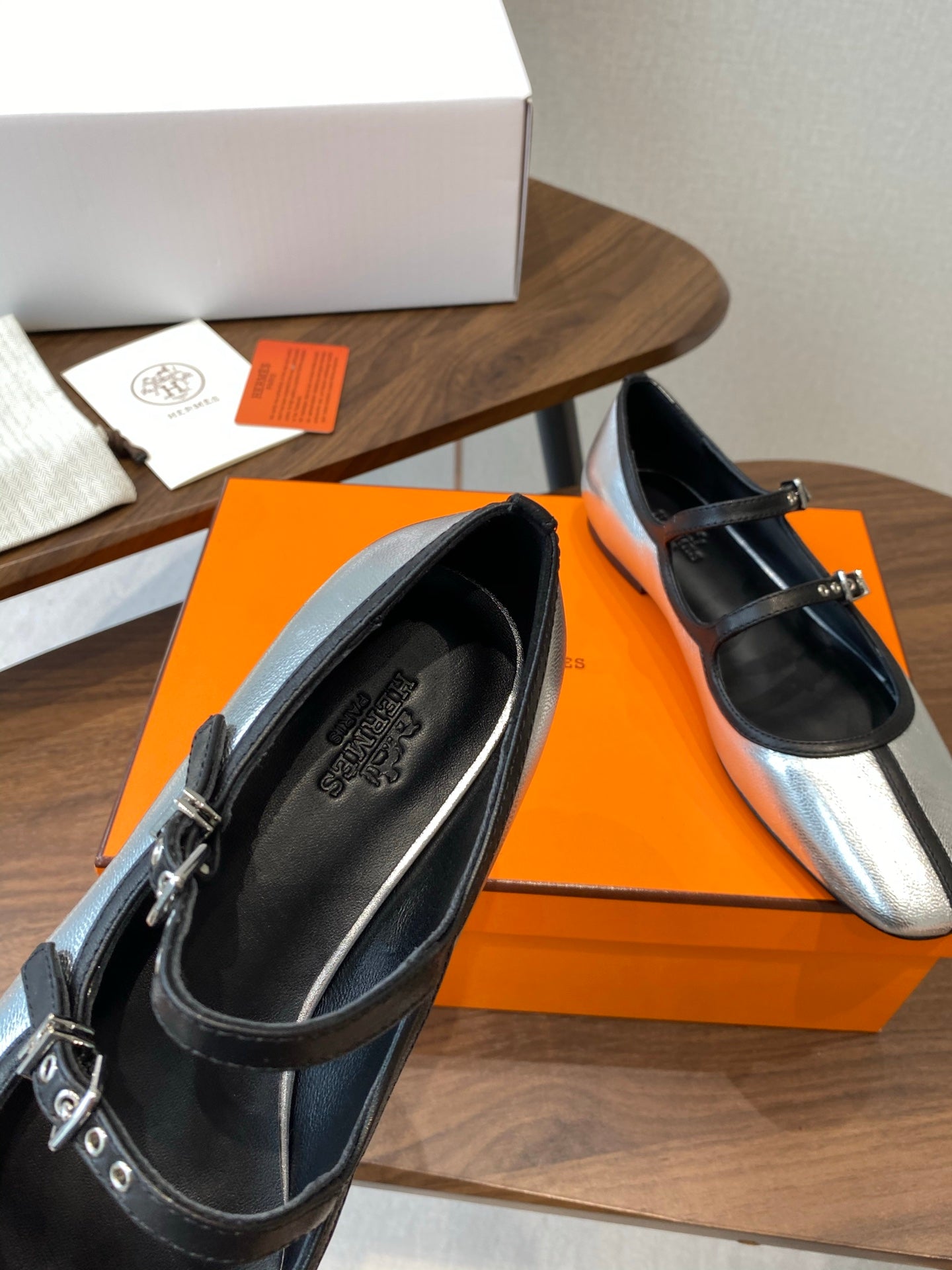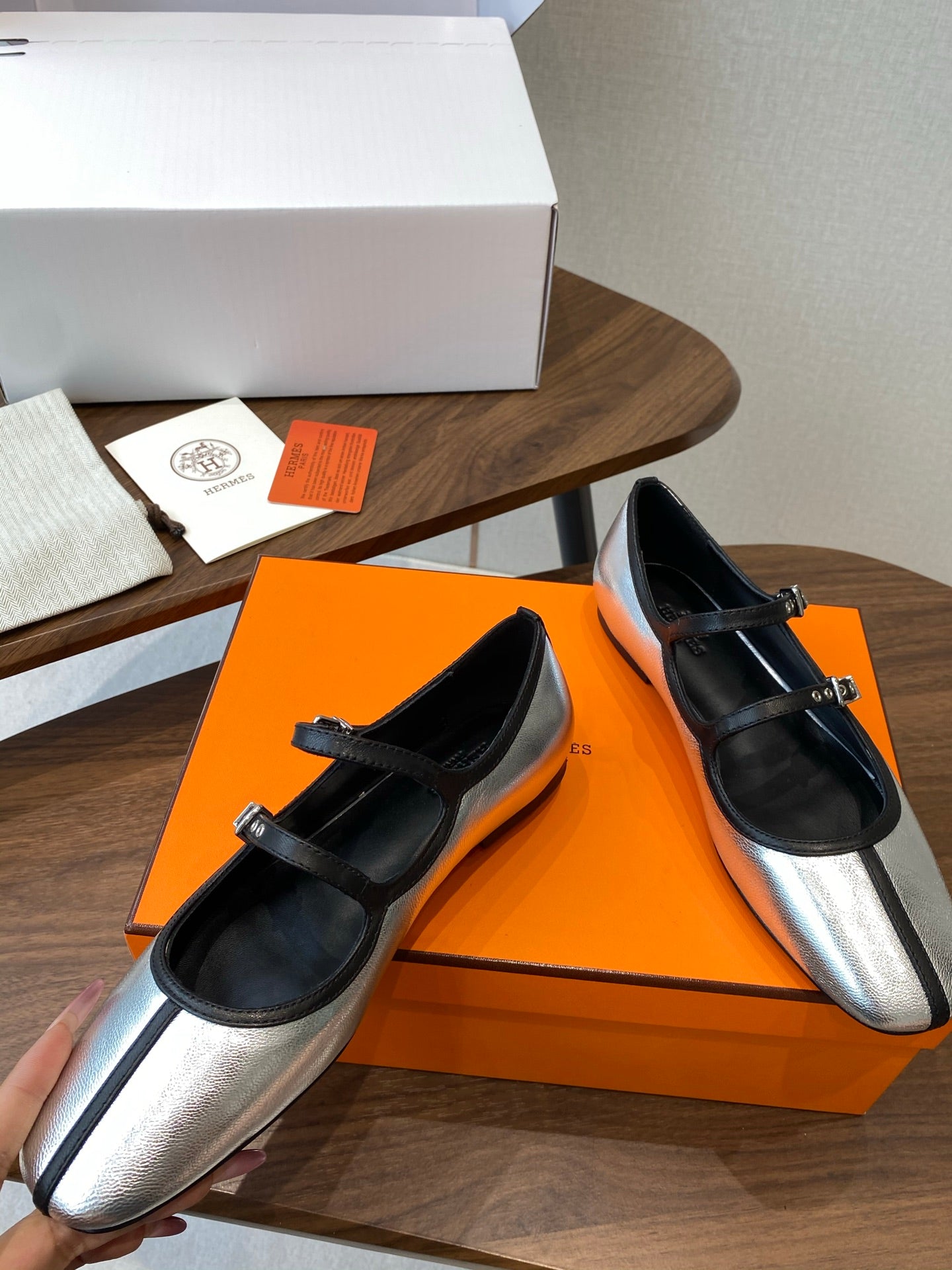 HM 25s Mary Jane Double strap Sliver Calfskin 422563