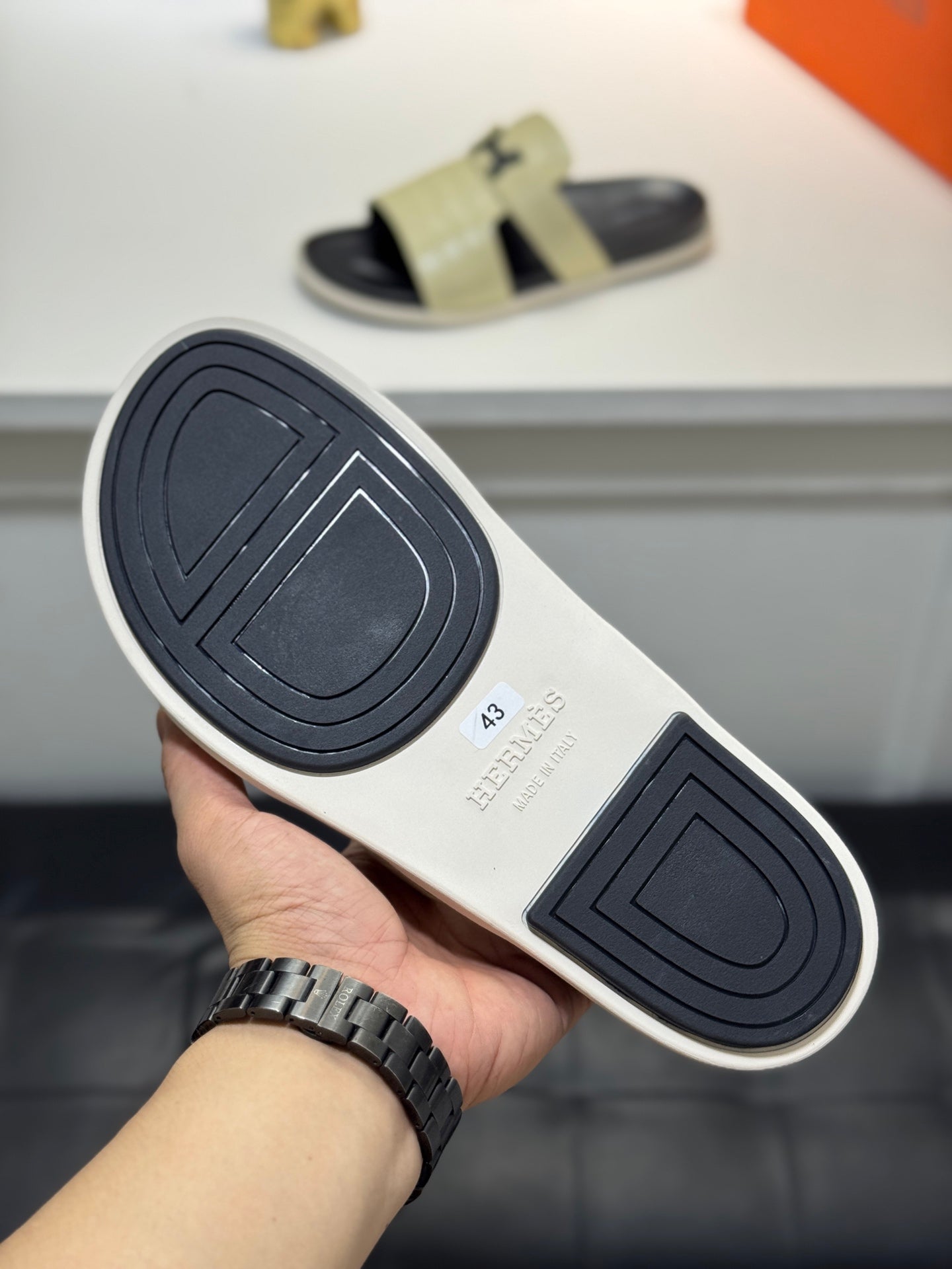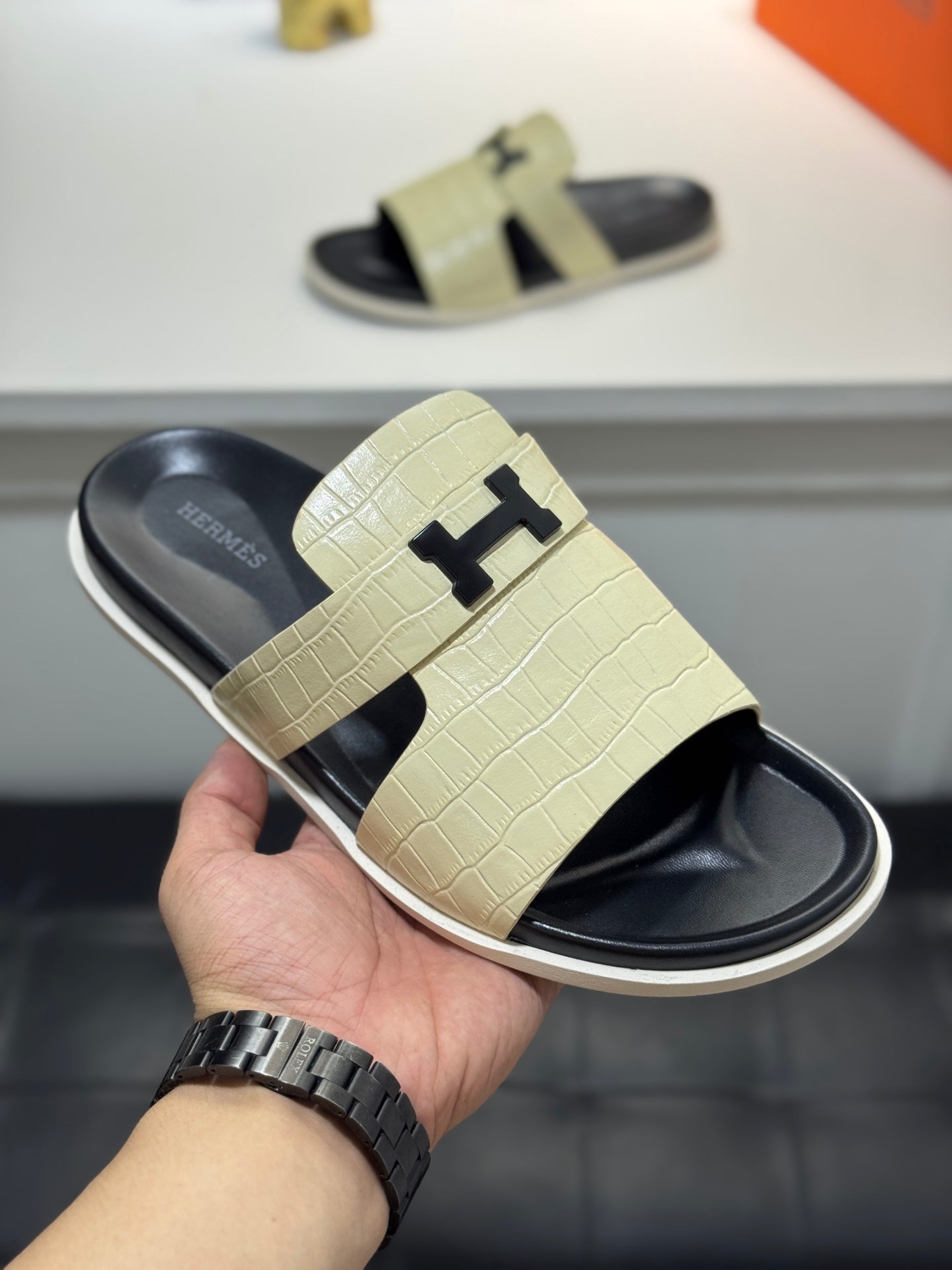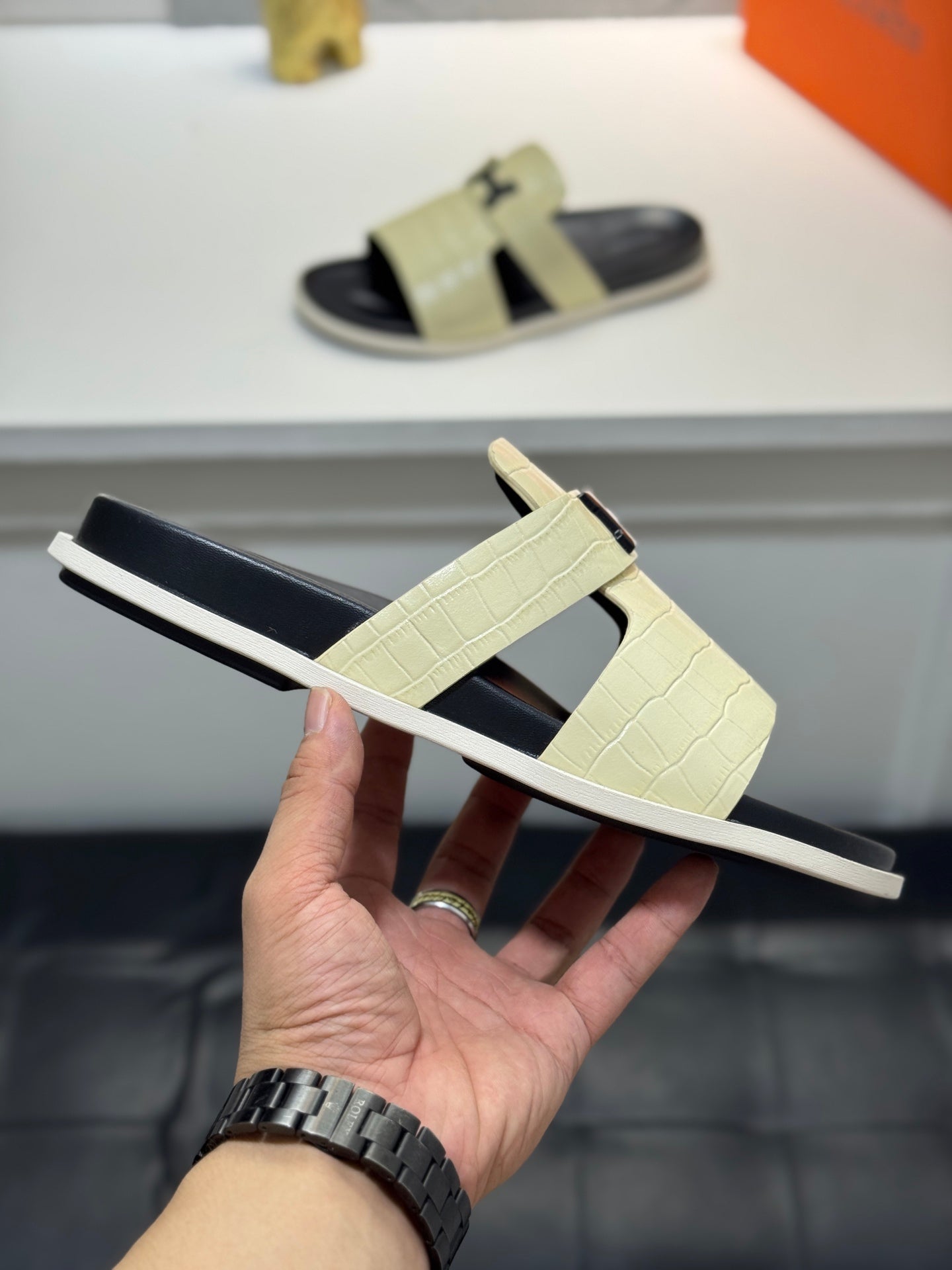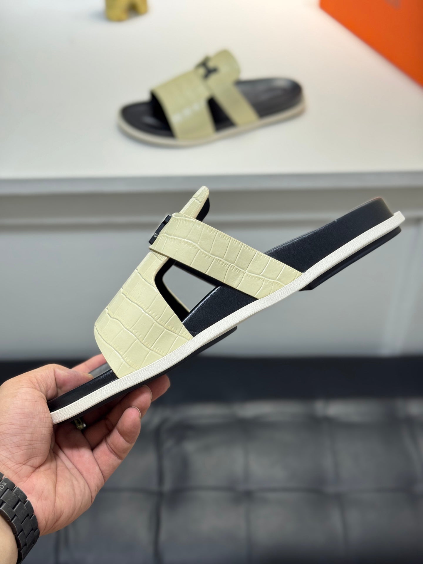 HM Oran H Noir Buckle Slippers in Cream Cowhide 735239