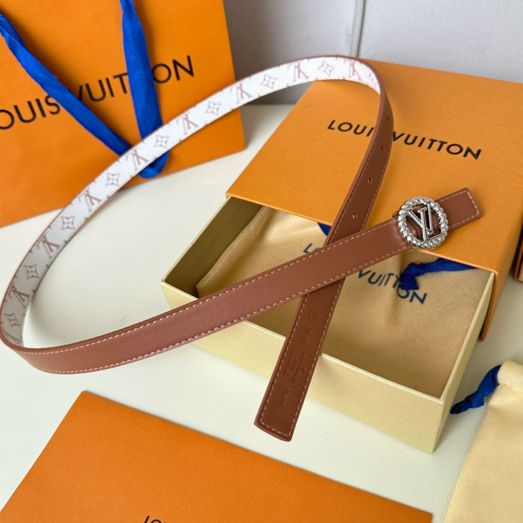 LV Circle Nautical 20mm Reversible Square End Tip Belt Silver Buckle Tan White lambskin