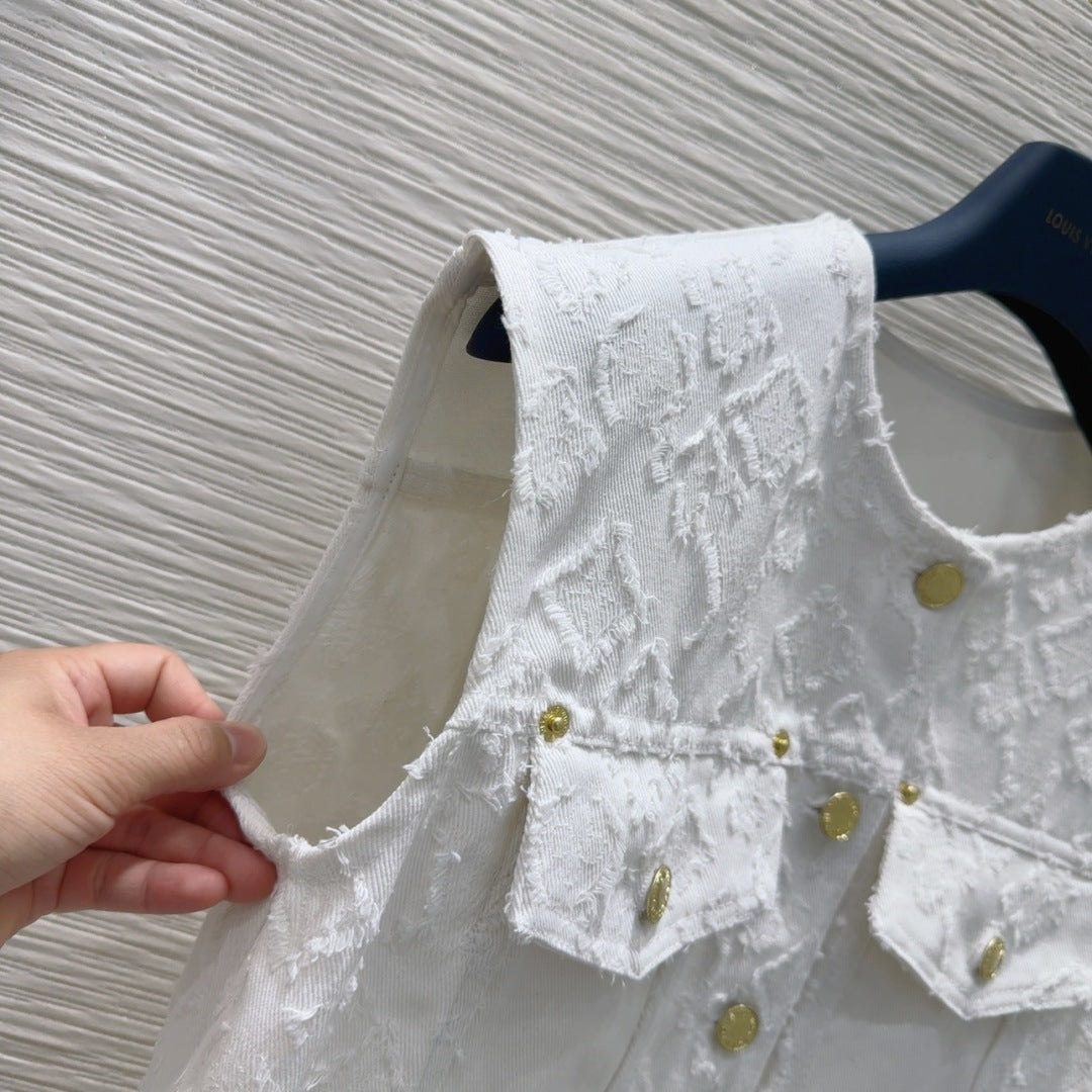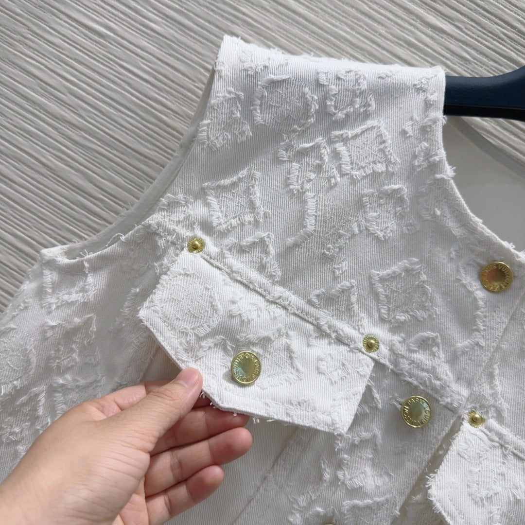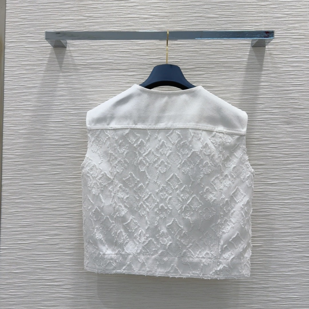 LV 25S Monograw Jacquard Fabric Vest Jacket White Cotton