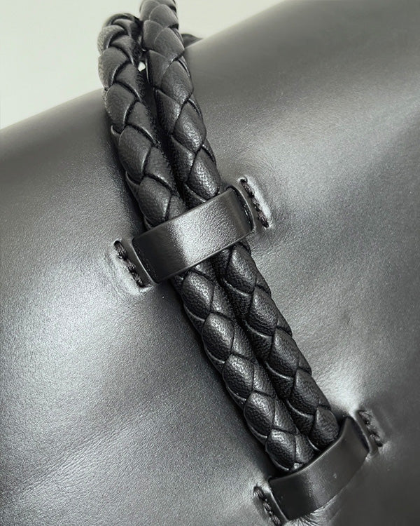 BV Liberta Crossbody Bag Buckle 30cm Black Cowhide
