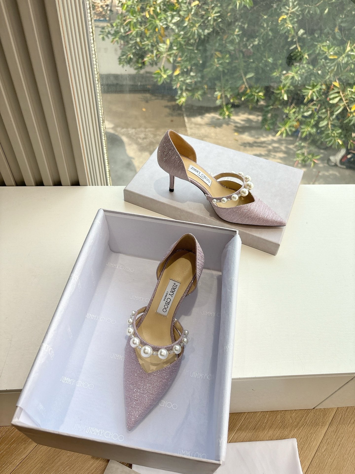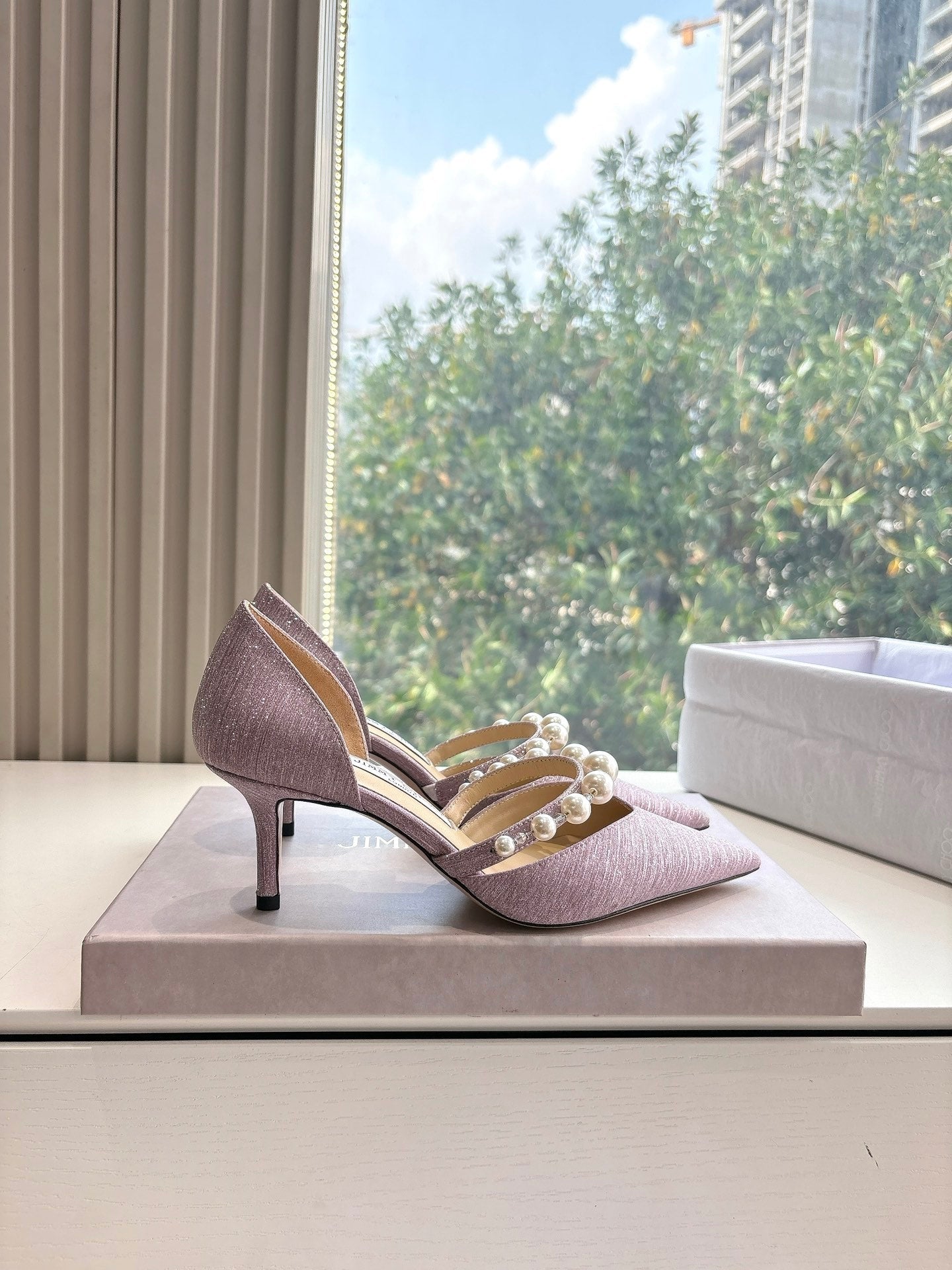 Jimmy Aureli Pearl-embellished Pumps 65mm Muted Pink Glitter 547690