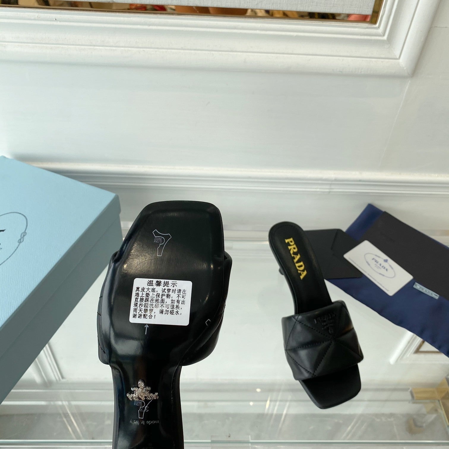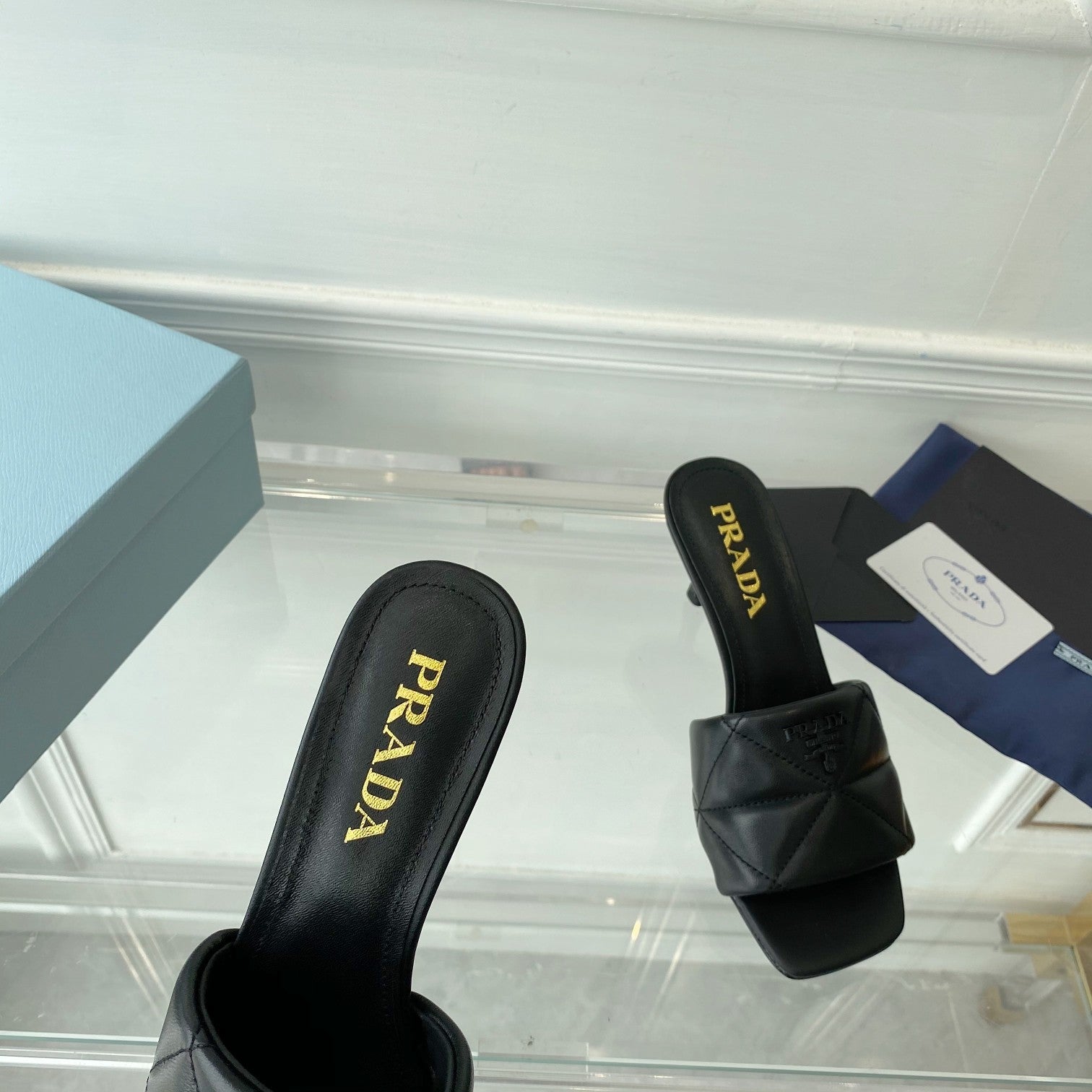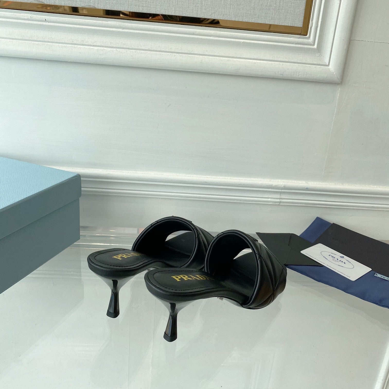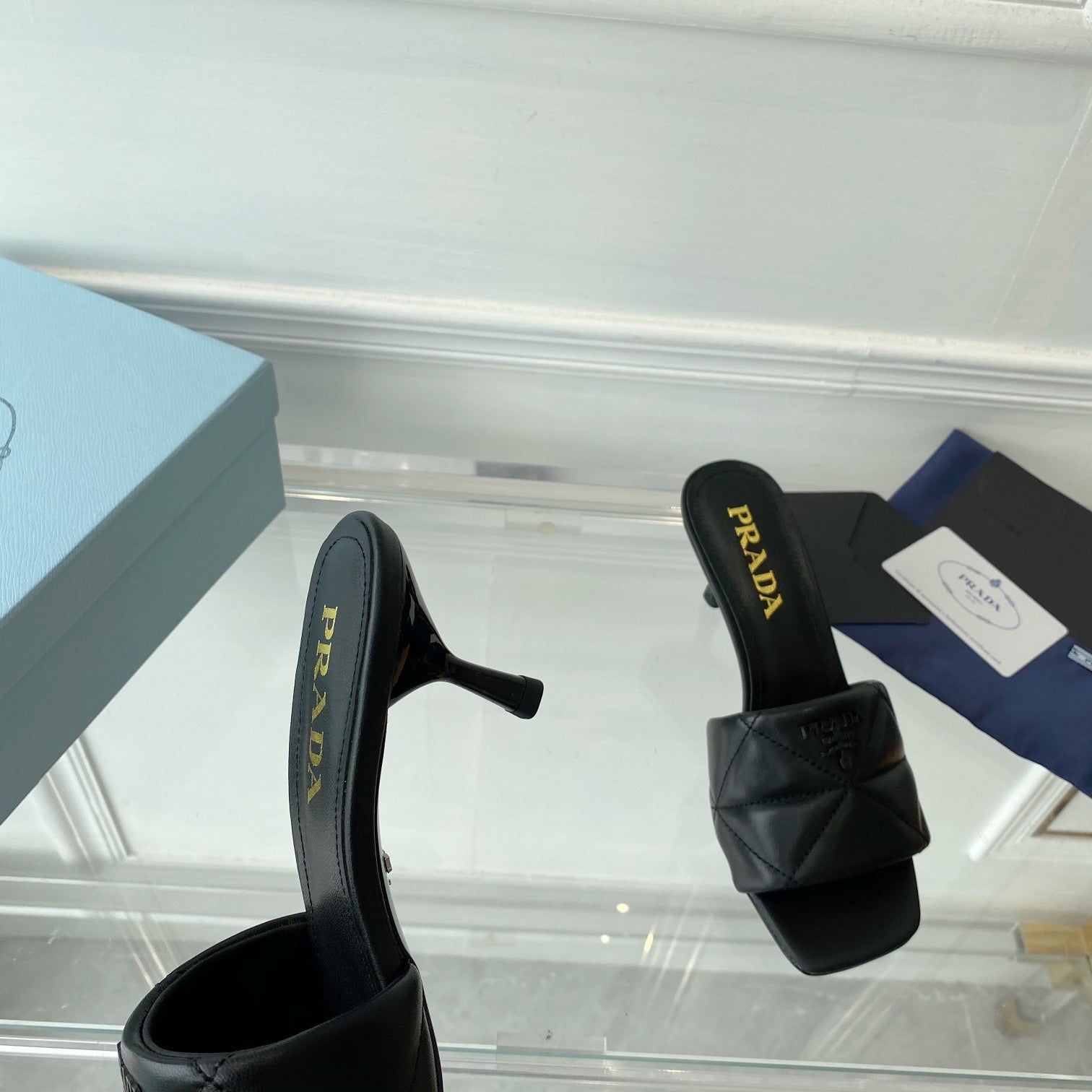 PRA QUILTED HIGH HEELS SANDALS 65 BLACK LAMBSKIN