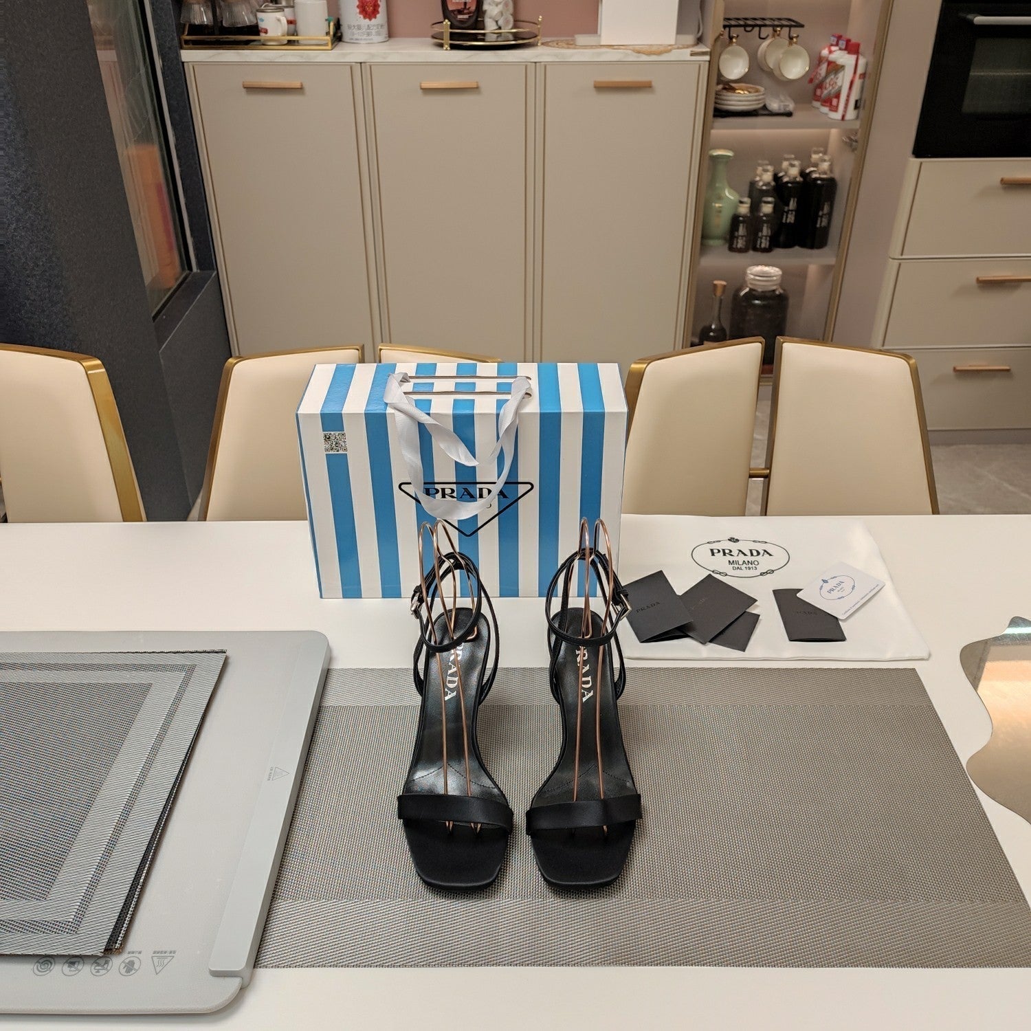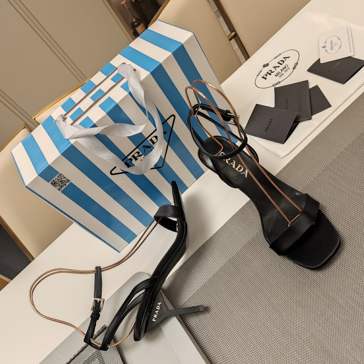 PRA HIGH-HEELED SANDALS BLACK SATIN
