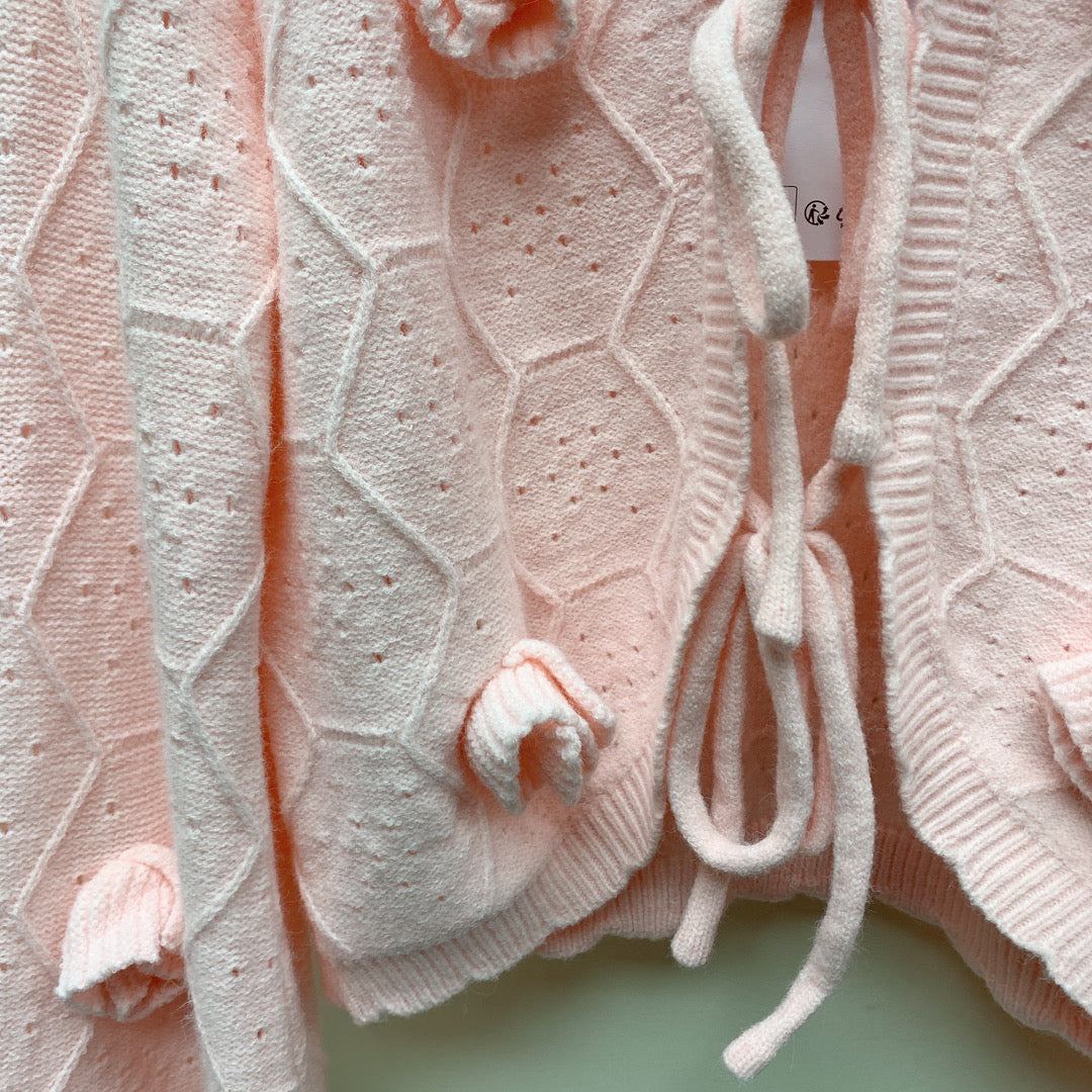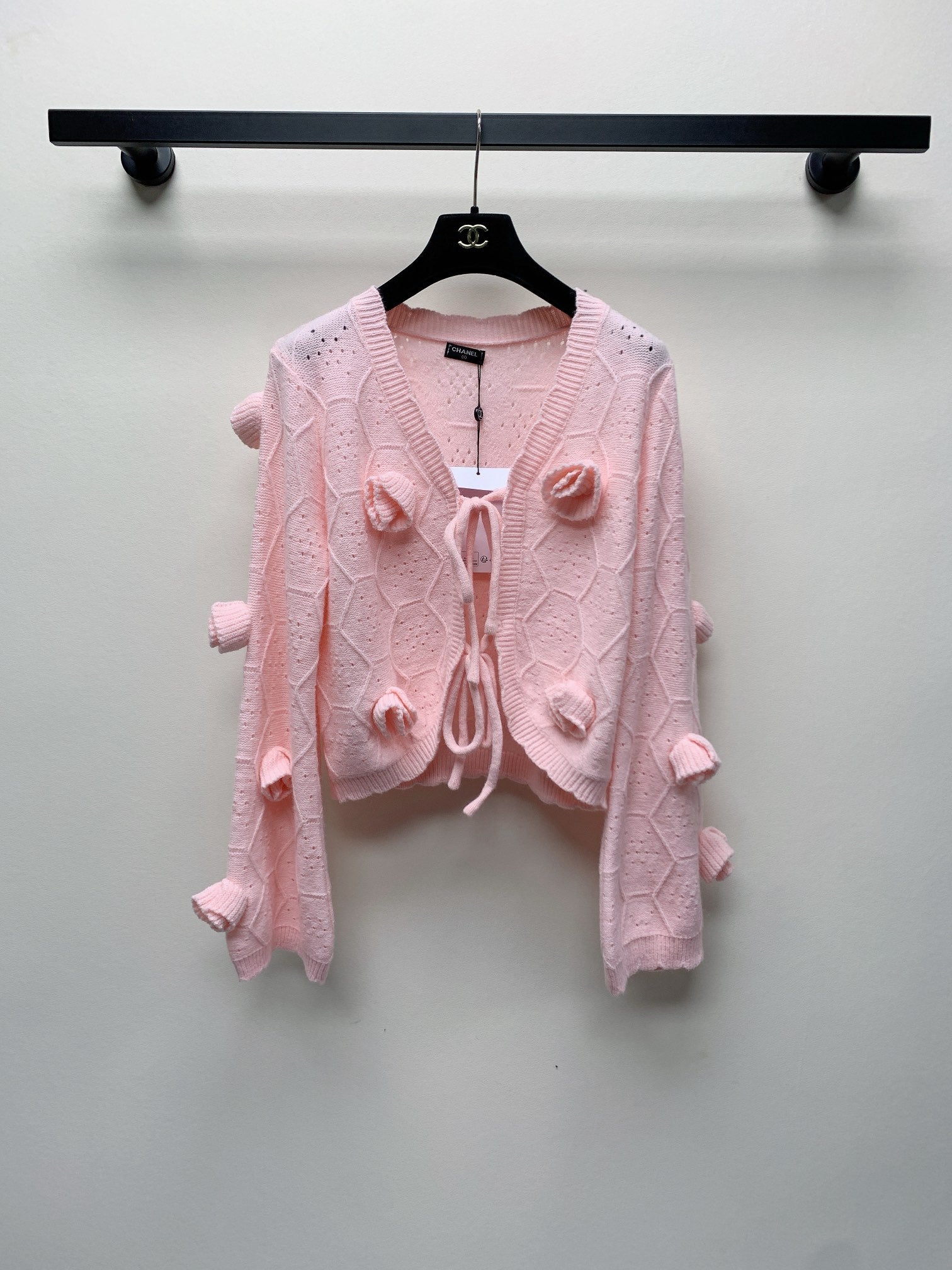 CC 25 Knitted Three-Dimensional Flower Tie Cardigan in Pink 277588
