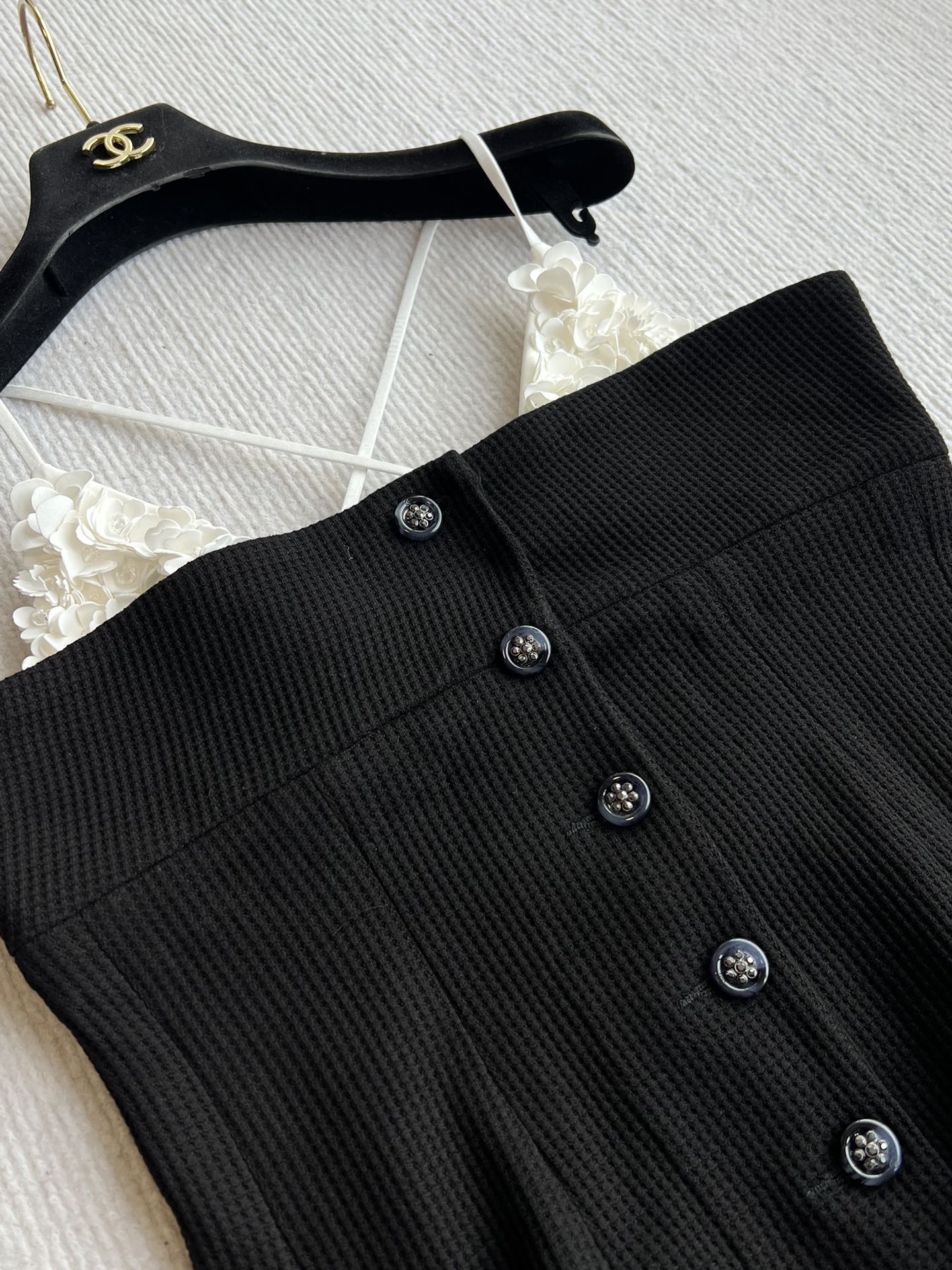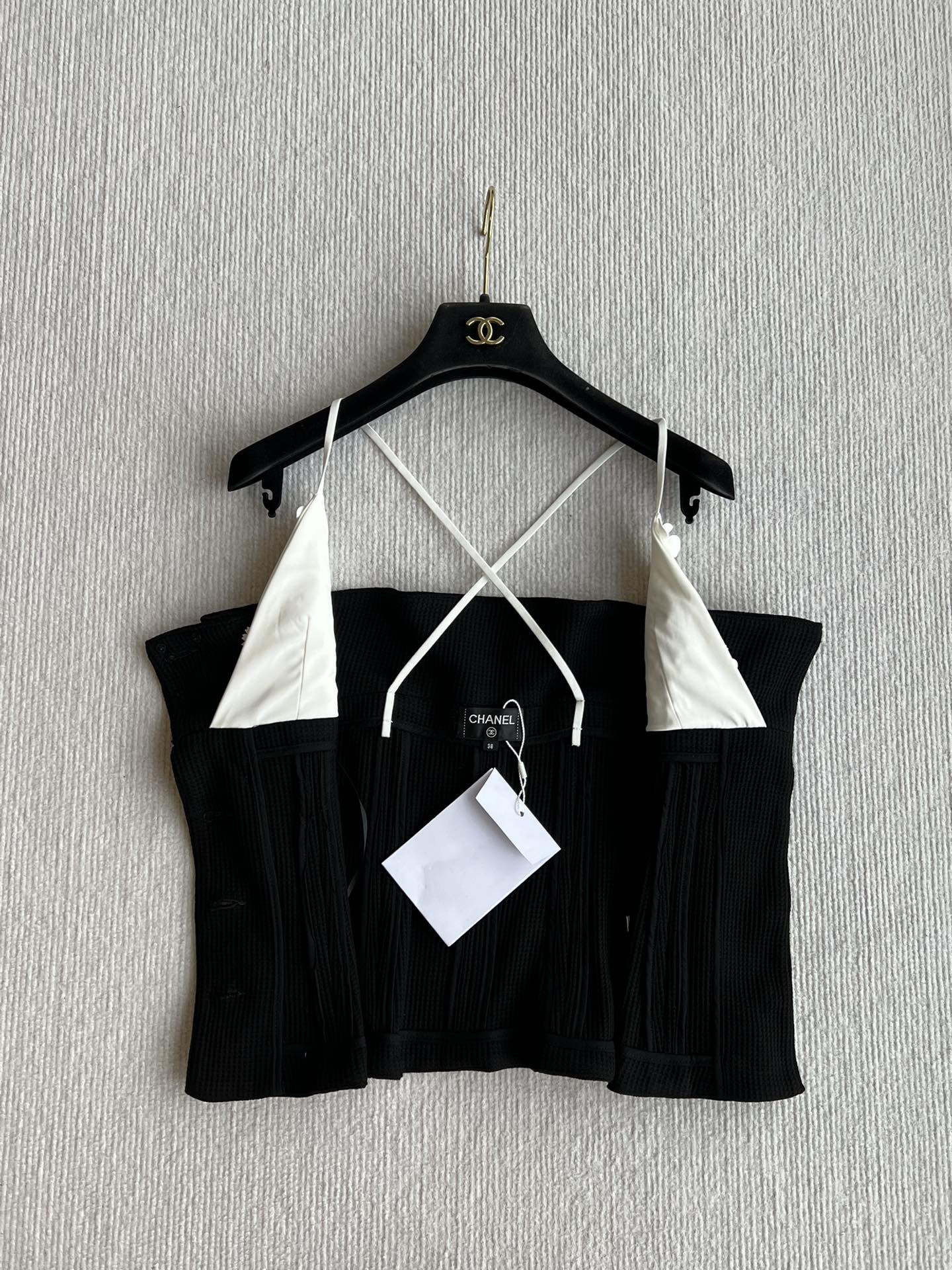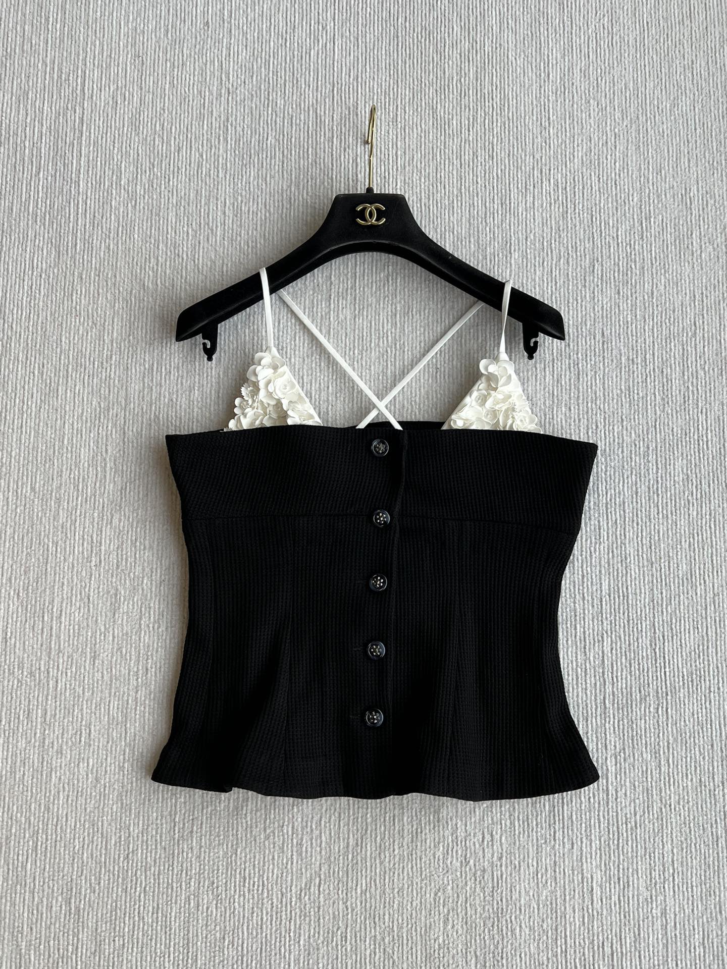 CC 25 Splicing Tube Top Camisole Black and White Mixed Fiber Waffle Jacquard Fabric 275554
