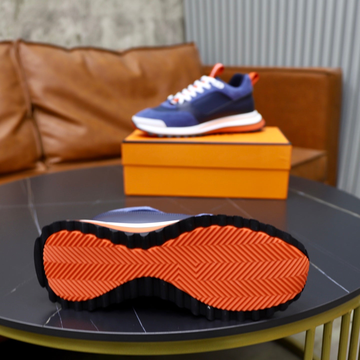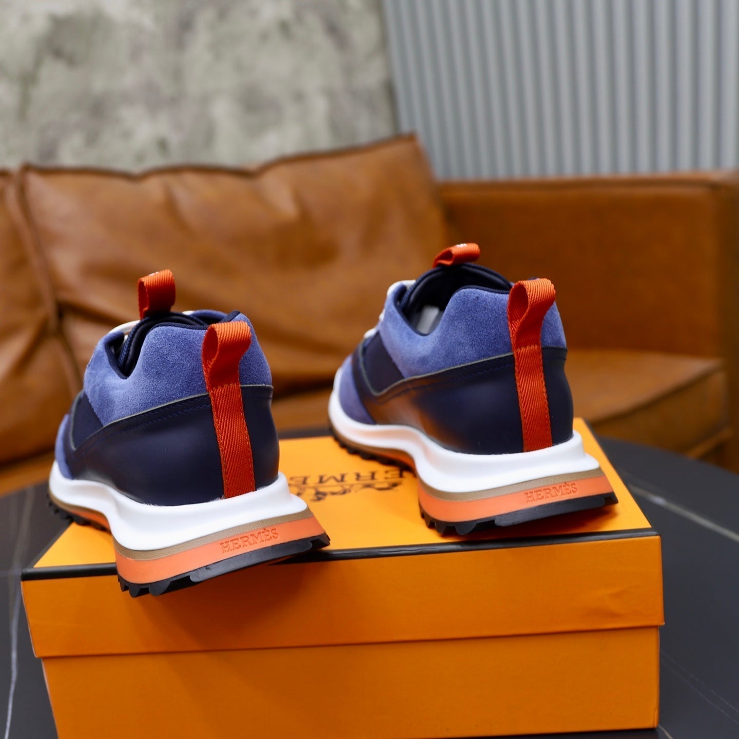 HM Men's Leader Sneaker Blue Suede Calfskin 747918