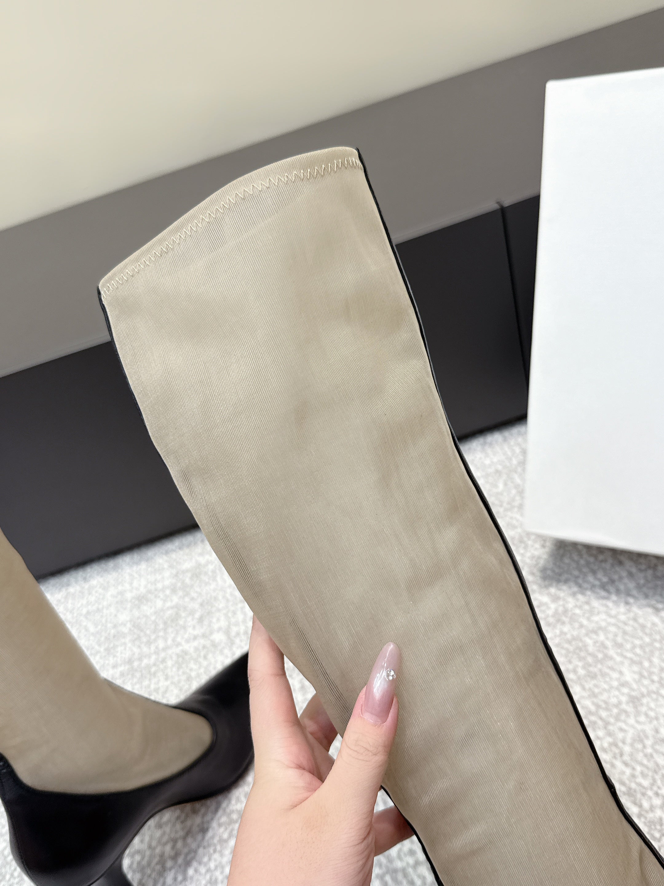 The Row Knee-High Boots 85mm Black Mesh Cowhide 451298