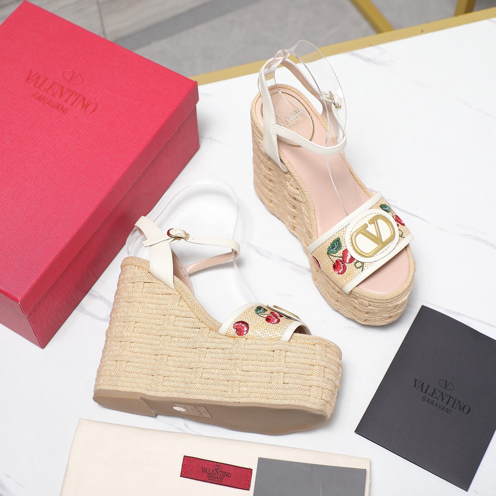 VL Flatform Sandal 15mm In White Cherry Embroidery Cowhide 456391