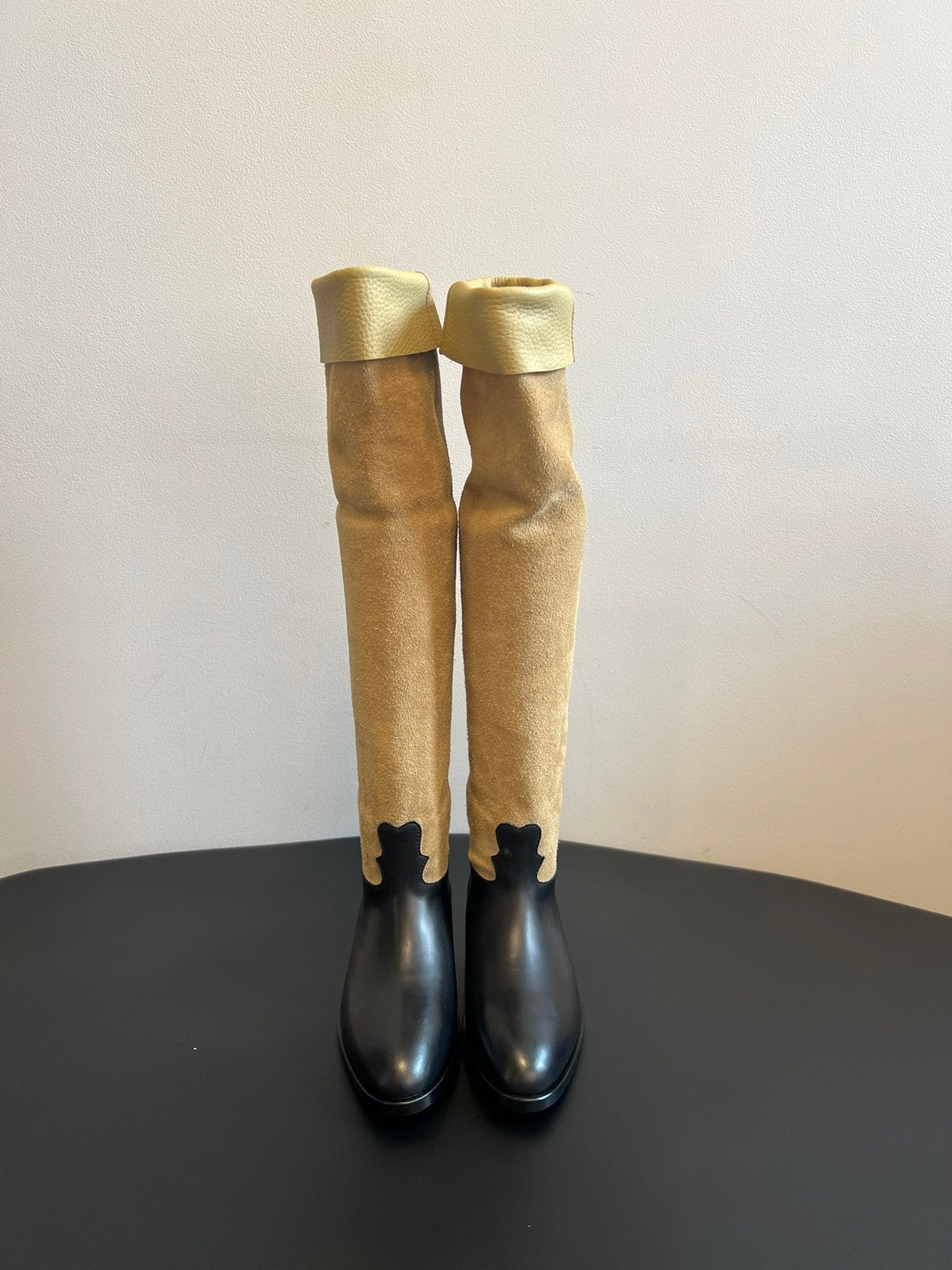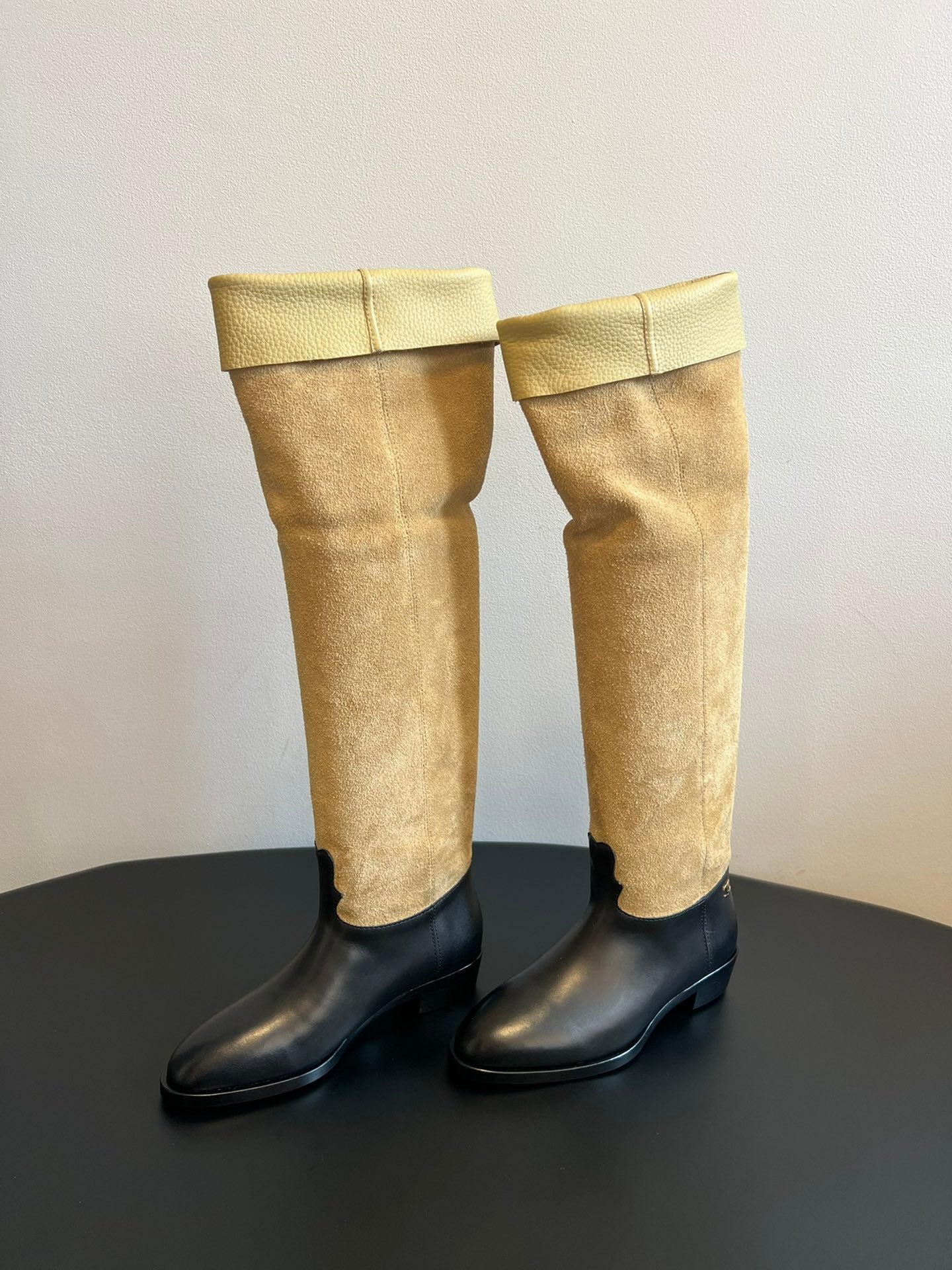 CC 25FW Suede Colorblock Slip-On Cavalier Mid-Large Boots Black and Brown Calfskin 489938