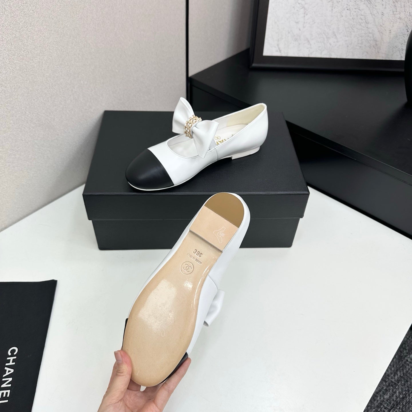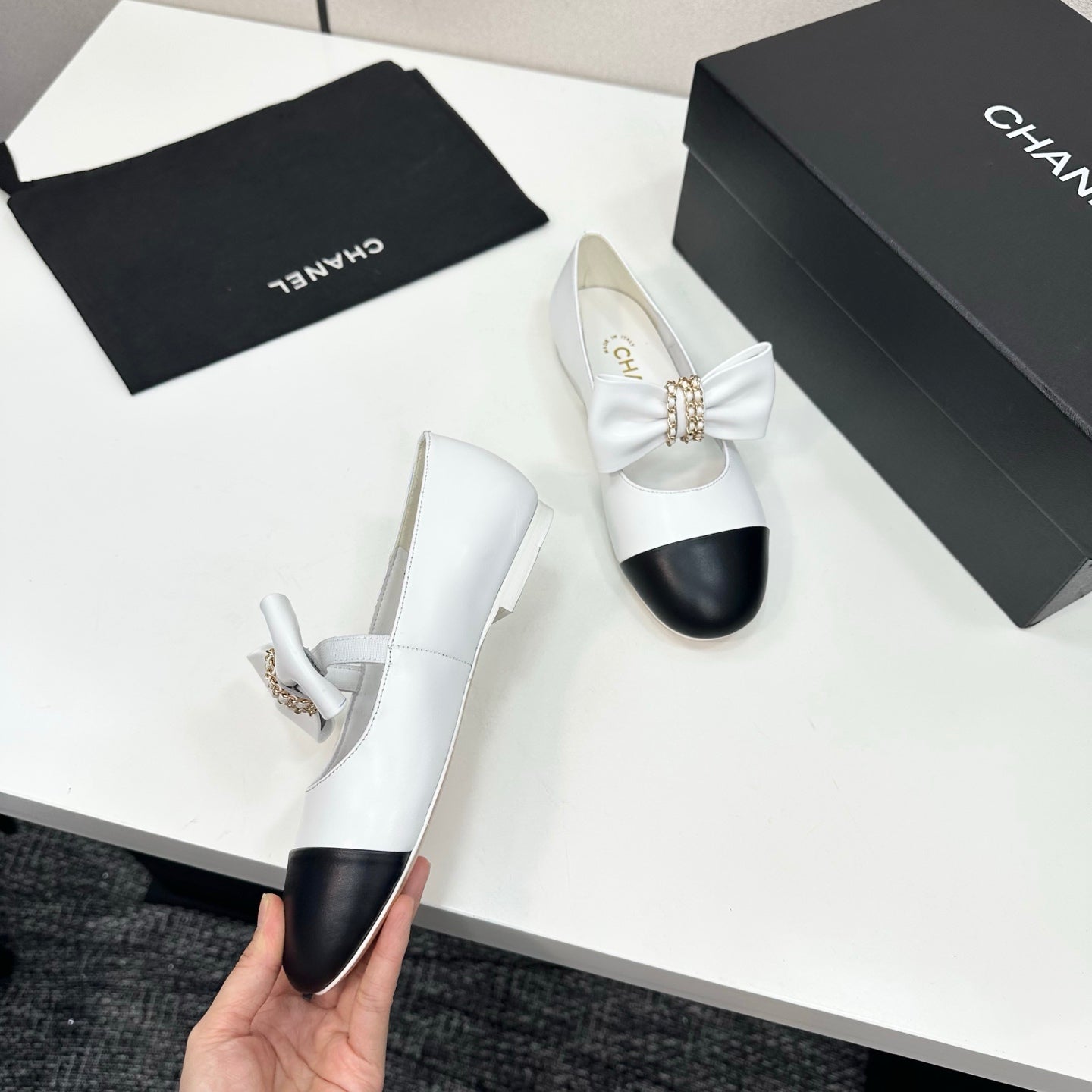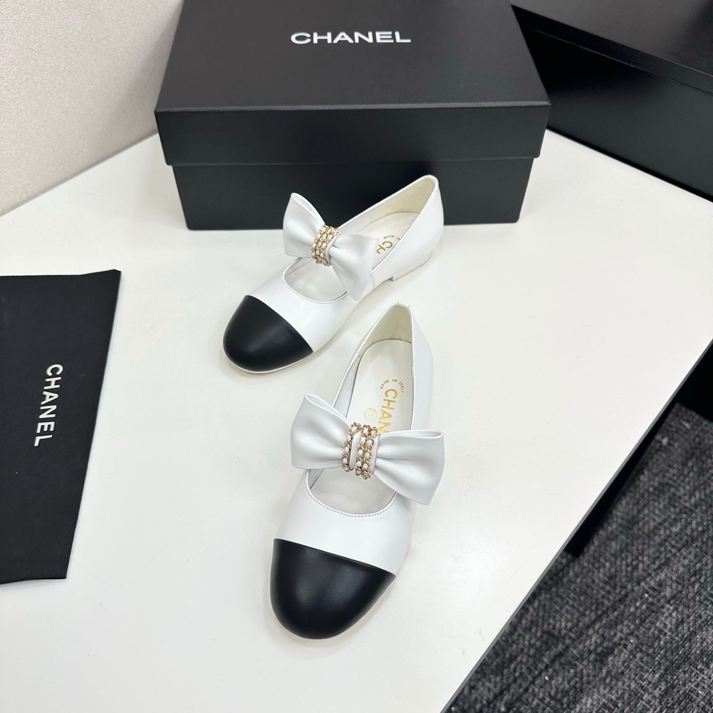 CC 25SS Chain Bow Mary Jane White Cowhide 490145