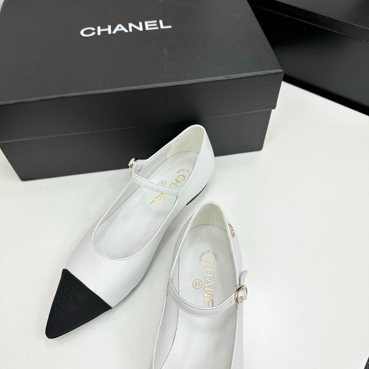 CC 25SS Pointed-Toe Mary Janes White Cowhide 490138