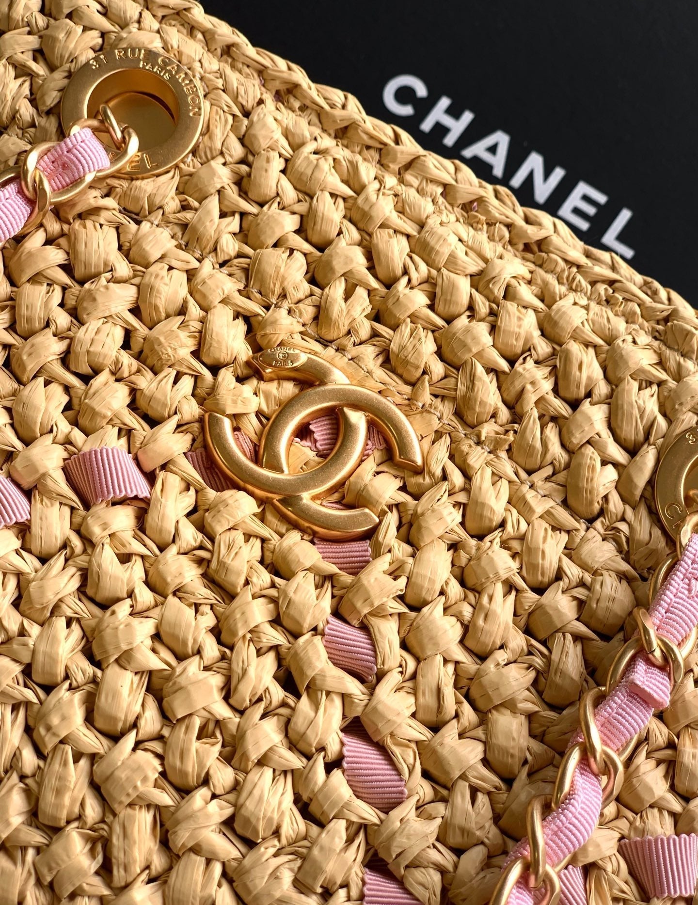 CC Braided Shopping Bag Double C logo Beige Pink Raffia