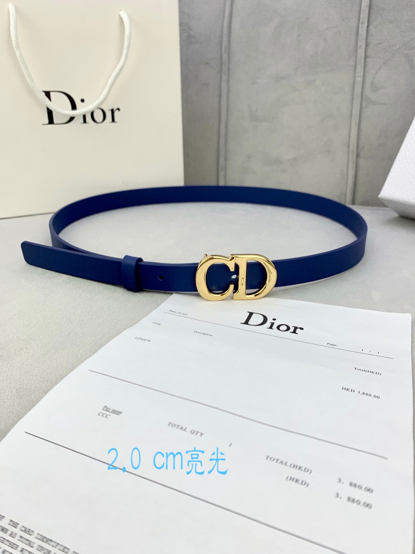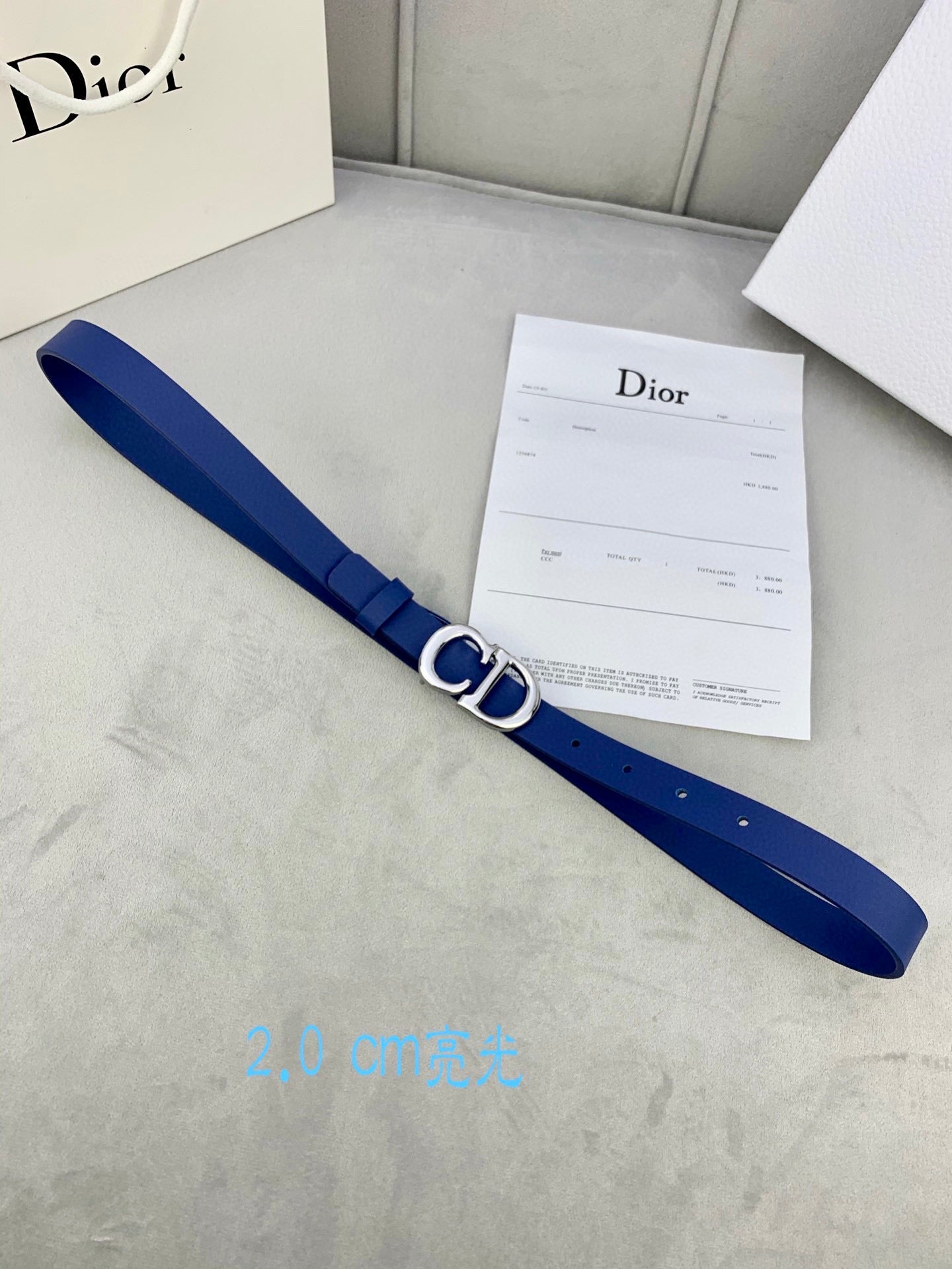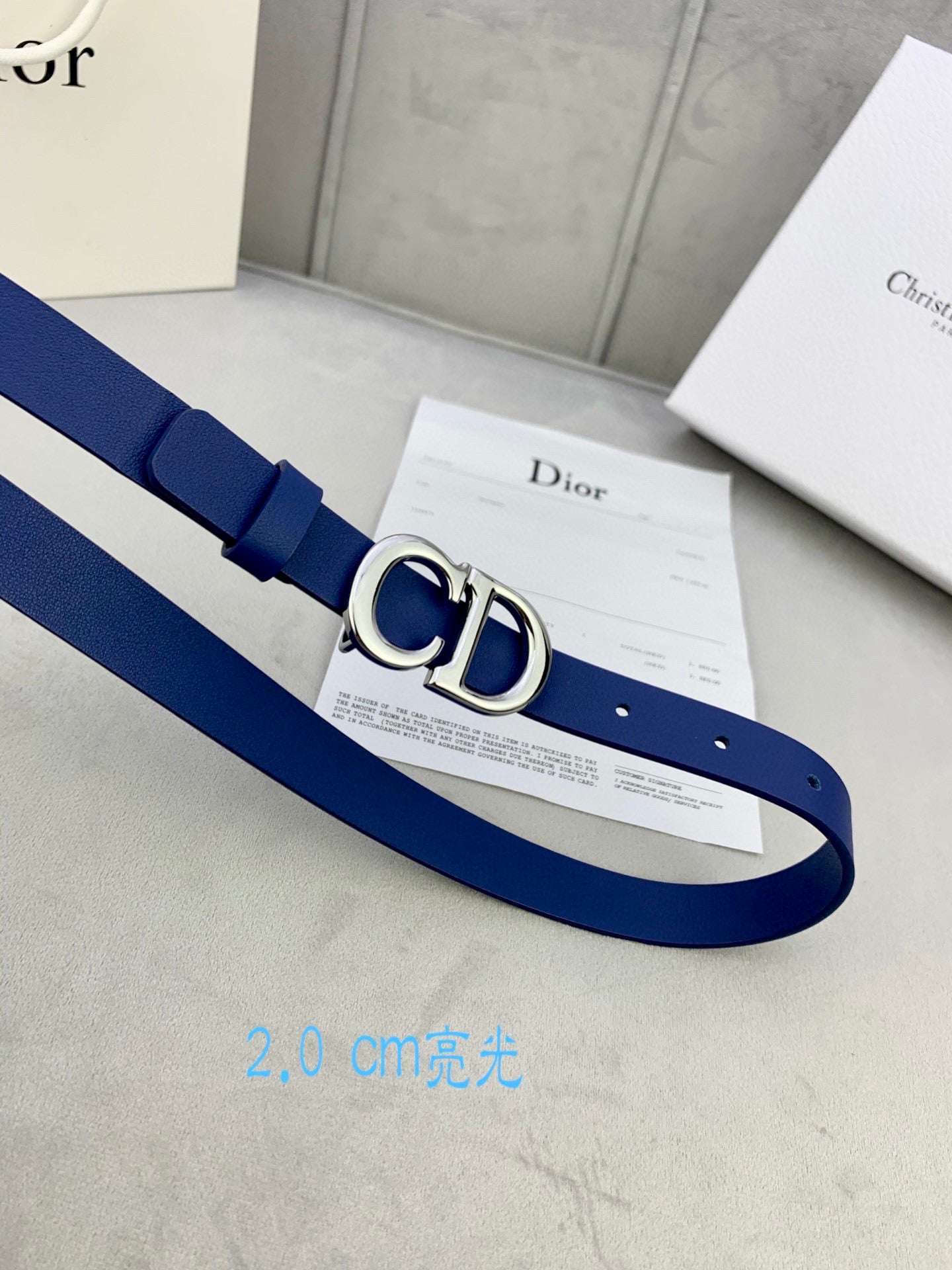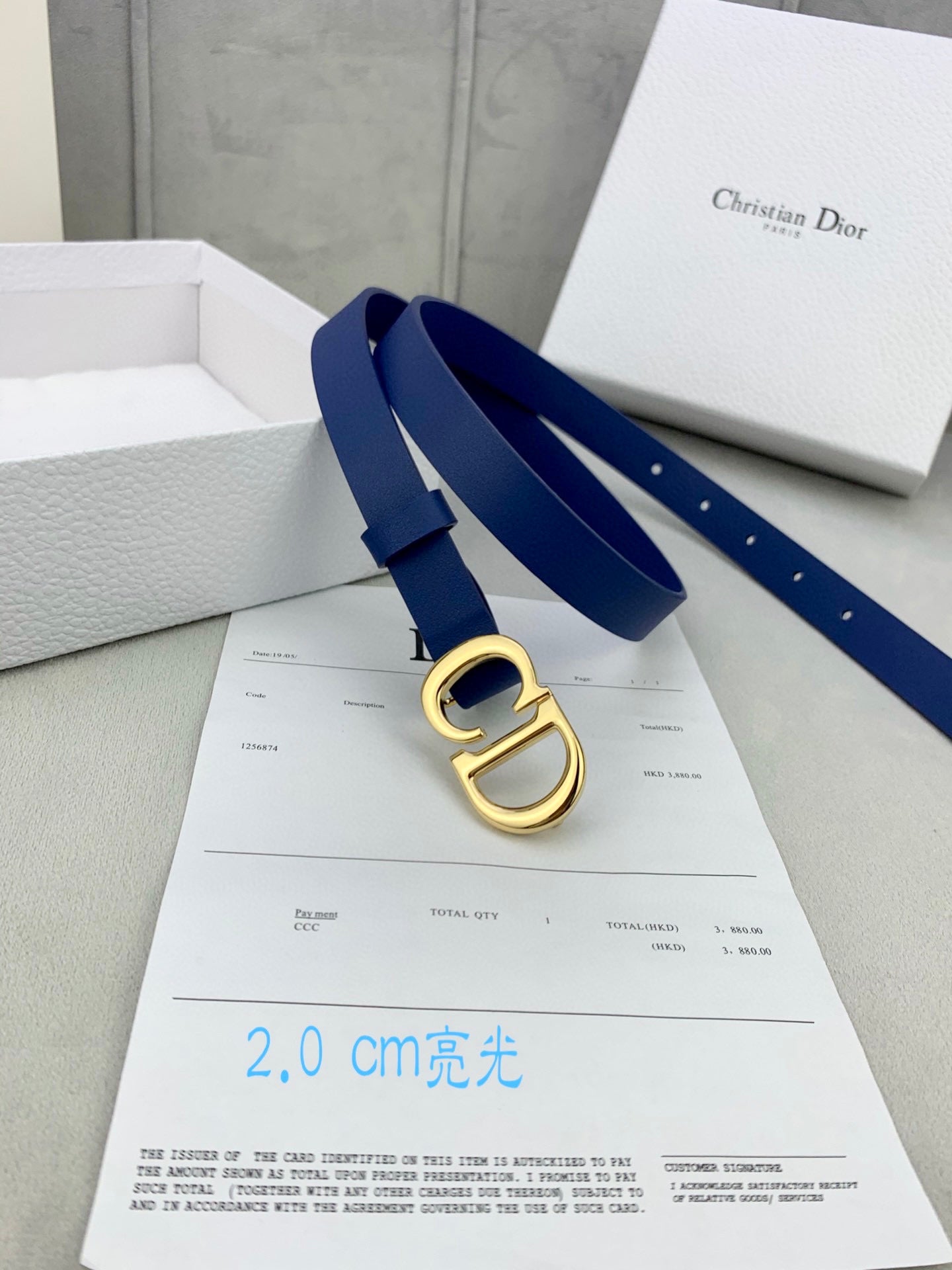 CD Saddle Belt 20mm Blue Calfskin Metal Buckle
