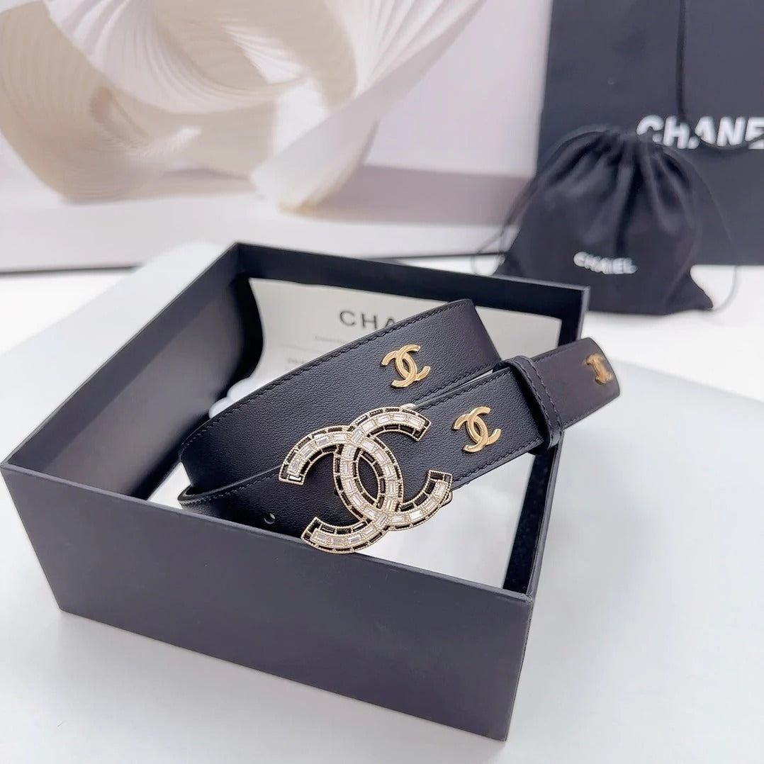CC 30MM BELT IN BLACK SMOOTH CALFSKIN METAL LOGO GOLD HARDWARE