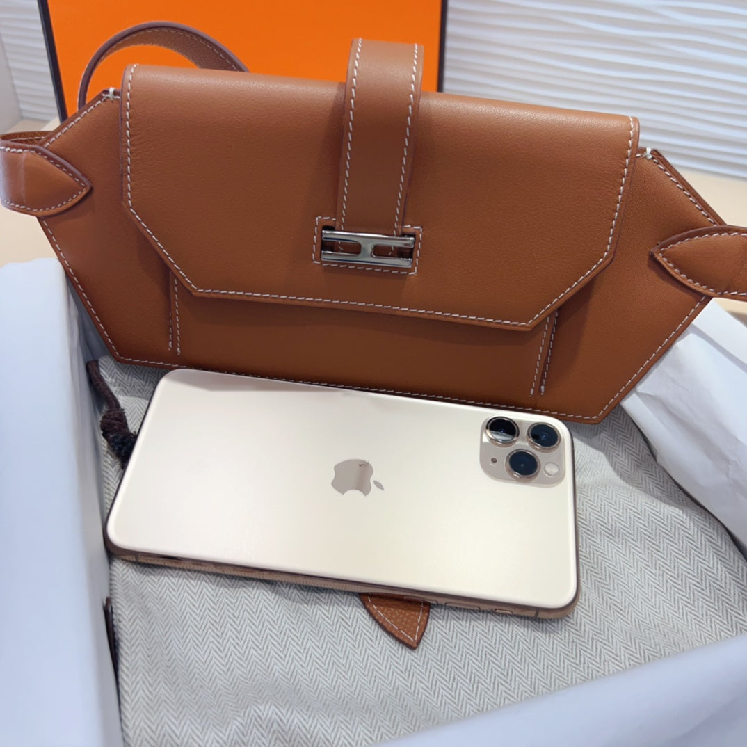 elan pocket 30 belt brown bag silver hardware
