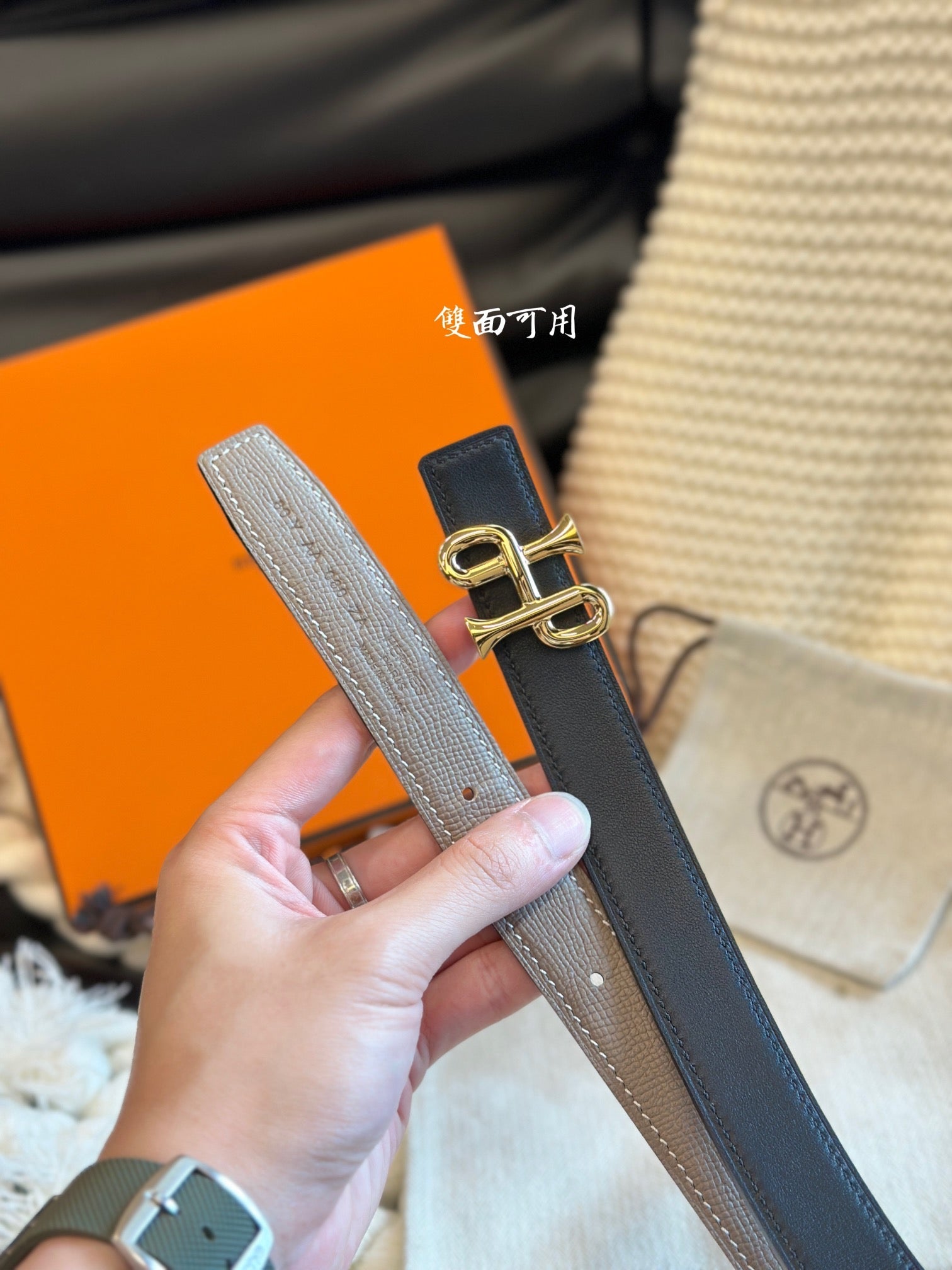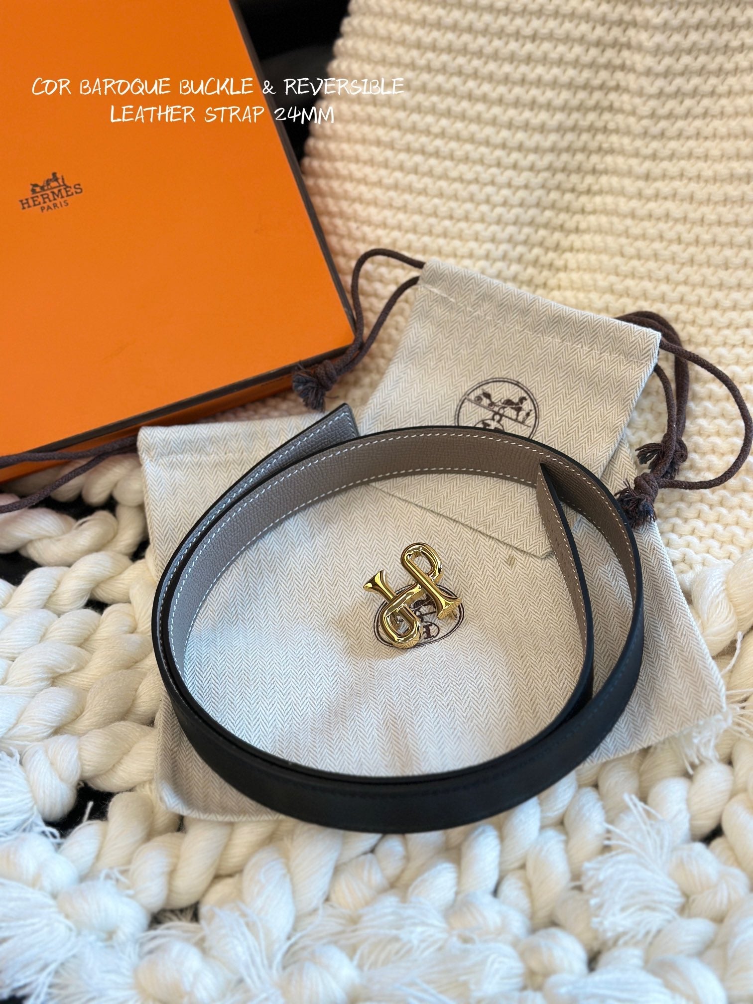 H COR BAROQUE BELT 24MM GOLD BUCKLE & REVERSIBLE BEIGE AND BLACK LEATHER