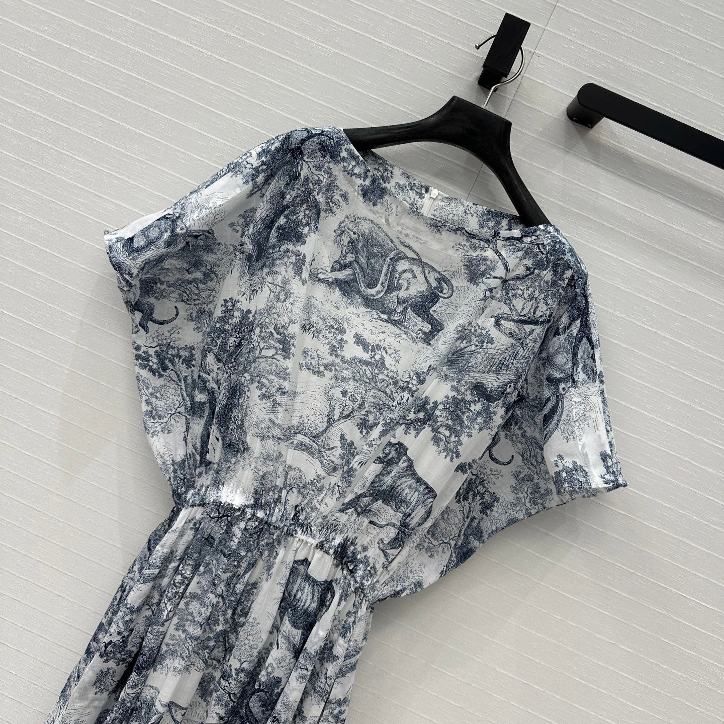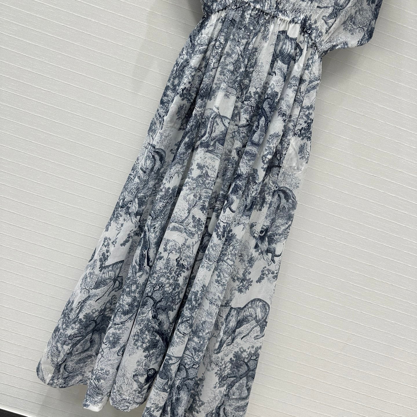 CD 25 Boat Neck Long Skirt Blue White Cotton