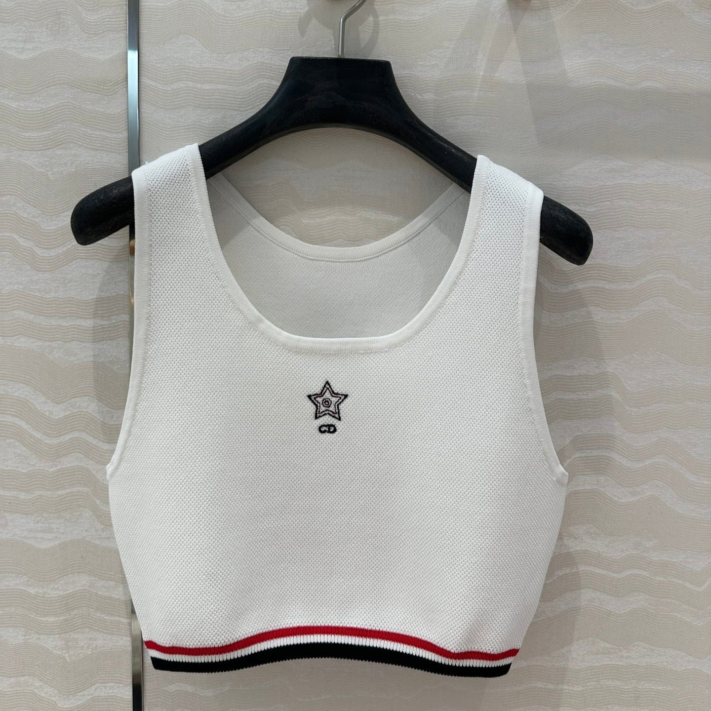 Loading image: 5 CD Sport Knitted Top Vest White Linen Silk