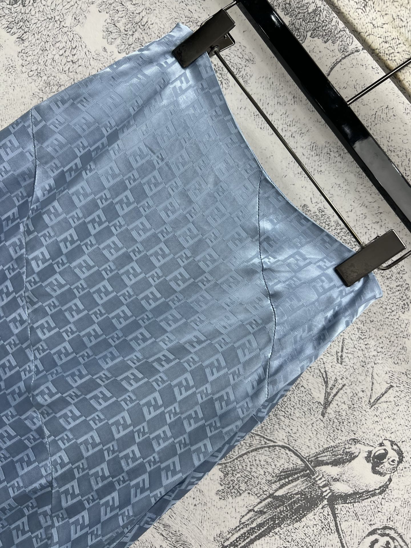 Fendi 25 Double F Irregular Skirt Blue Viscose Polyester