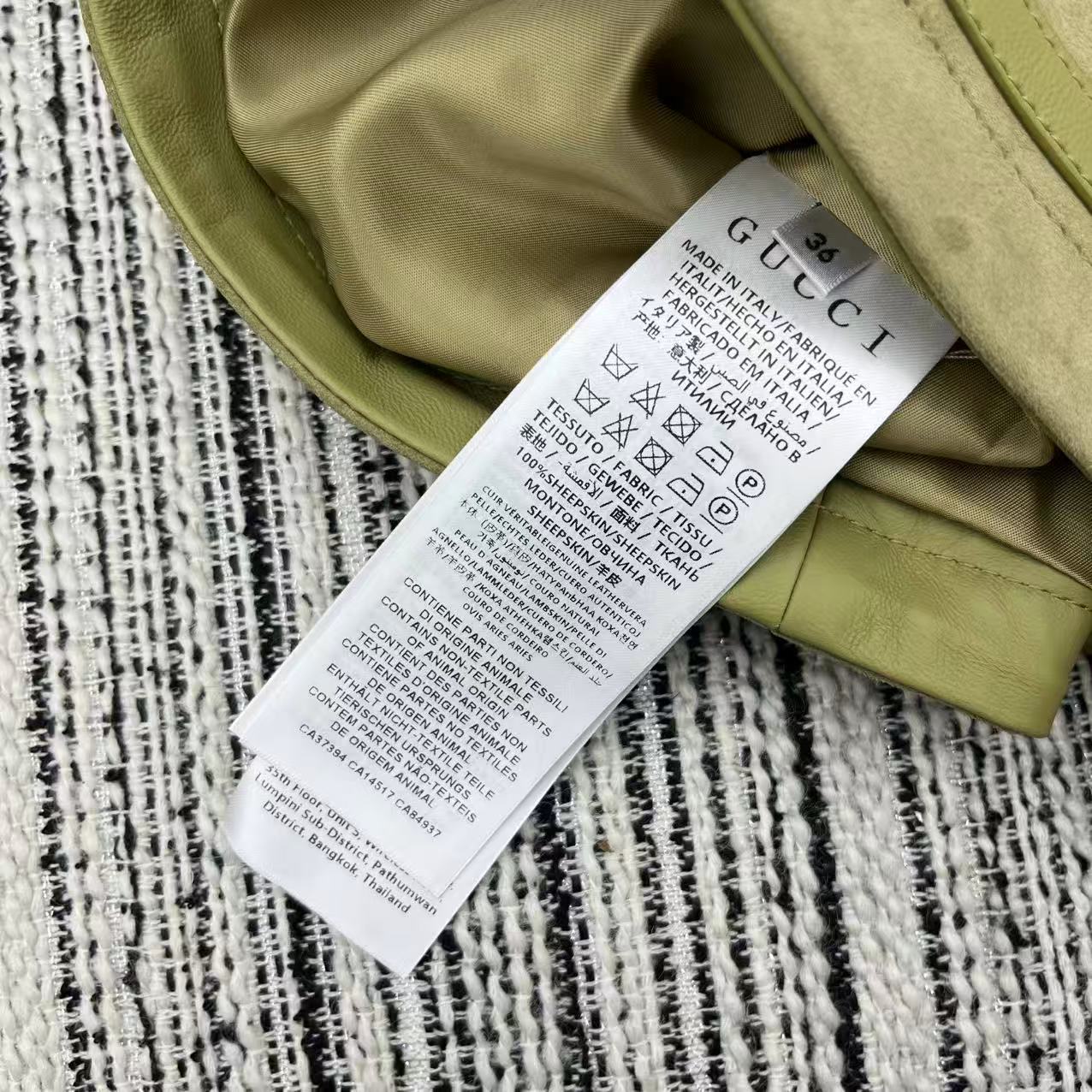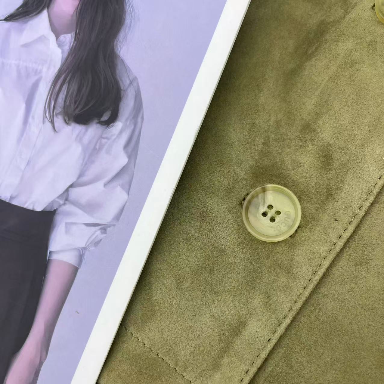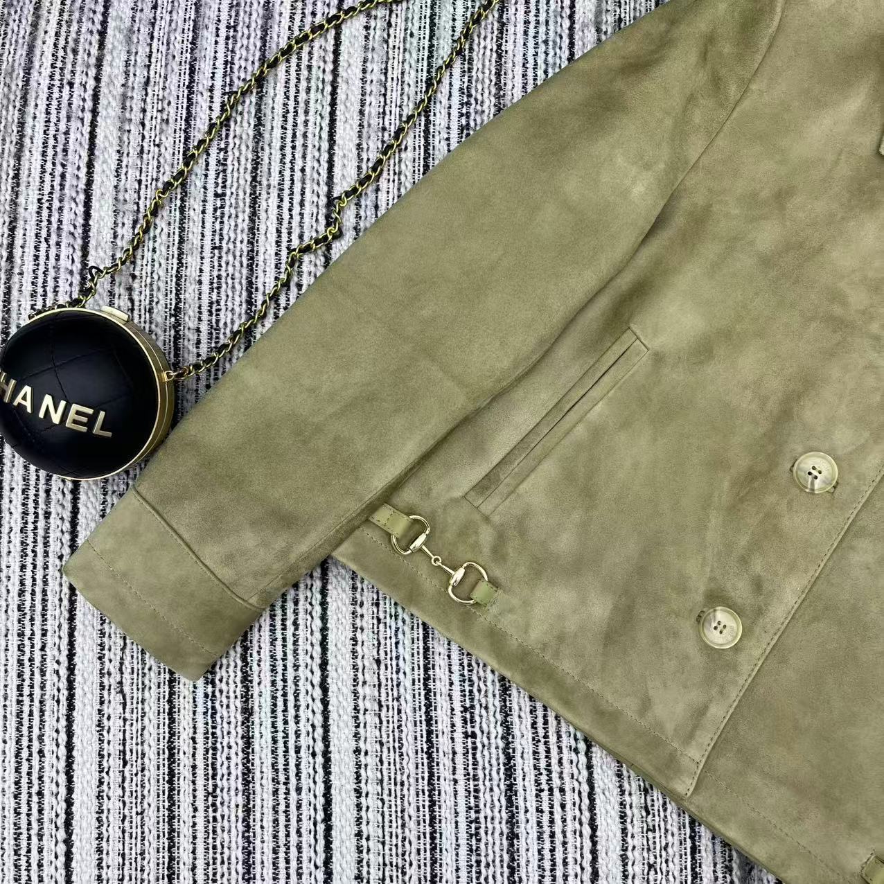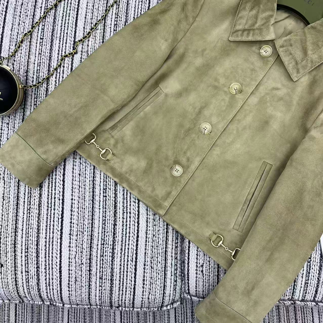 GG 25FW Metal Chain Hem Lapel Jacket Olive Green Suede Lambskin