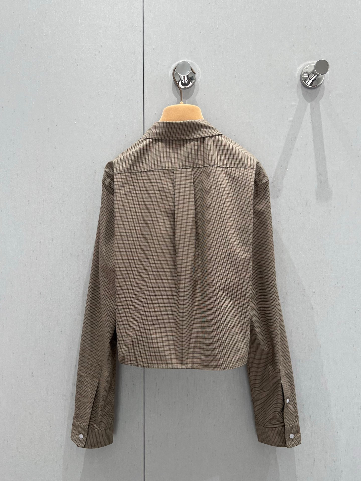 Miu Miu 25 Plaid Lapel Zipper Shirt Brown Cotton 211152